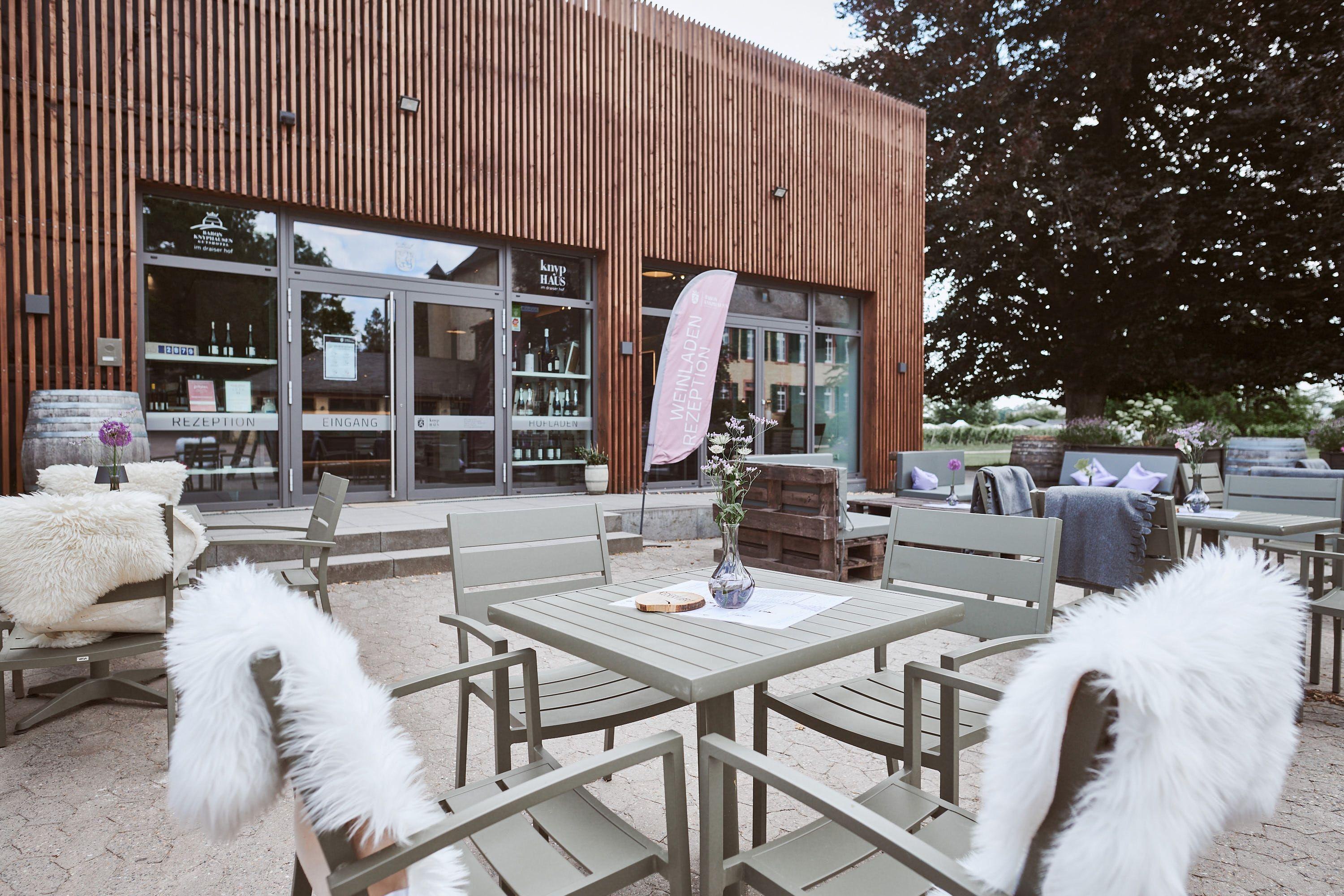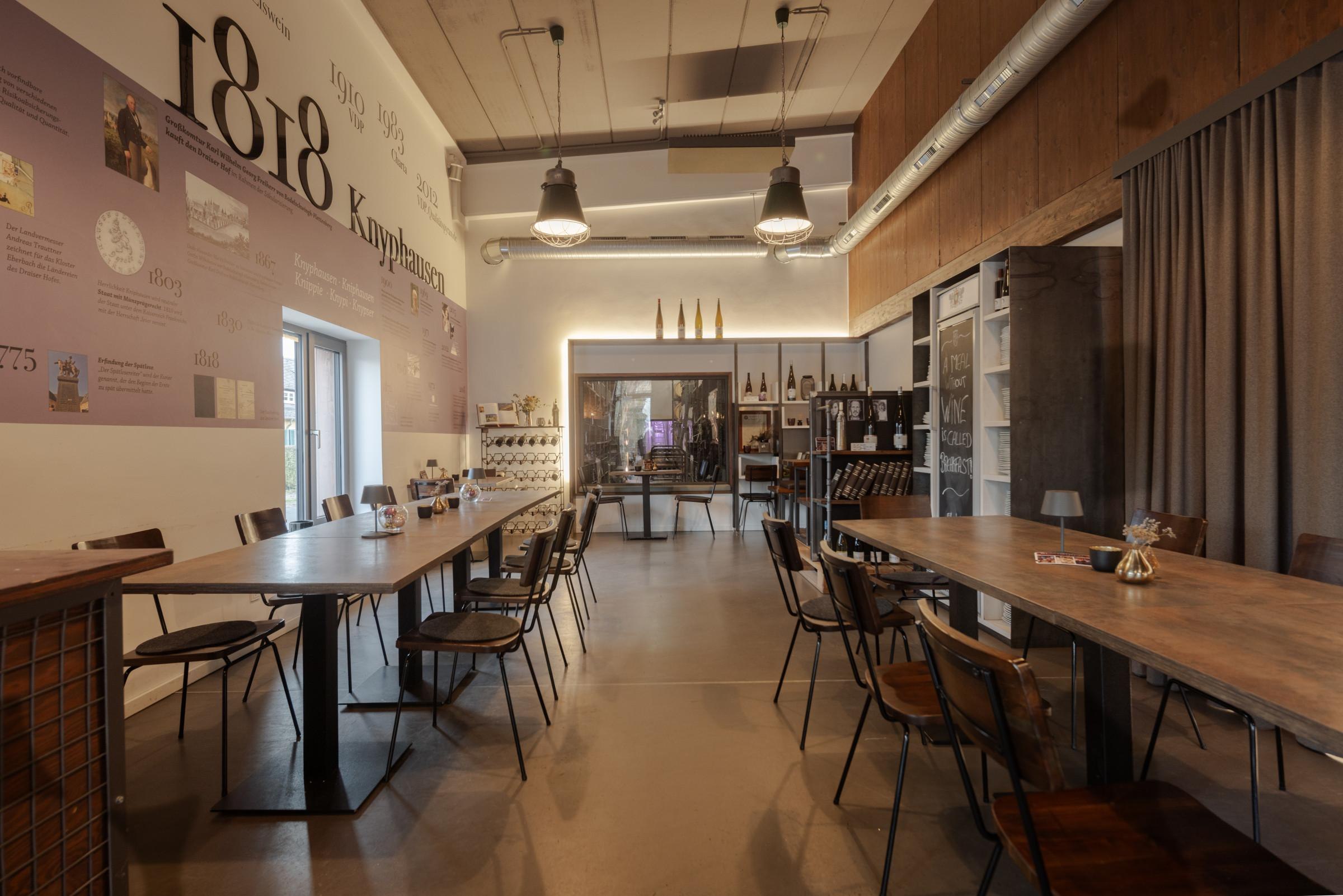 Das 1818 im knypHAUS auf dem Draiser Hof bietet in einem modernen Industriestyle-Ambiente feine Gerichte in Kombination mit den Weinen des Weinguts Baron Knyphausen.