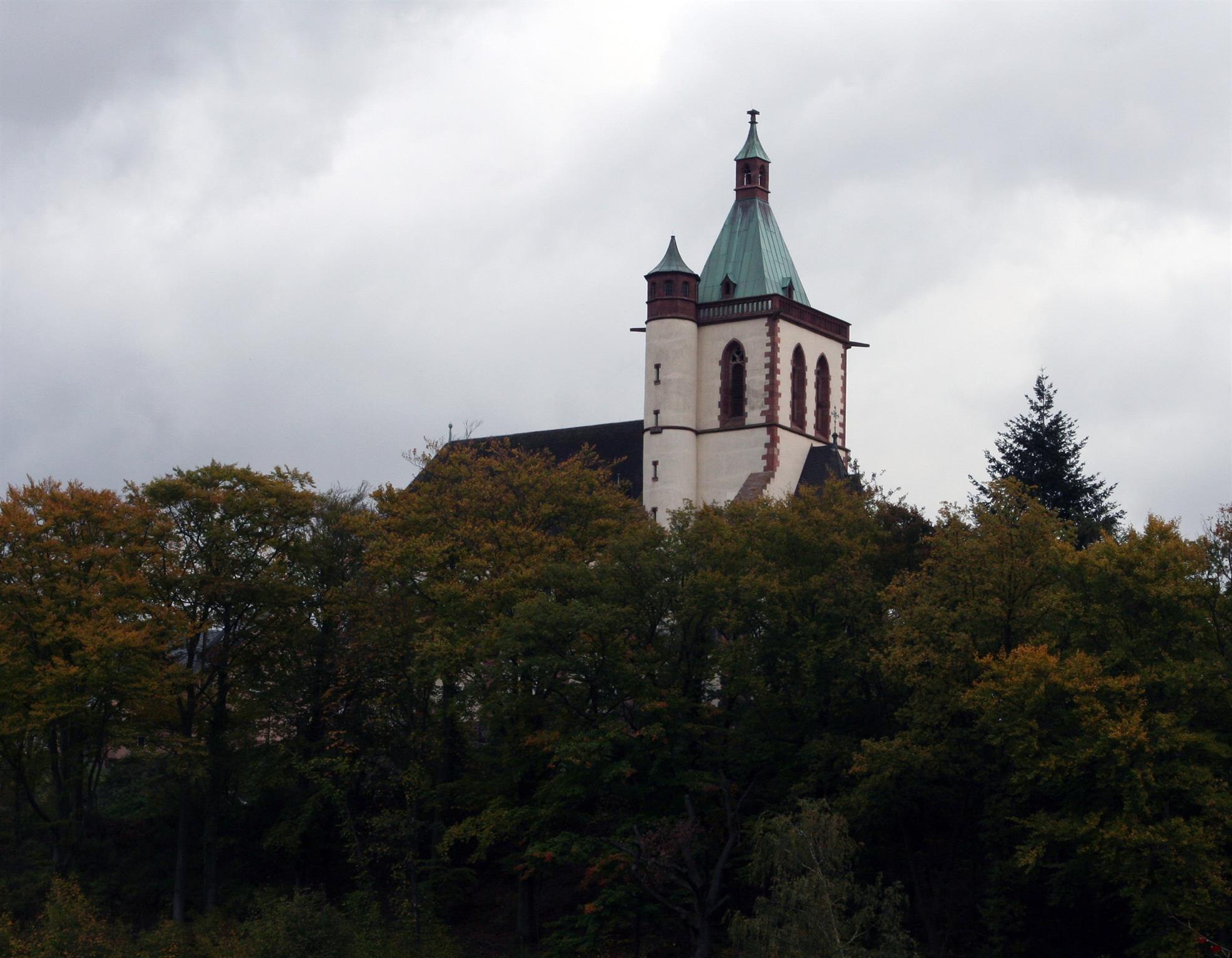 Im Jahre 1671 erbaut der Frühmesser Johann Philipp Trabach hier eine Kapelle „zu Ehren der Allerheiligsten Dreifaltigkeit, der Muttergottes und aller Heiligen“. Seitdem wird die Anhöhe Allerheiligenberg genannt. Sie entwickelt sich rasch zu einem beliebten Wallfahrtsort. Zur Betreuung der zahlreichen Pilger entsteht an der Westseite der Kapelle eine Eremitage.