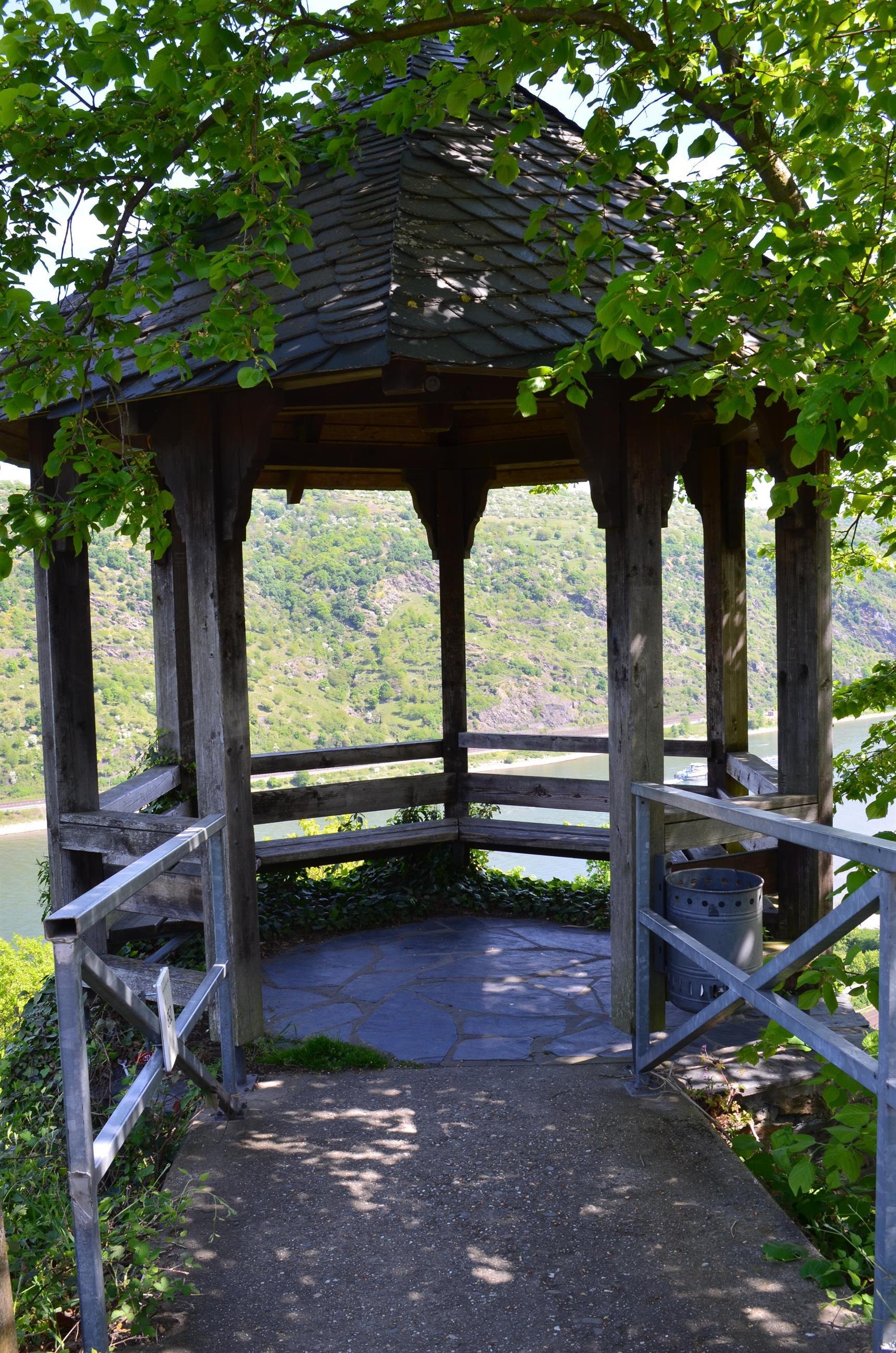 Wunderbarer Rastplatz in einem überdachten Pavillion mit Bank und Tisch. Wunderbarer Blick auf den Rhein und die Burgen Schönburg, Gutenfels und die Pfalzgrafenstein im Rhein, ebenso wie auf die Weinberge. Am Rhein-Burgen-Wanderweg gelegen. Wanderparkplatz ca. 100 m entfernt, Richtung Schönburg.
