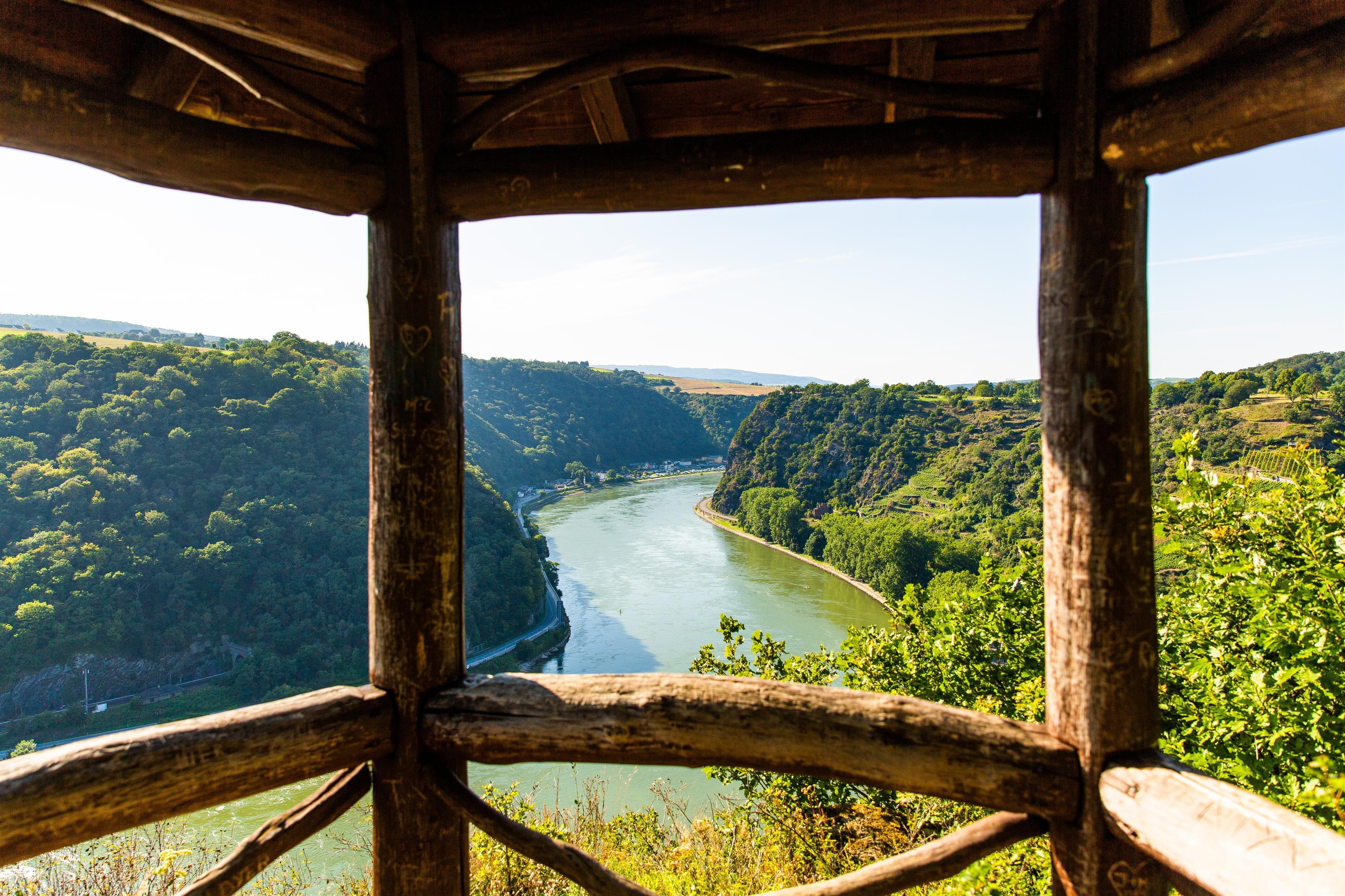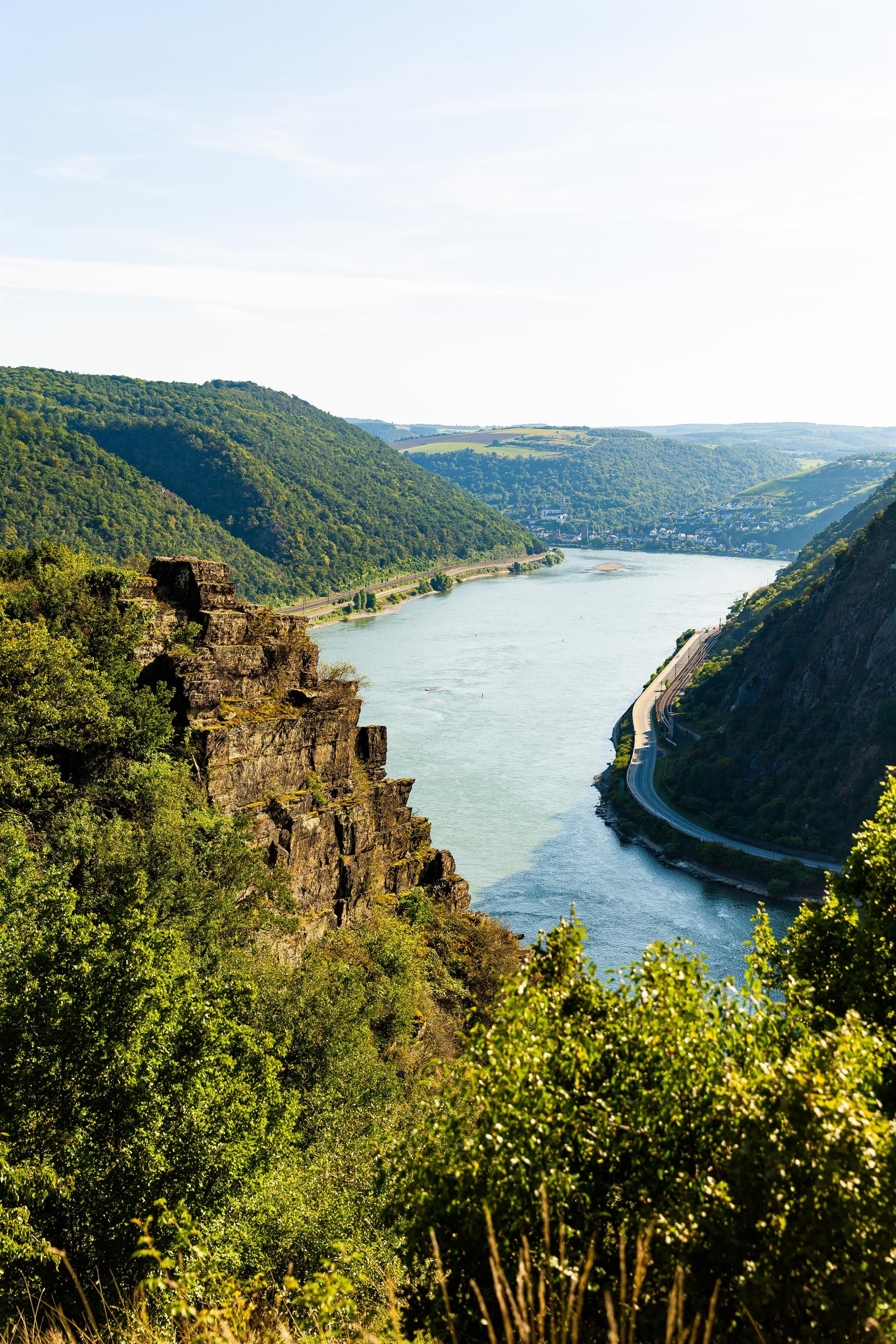 Auf der Rheinsteig 15. Etappe St. Goarshausen - Kaub liegt der Spitznack. Von dem Loreleyfelsen aus kann man an verschiedenen Stellen, Ausblicke in das canyonartige Durchbruchstal des rheinischen Schiefergebirges erleben. Hat man die Aussicht lange genug genossen, läuft man hinüber zum Startpunkt des Weinlehrpfades Loreley und gelangt am Leiselfeld zum Geländeplateau. Was folgt, lässt sich nur schwer beschreiben, man muss es erleben: Der Spitznack ist ein spektakulärer Aussichtspunkt.