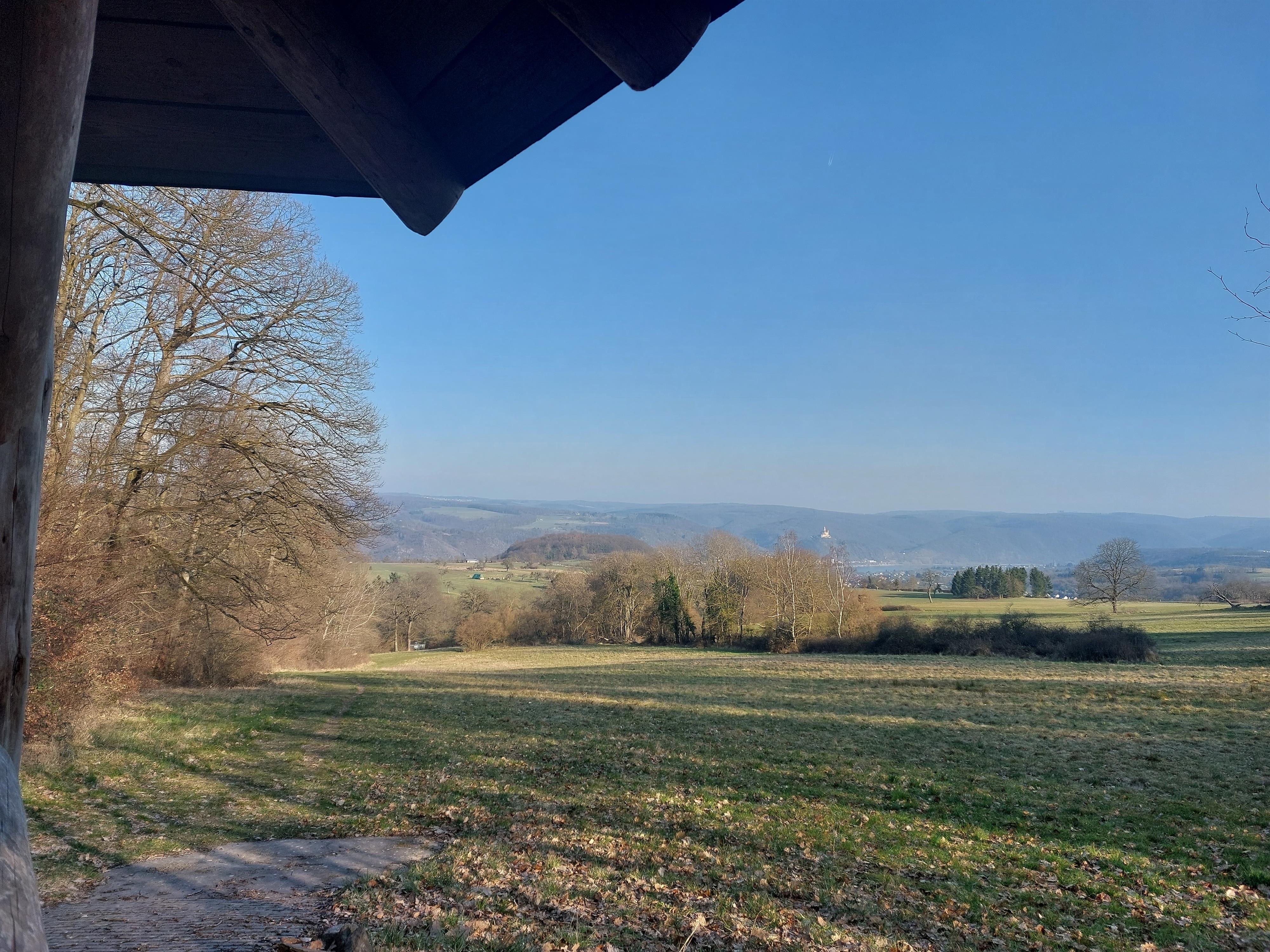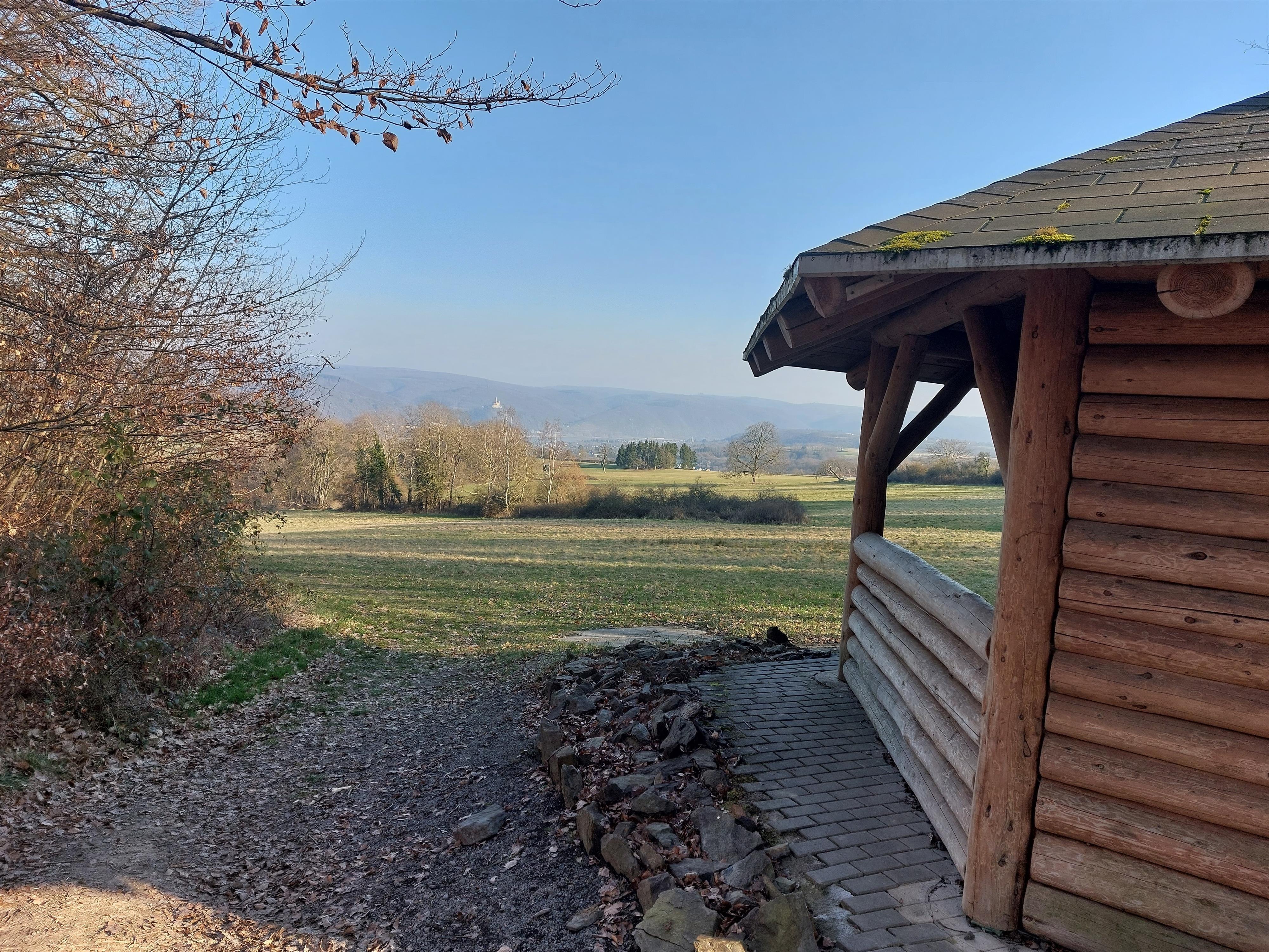 Wanderschutzhütte mit einem wundervollen Weitblick auf die umliegenden Felder, das Rheintal und die Marksburg.