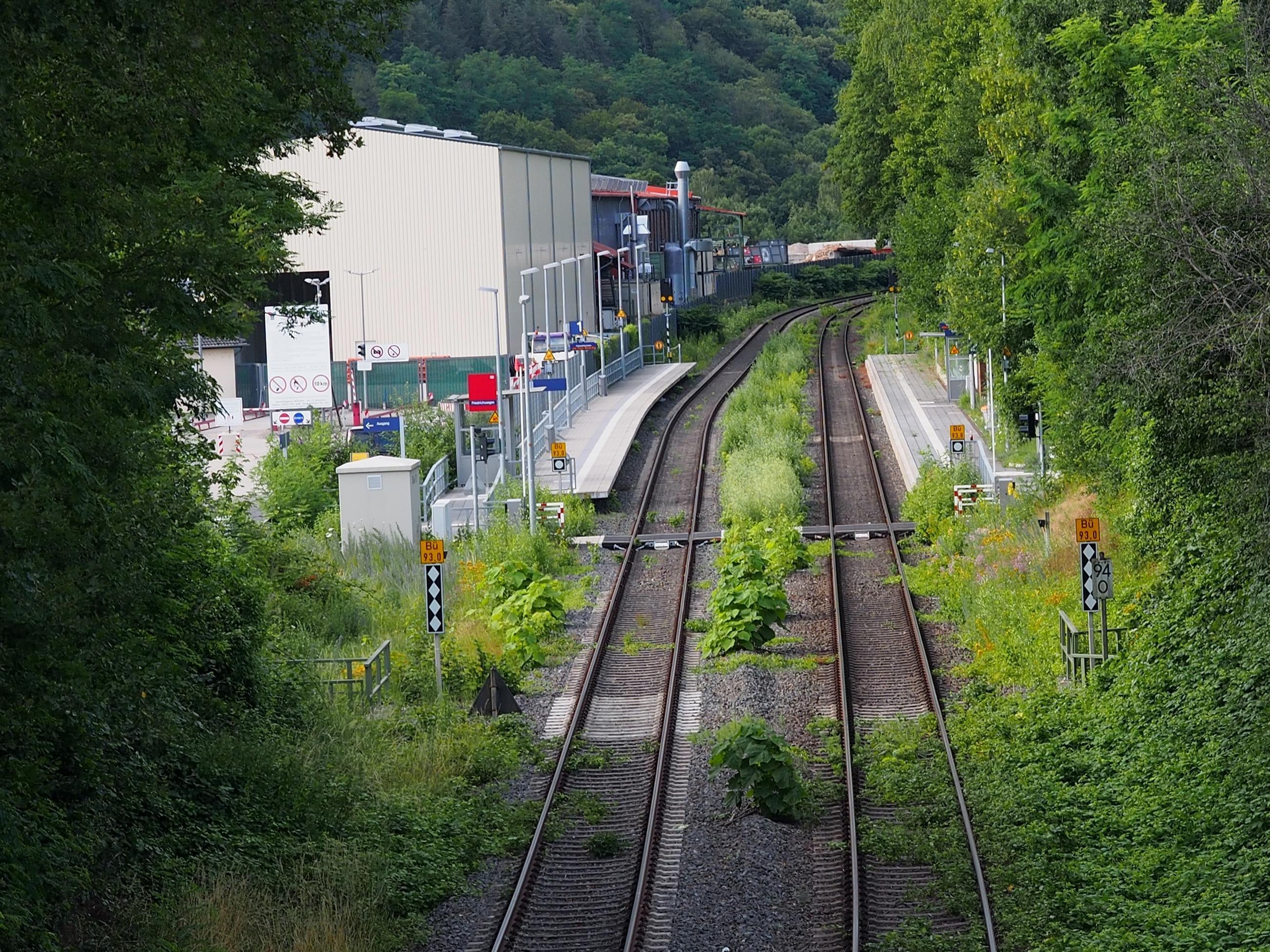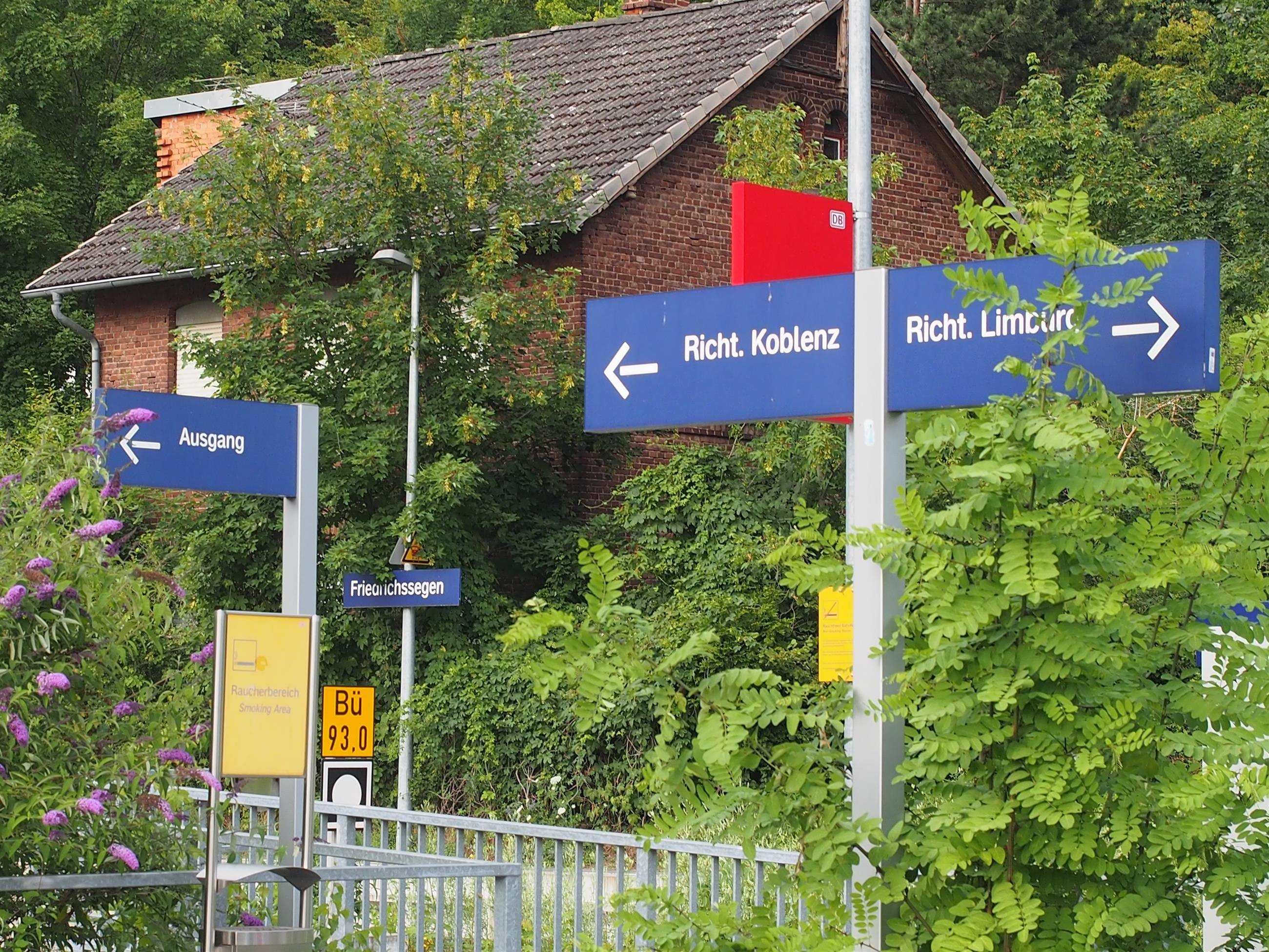 Der Durchgangsbahnhof für die Lahnstrecke Koblenz - Lahnstein - Bad Ems - Gießen und der Buslinie 573 Koblenz - Lahnstein - Friedrichssegen.