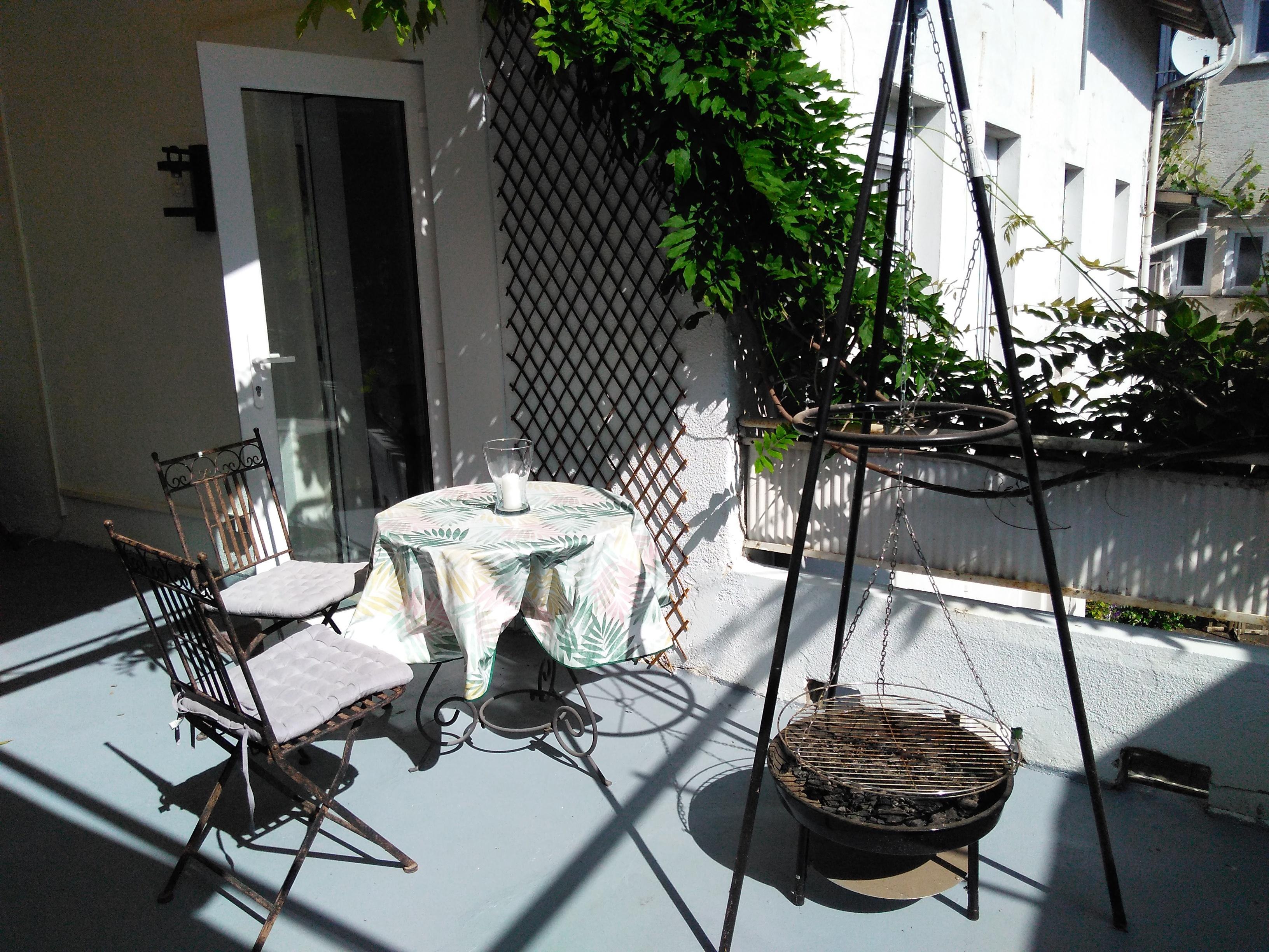 Die Ferienwohnung ist zentral gelegen. Vom Rauschen der Züge hört man wenig, da die Ferienwohnung abgeschirmt vom Haupthaus im Seitenflügel ist.
