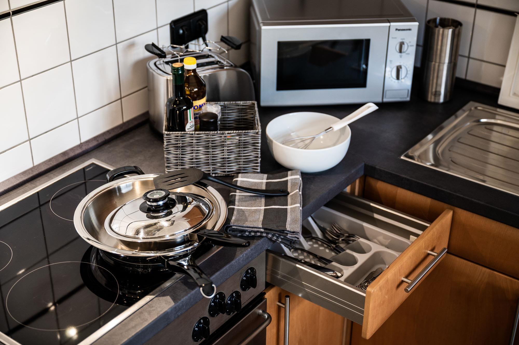 Eine komplett eingerichtete Küche inkl. Kaffeevollautomat