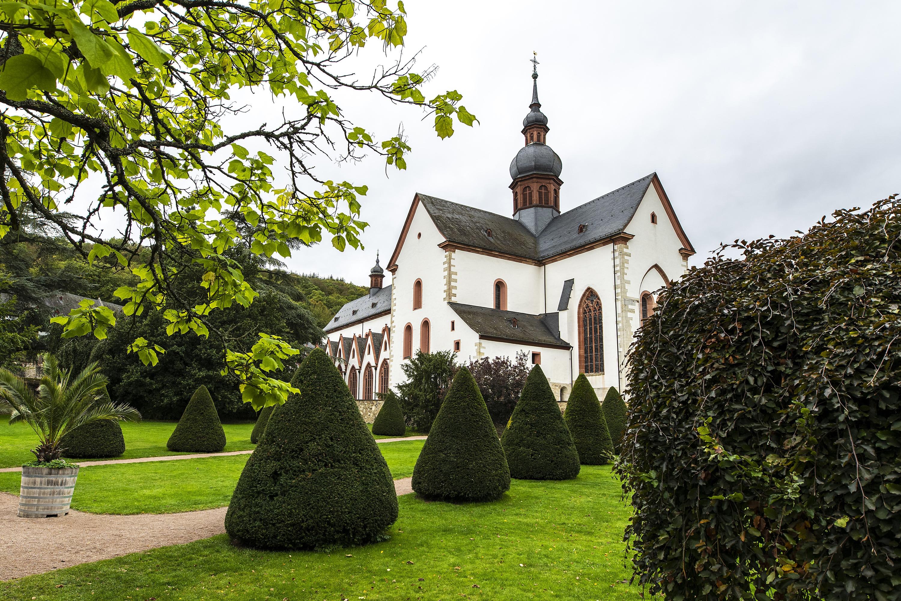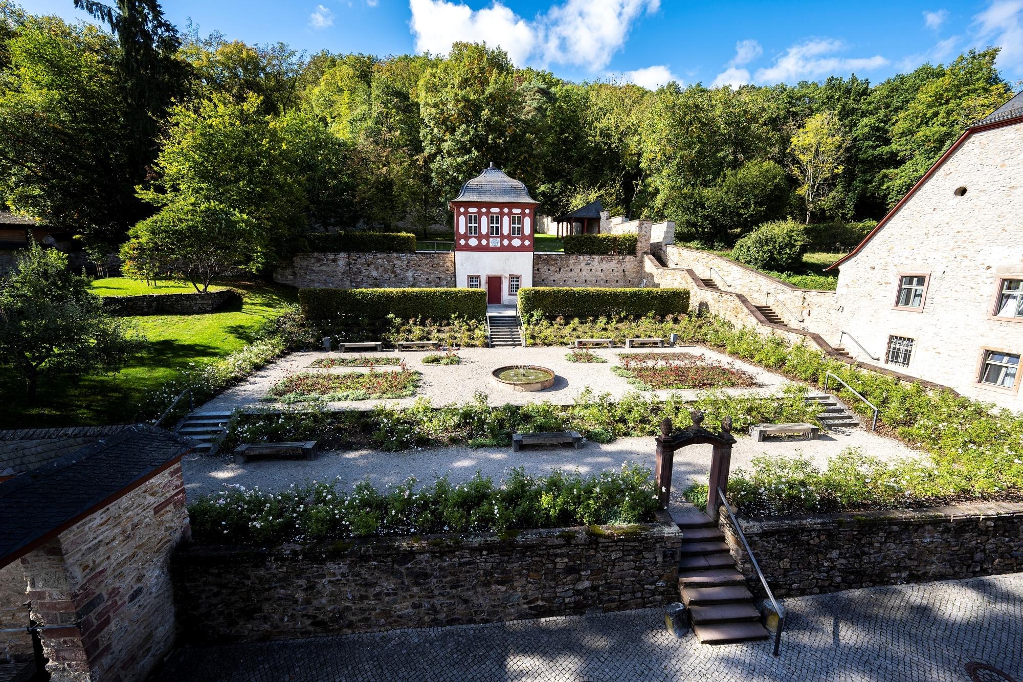 Die Gartenanlage rund um Kloster Eberbach, eine ehemalige Zisterzienserabtei in der Nähe von Eltville am Rhein, ist 7.5 ha groß. Das für seinen Weinbau berühmte Kloster war eine der ältesten und bedeutendsten Zisterzen in Deutschland. Die im Naturpark Rhein-Taunus gelegene Anlage zählt mit ihren romanischen und frühgotischen Bauten zu den bedeutendsten Kunstdenkmälern Europas.