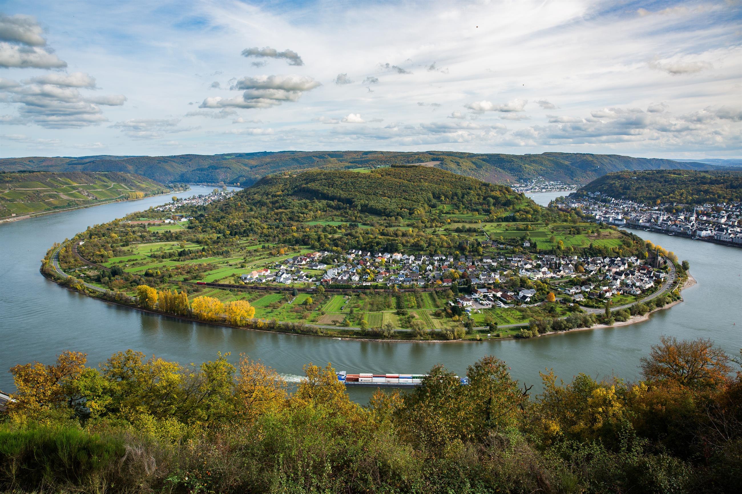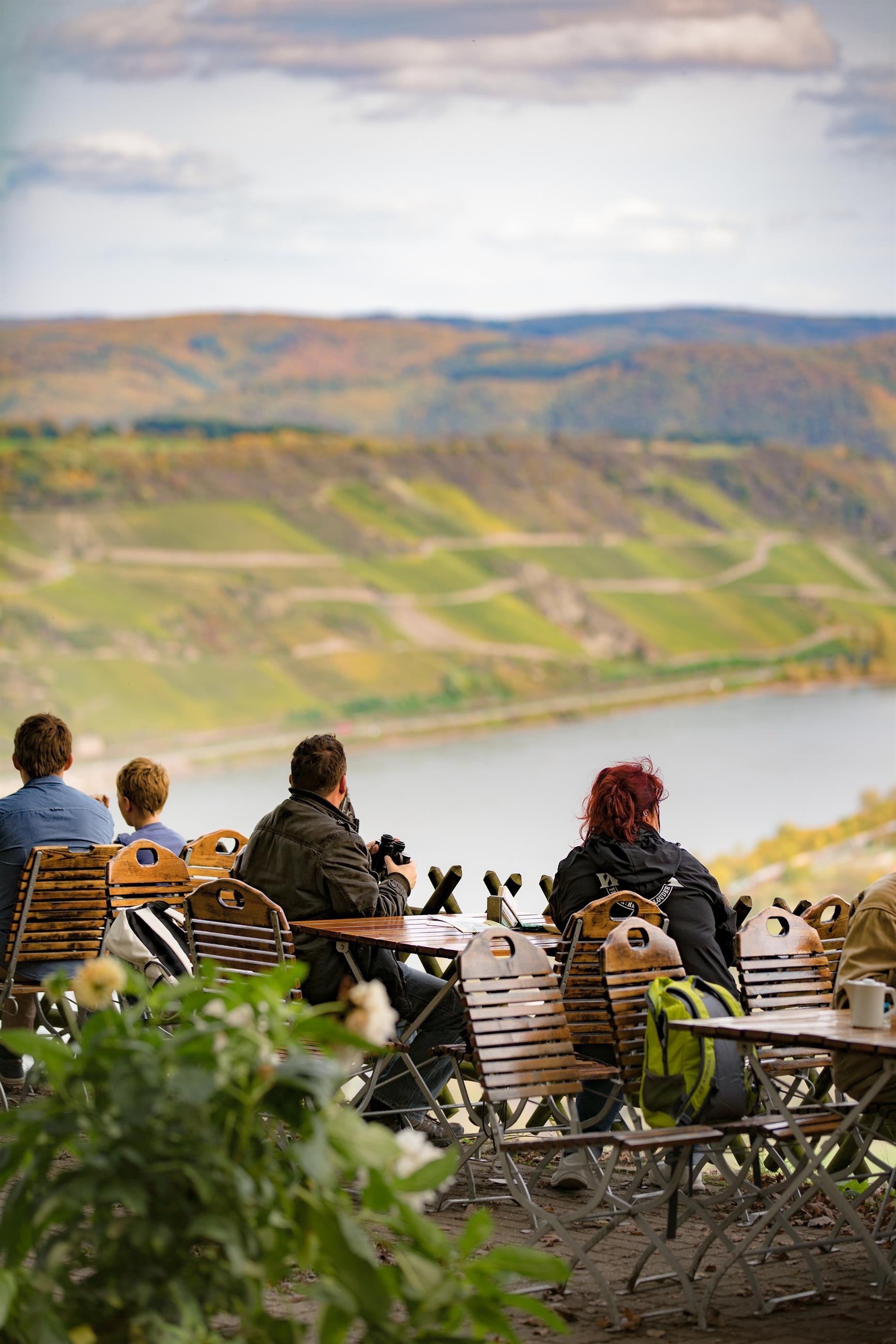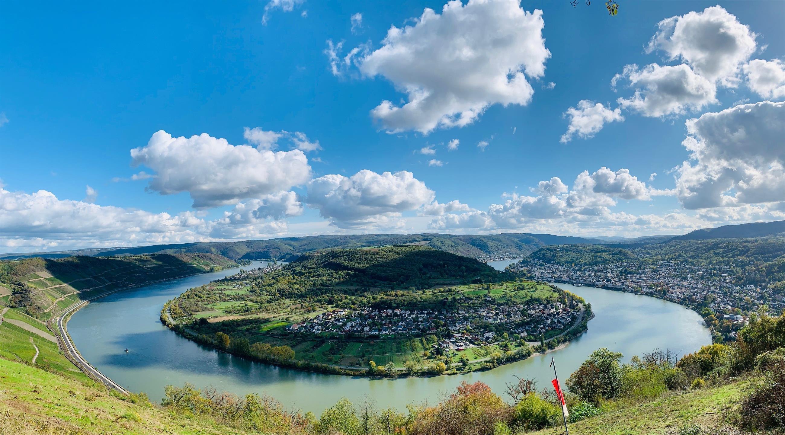 Toller Aussichtsspunkt oberhalb von Boppard. Von hier aus hat man einen schönen Ausblick auf die Weinberge des Bopparder Hamm und die große Rheinschleife.