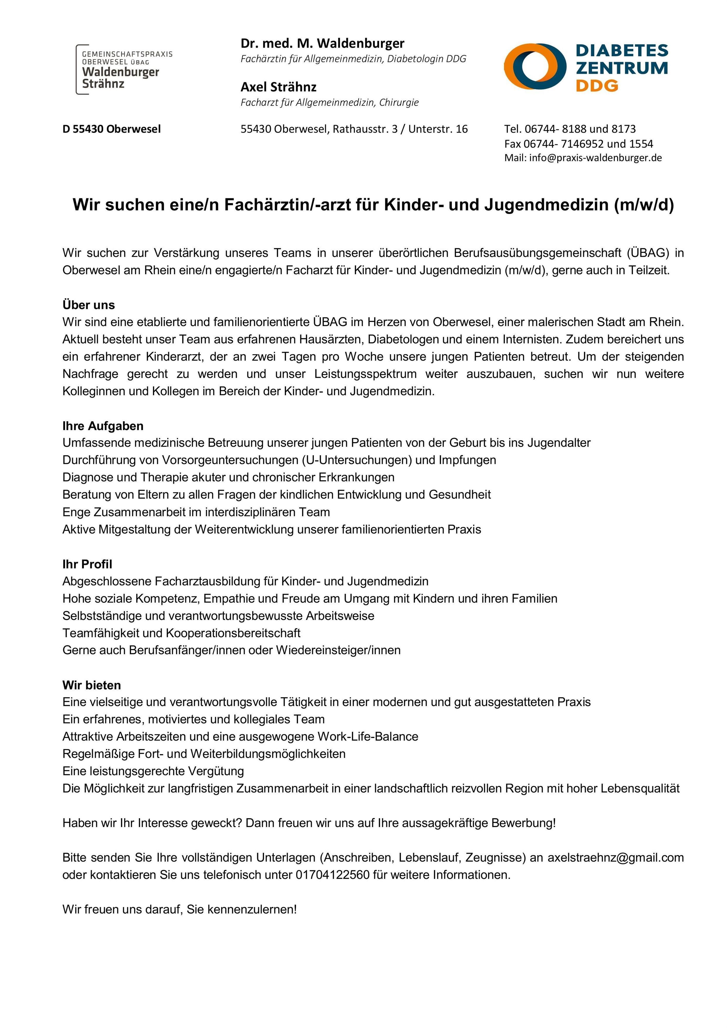 Dr. med. M. Waldenburger Fachärztin für Allgemeinmedizin, Diabetologin DDG