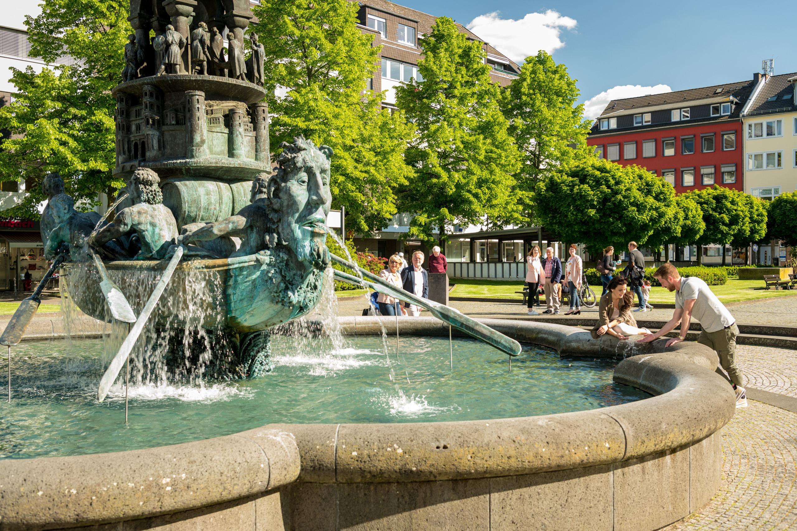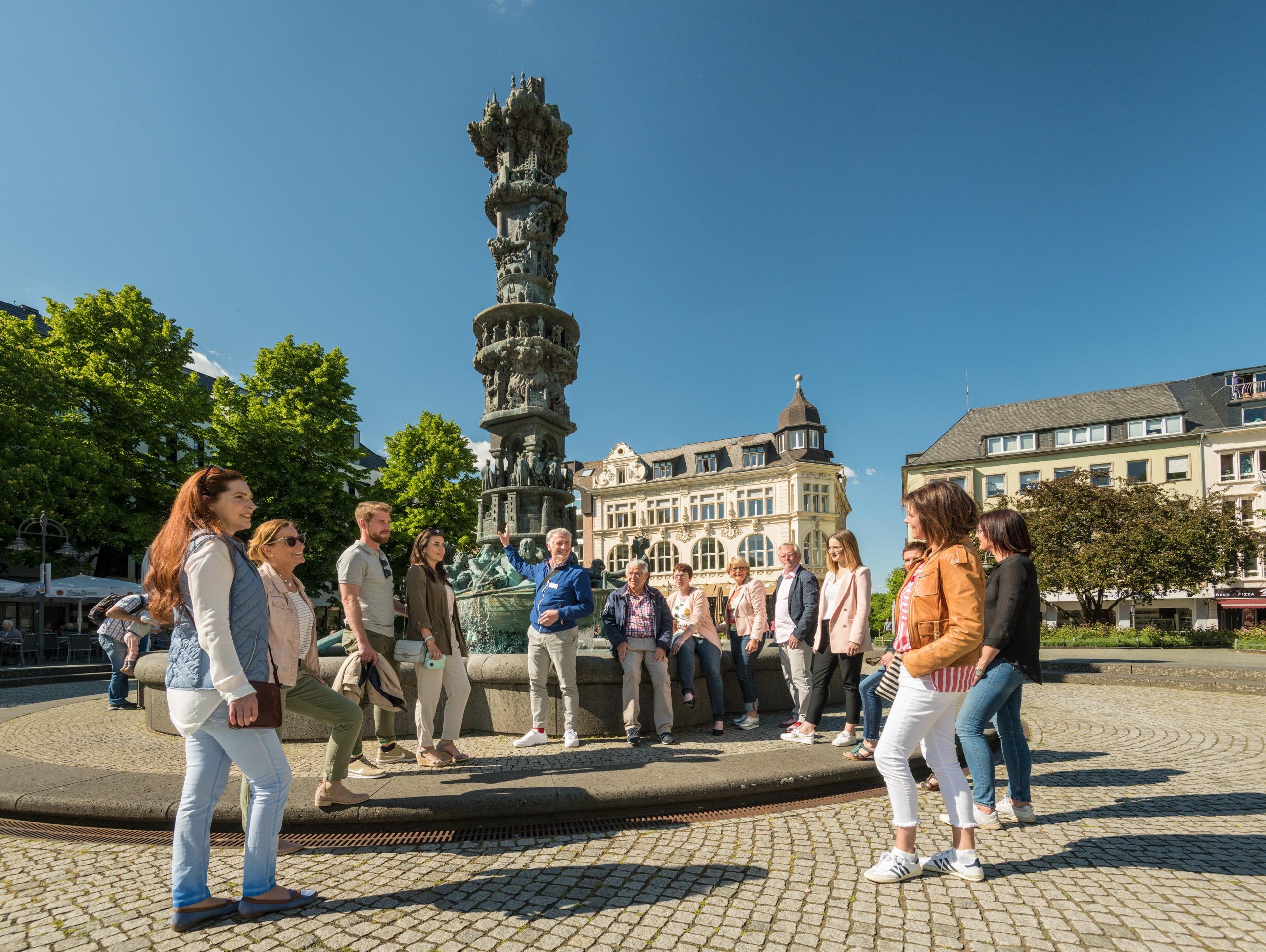 Bestaunen Sie die Historiensäule auf dem Josef-Görres-Platz – ein beeindruckendes Kunstwerk, das 2.000 Jahre Koblenzer Stadtgeschichte in Bildern erzählt