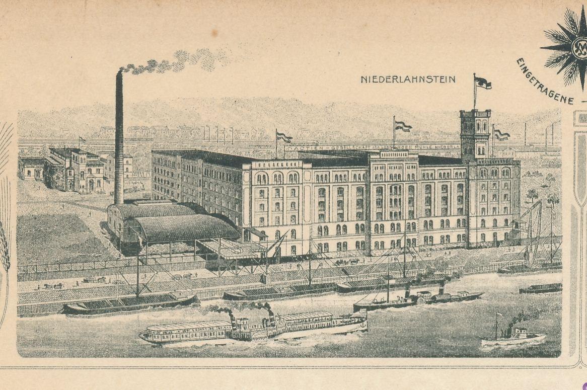 Nach zweijähriger Bauphase nahm die nach den neuesten technischen Erkenntnissen eingerichtete Dampfmühle ihre Arbeit auf. Neben der eigentlichen Mühle beherbergte die Anlage ein Kesselhaus sowie jeweils einen Getreide- und Mehlspeicher. Nach einer ersten baulichen Erweiterung im Jahr 1911 war die Anlage in der Lage, bis zu 120 Tonnen Getreide pro Tag zu verarbeiten, das direkt von den Rheinschiffen auf das Betriebsgelände entladen wurde. 1929 erwarb Kurt Kampffmeyer die Mühle und gründete die Rheinisch-Nassauische Lagerei- und Speditions-Aktiengesellschaft Niederlahnstein. Der Mahlbetrieb wurde eingestellt, die Anlage fortan als Lagerstätte und Umschlagplatz für diverse Agrarprodukte genutzt. Die Erweiterung um Düngemittel und Kraftstoffe machte einen umfangreichen Ausbau der Anlage notwendig, bei dem die Lagerkapazität vervielfacht wurde. Seit 2010 ist die ehemalige Löhnberger Mühle Teil der Beiselen Lagerei- und Umschlags GmbH, die dort ebenfalls eine breite Palette an Agrarprodukten und Schüttgut umschlägt.