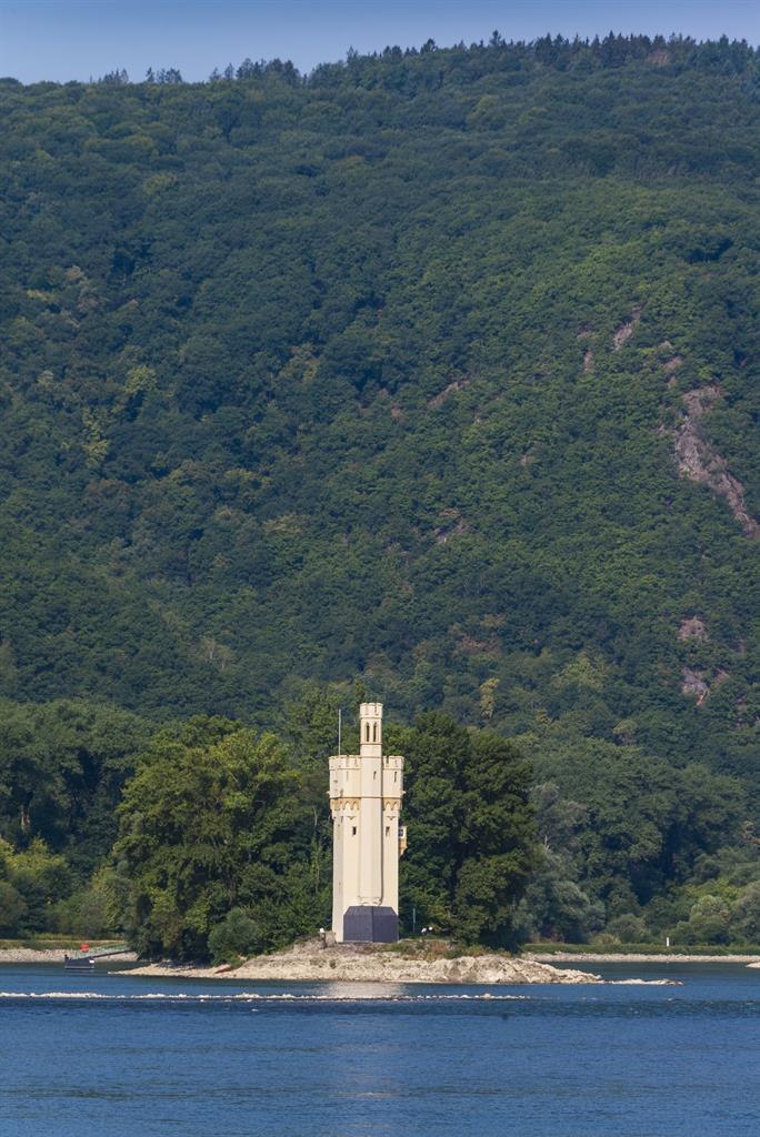 Historische Überlieferungen und Legenden ranken sich um den Turm auf der kleinen Rheininsel vor Bingen. Tatsache ist wohl, dass schon die Römer hier eine kleine Befestigungsanlage bauten. In der Herrschaftszeit der Franken verfiel diese aber mehr und mehr. Erst als Hatto II. 968 die Führung im Erzbistum Mainz übernimmt und Souverän über Bingen wird, gewinnt der Turm wieder an Bedeutung. Der Name „Mäuseturm", der 1516 erstmals belegt ist, leitet sich wohl von seiner Funktion als Wachturm (mittelhochdeutsch „musen" = lauern) ab. Doch der Turm wurde schon im 16. Jahrhundert mit der Legende von Bischof Hatto in Verbindung gebracht, der hier als Strafe für seine Unbarmherzigkeit bei lebendigem Leibe von Mäusen aufgefressen worden sei. Im Jahr 1298 wird der Turm in das Zoll- Sperrsystem der Burg Ehrenfels einbezogen.1689 zerstören französische Truppen das Bauwerk. 1855 errichten die Preußen auf der Insel einen Signalturm für die Schifffahrt, wie er heute noch zu sehen ist.