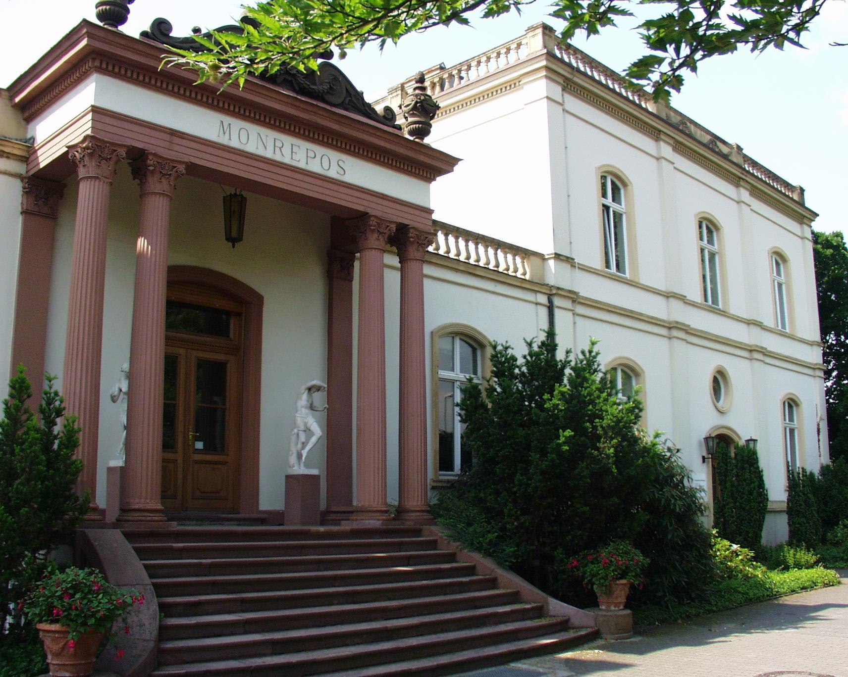 Monrepos wurde im II. Weltkrieg zerstört und danach umgestaltet. Heute zeigt der Park Monrepos Gartenkunst der fünfziger und sechziger Jahre mit Betonelementen und Natursteinarbeiten.