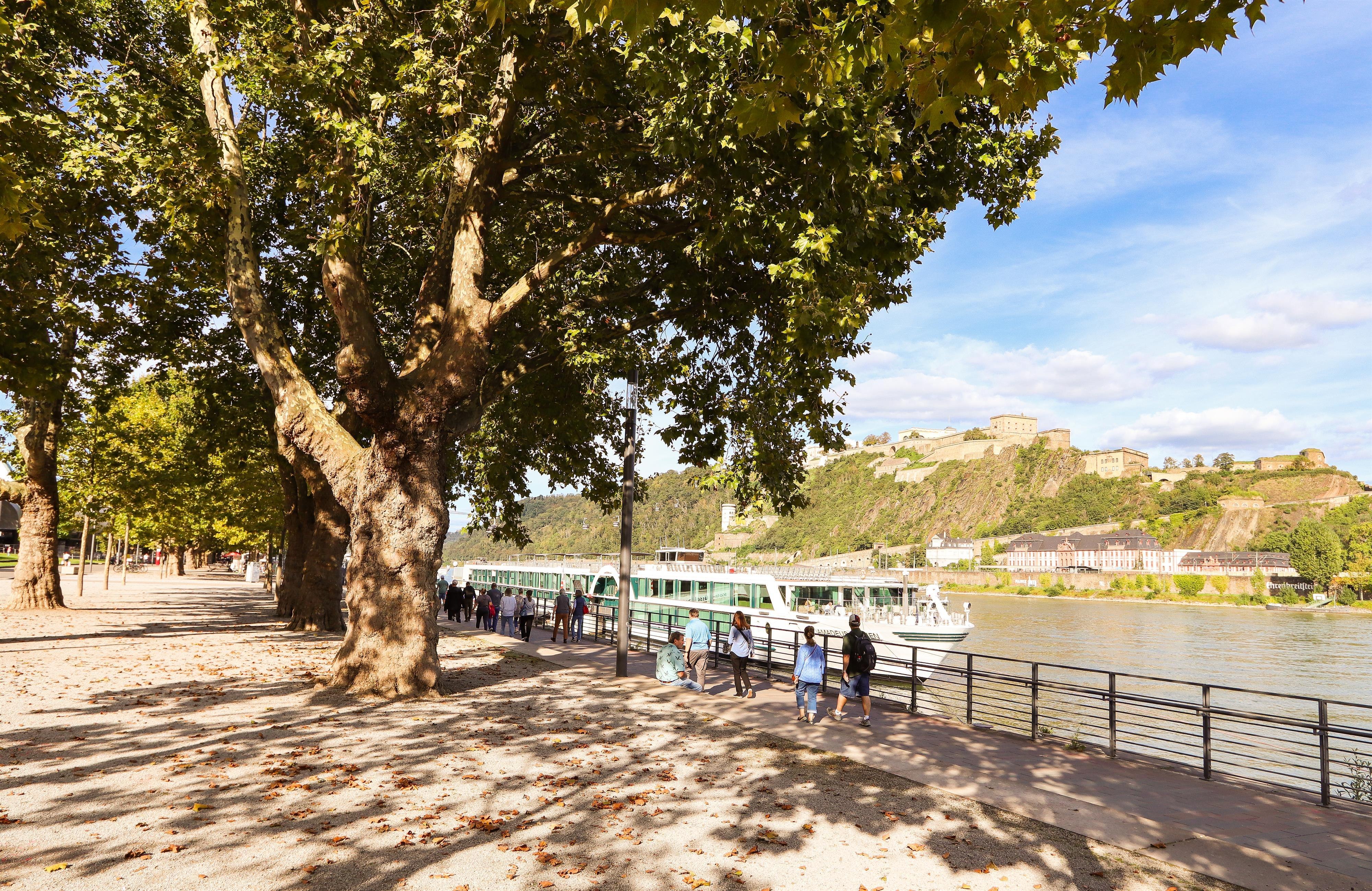 Die 3,5 Kilometer langen Rheinanlagen auf der linken Rheinseite verbinden das nördliche Konrad Adenauer-Ufer mit den südlichen Kaiserin-Augusta-Anlagen und sind damit Abschnitt des Rheinradweges. Die Kaiserin-Augusta-Anlagen wurden zwischen 1856 und 1861 im Auftrag von Augusta von Sachsen-Weimar-Eisenach, der Frau Kaiser Wilhelms I., von dem preußischen Gartenbaumeister Peter-Joseph Lenné (Sanssouci, Pfaueninsel u.v.m.) gestaltet. 1902 wurde der zweite Abschnitt der Rheinanlagen - das heutige Konrad-Adenauer-Ufer - vom Kurfürstlichen Schloss bis zum Deutschen Eck gebaut. Im Rahmen der Bundesgartenschau 2011 wurden die Rheinanlagen neu gestaltet und die Infrastruktur aufgewertet. Es ist ein prachtvoller Uferboulevard entstanden, der gesäumt von bedeutenden Sehenswürdigkeiten und Aussicht auf Rhein und Festung Ehrenbreitstein zum entspannten Flanieren und Verweilen einlädt.