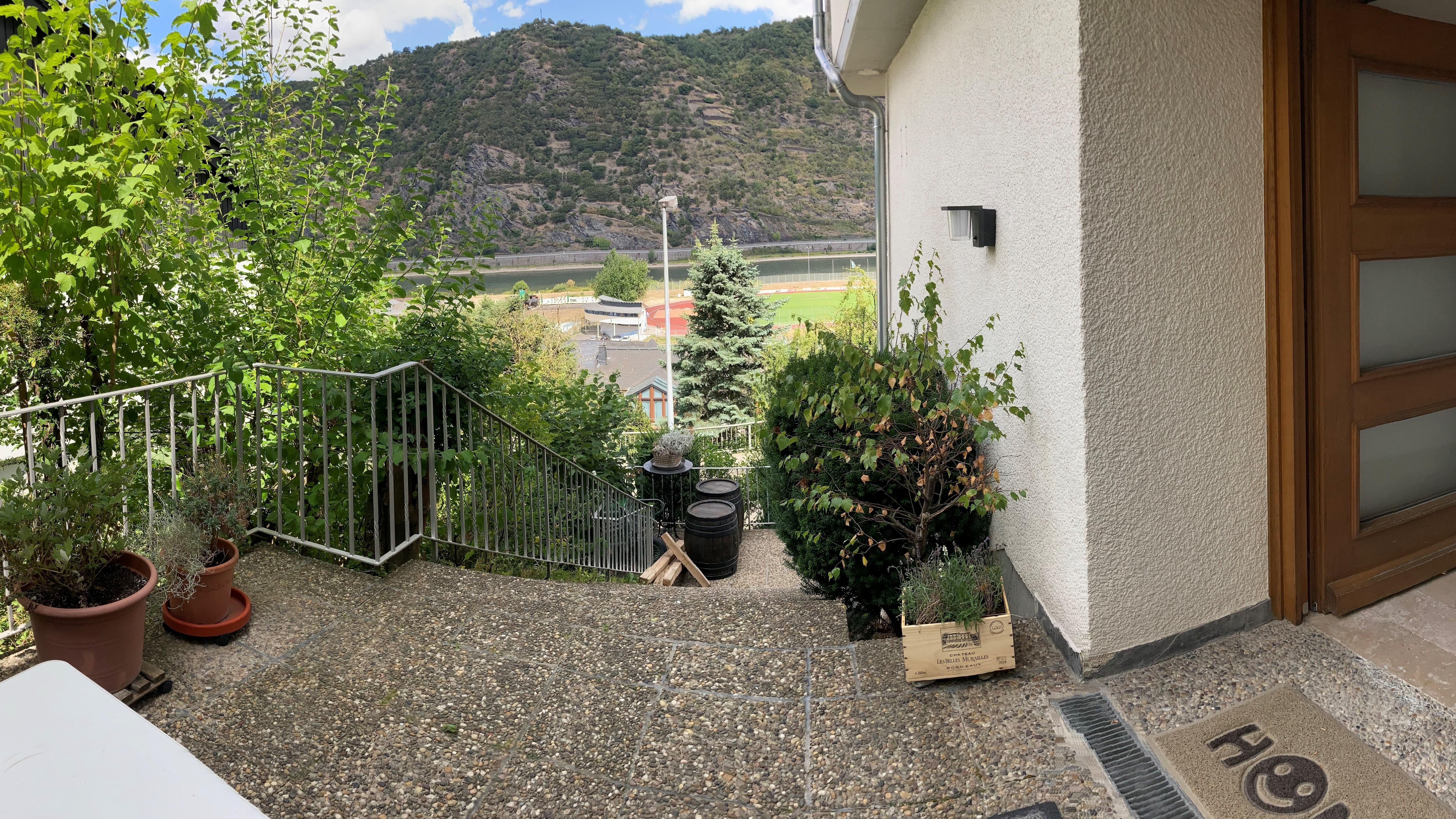 Unser Haus liegt am Ortsrand von Oberwesel, auf dem Weg zur Burg Schönburg, mit traumhaftem Blick auf den Rhein, Oberwesel und die umliegenden Weinberge.