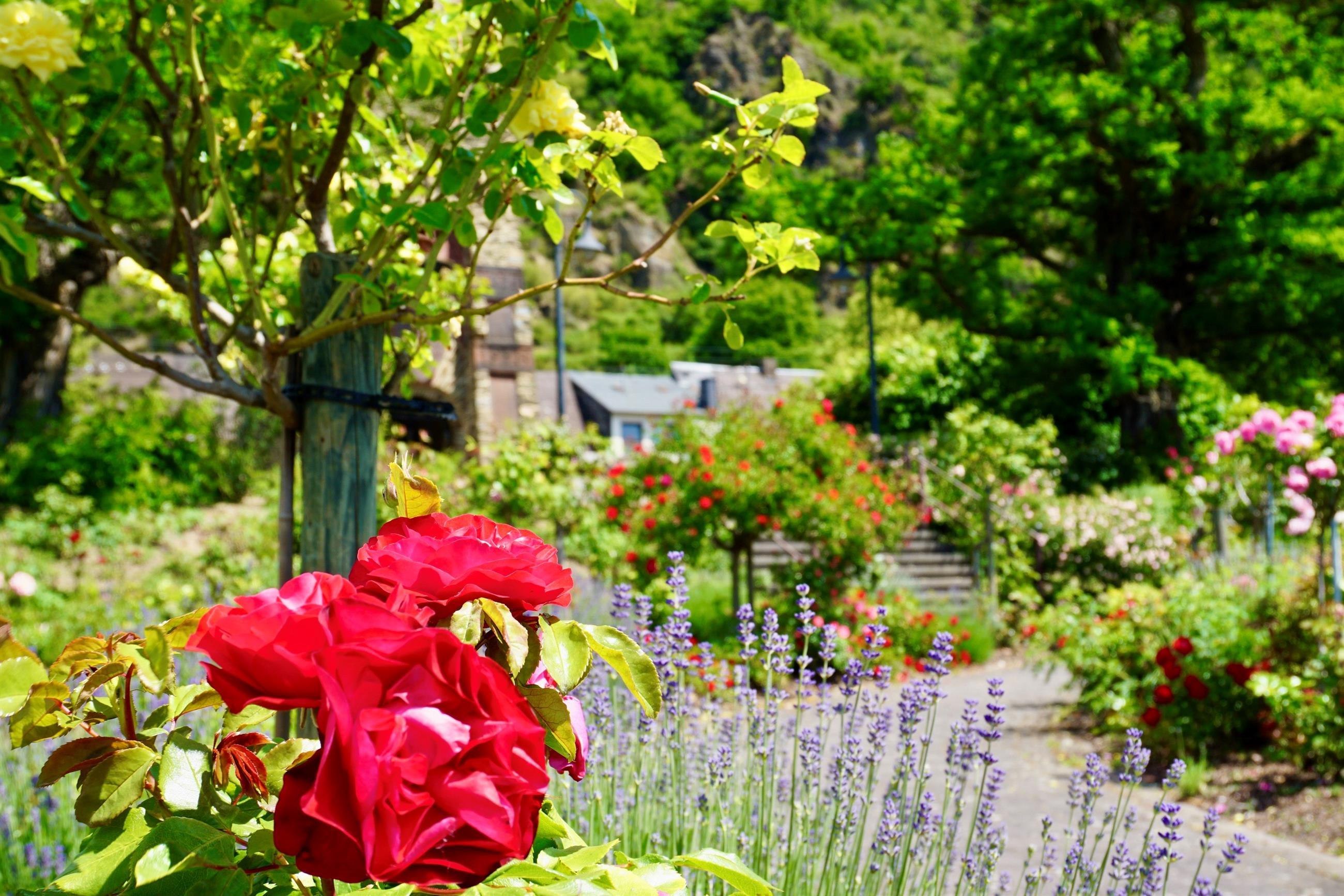 Der Rosengarten mit den neu gestalteten Bodo-Ebhardt-Anlagen ist ein weitläufiger Park am Braubacher Rheinufer und zeichnet sich durch eine Vielzahl von Rosenbeeten aus.