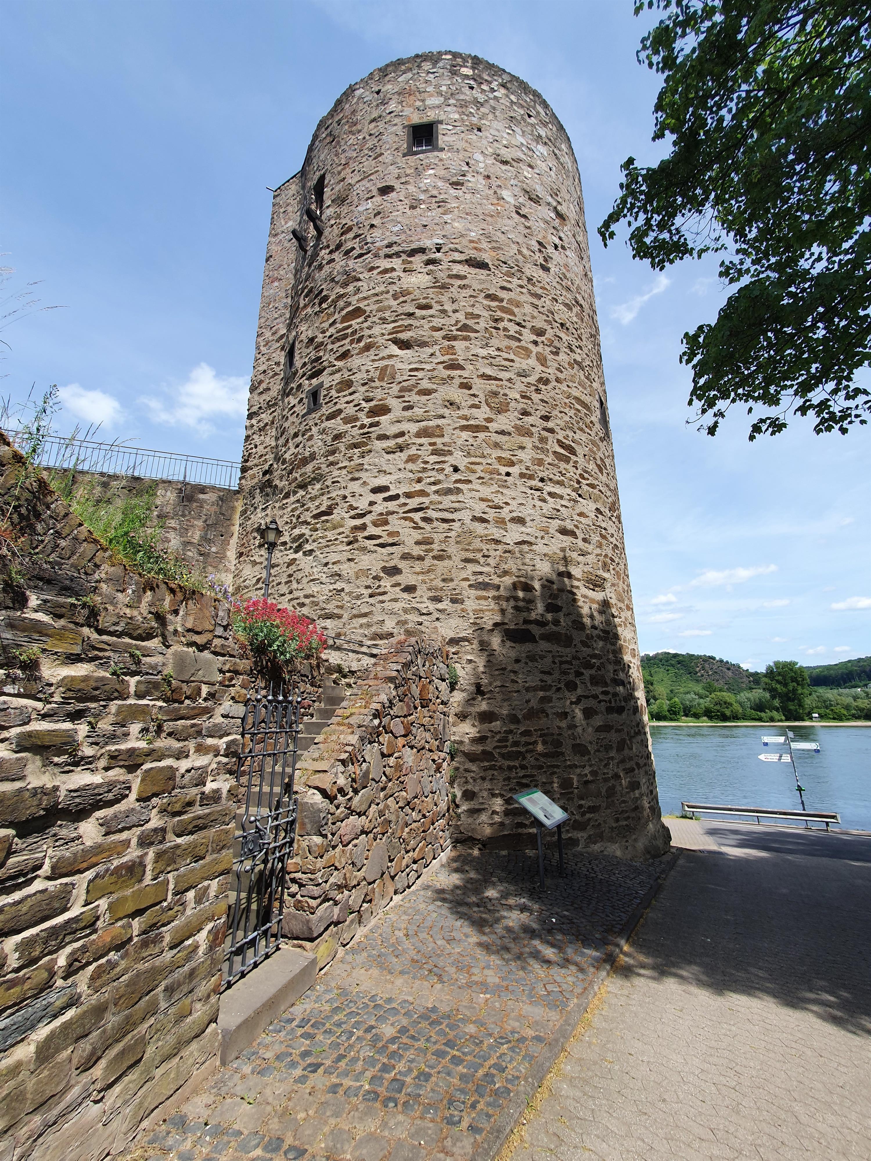 Er wurde 1396 errichtet und befindet sich direkt am Rhein. Insgesamt umfasst der Turm vier Geschosse, die Turmplattform eingeschlossen.