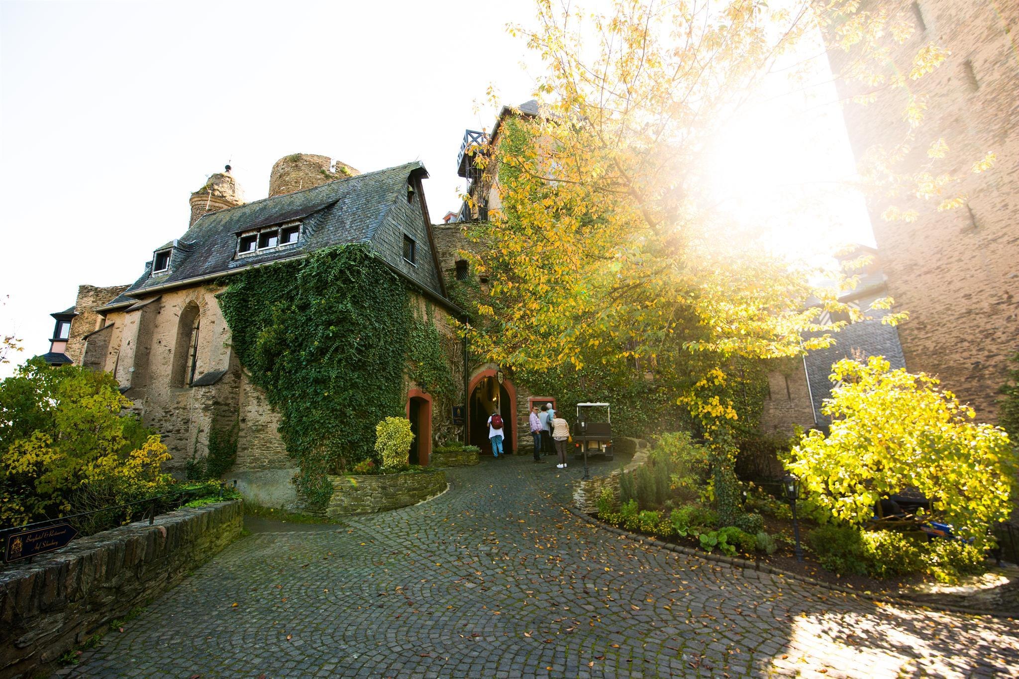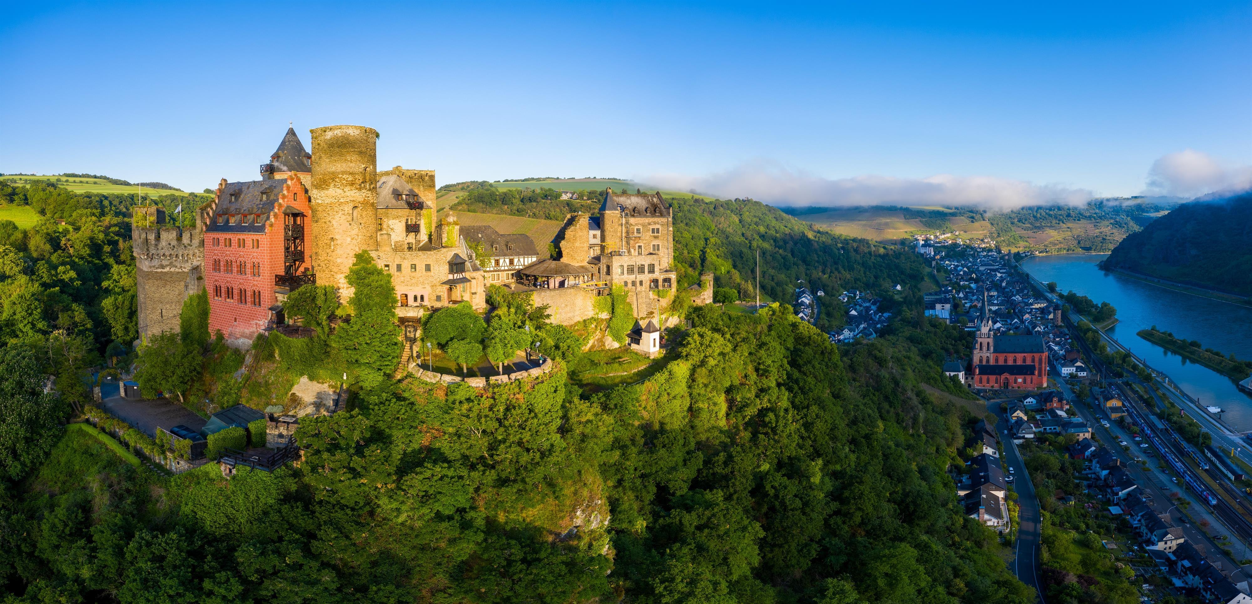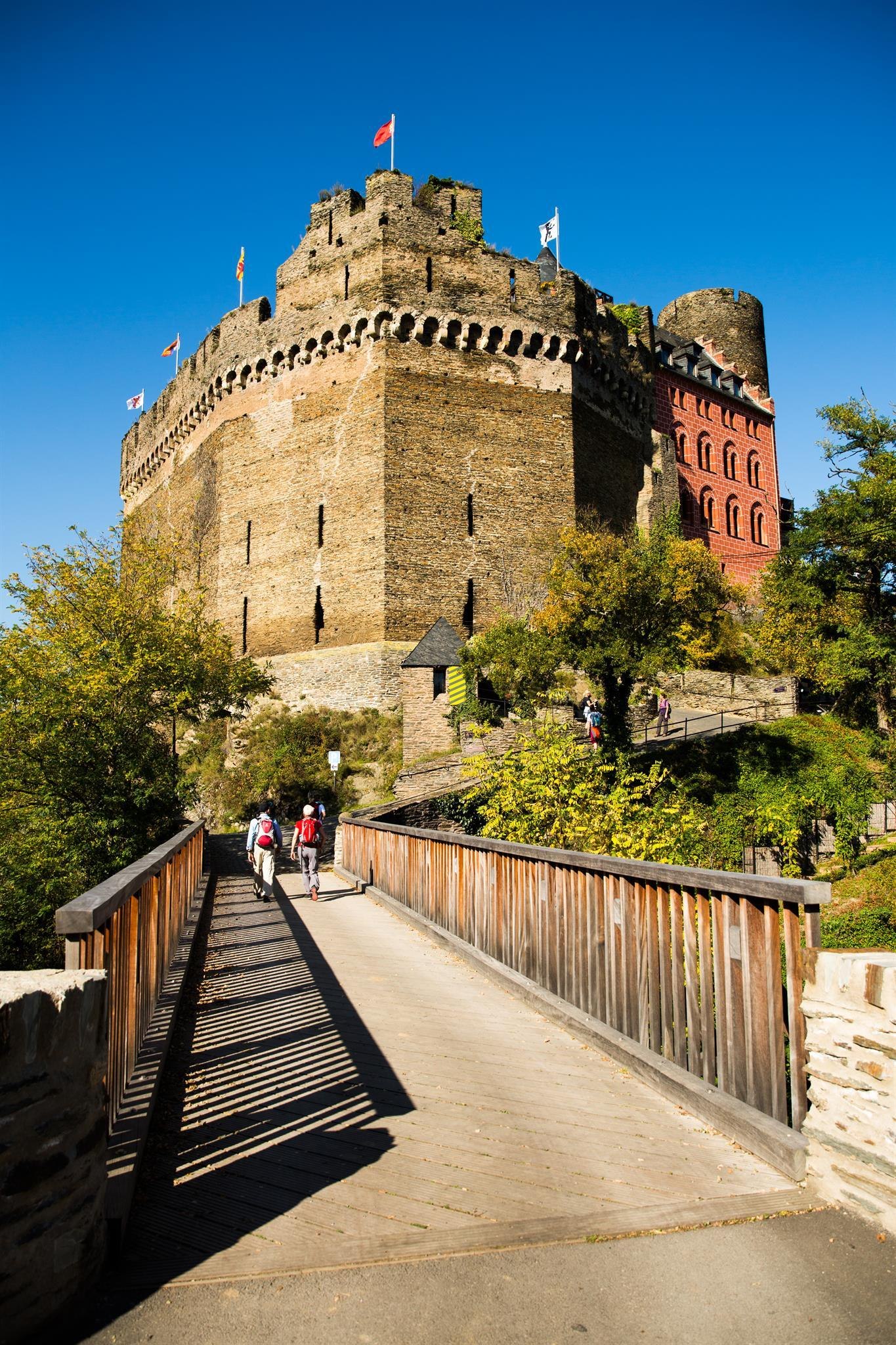 Schon von weitem sichtbar thront die imposante Schönburg über der Stadt Oberwesel.