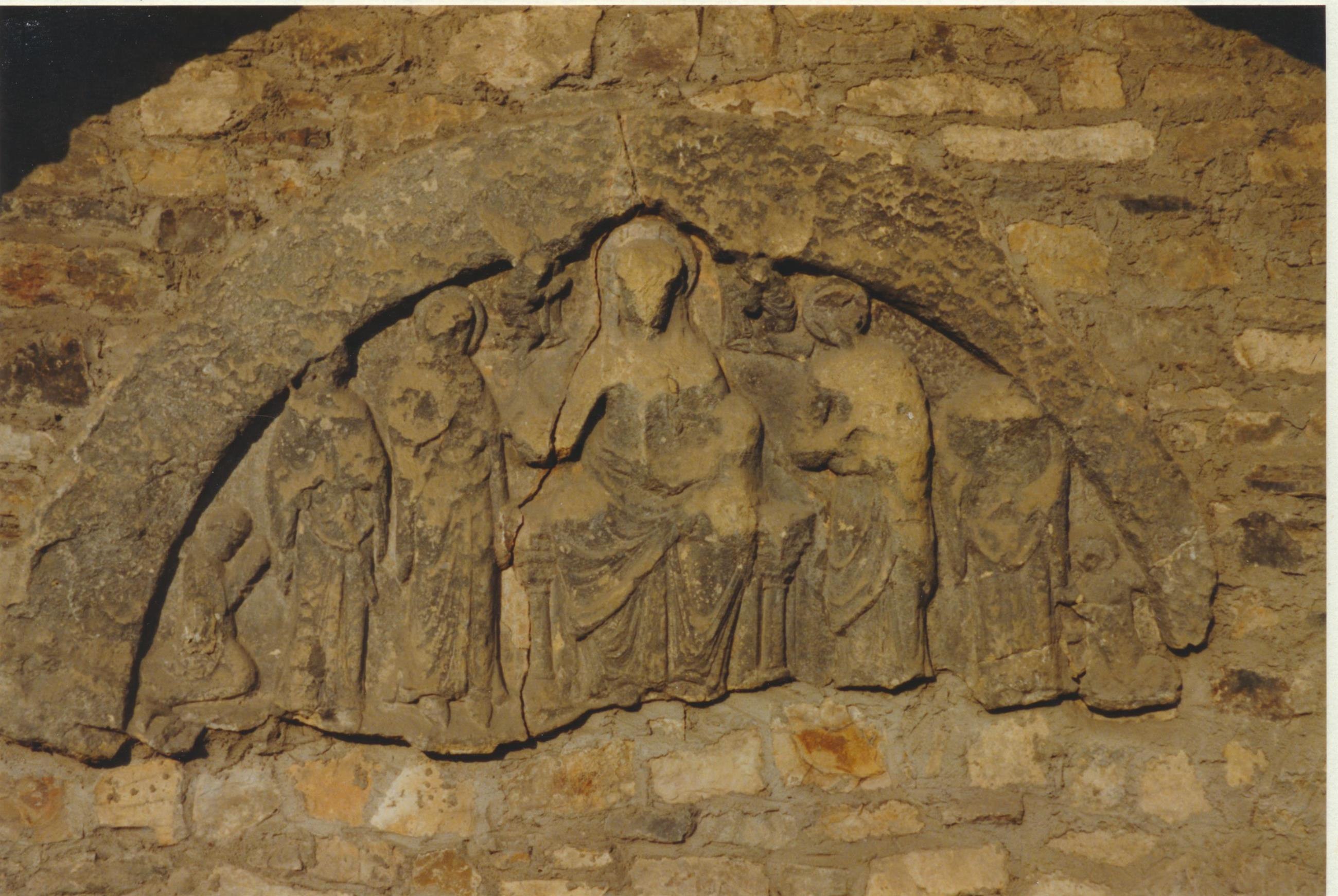Tympanon, mittelalterliches Kalksteinrelief.