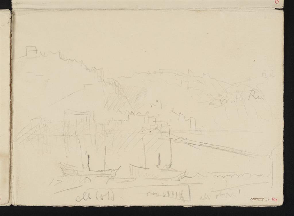 Als Turner sich 1817 vom 21. bis 23. August in Koblenz aufhält, fasziniert ihn die Festung Ehrenbreitstein so sehr, dass er gleich mehrere Skizzen aus mehreren Perspektiven anfertigt. Auch auf späteren Reisen (zwischen 1839 und 1844) führt ihn sein Weg zurück in die Stadt am deutschen Eck, wobei er des Motivs der erhabenen Festung nicht müde wird. In diesem Werk fällt sein Blick vom linksrheinischen Ufer (in Koblenz) auf die gegenüberliegende Rheinseite. Die Festung ist schemenhaft in der Kontur des Hangs zu erkennen, Fels und Festung scheinen eine Einheit zu bilden. Die Festung Ehrenbreitstein befindet sich heute im Besitz des Landes Rheinland-Pfalz und kann besichtigt werden.