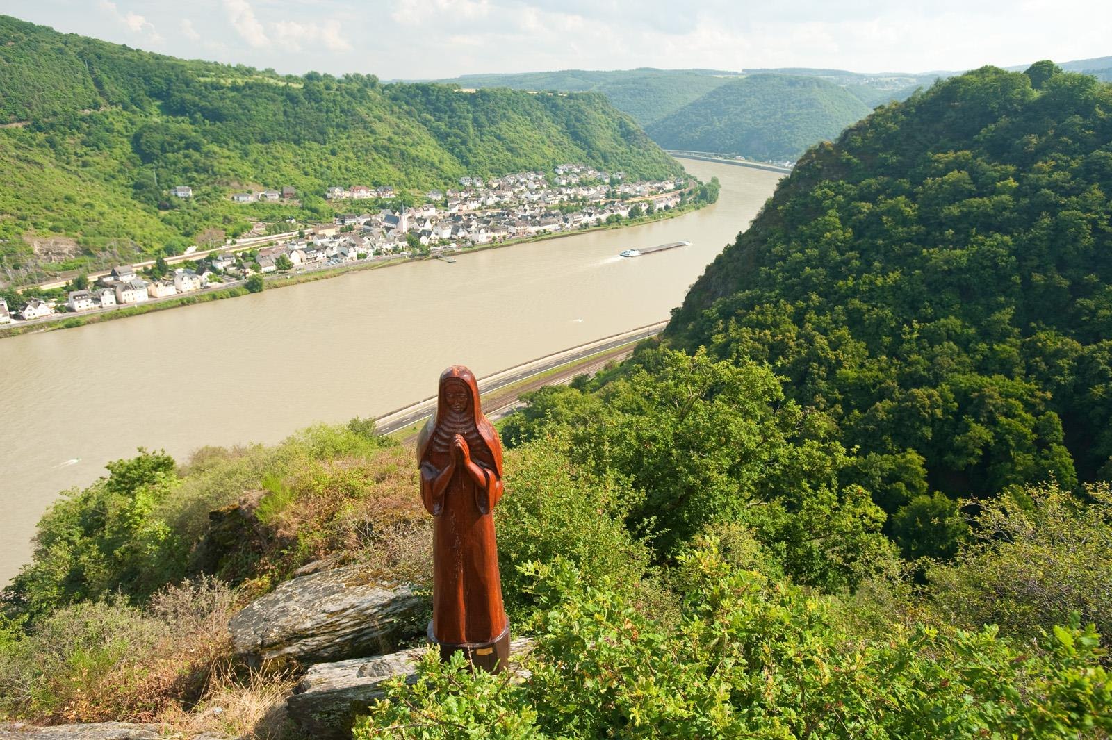 Ziehley 56154 Weiler AnrufenKarteSie sind hier:StartseiteZiehley Aussichtspunkt bei Weiler mit tollem Weitblick auf den Rhein und das gegenüberliegende Kestert. Die Ziehlay ist über den RheinBurgenWeg erreichbar. Die Holzfigur zeigt eine betende Nonne.