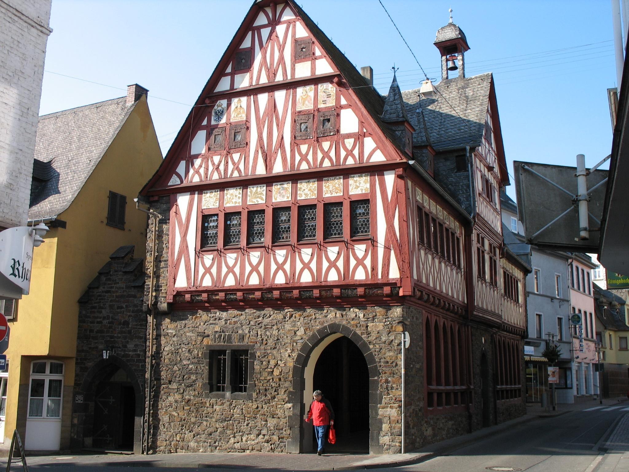 In the building, first documented in 1507 as "Gemeinde Hus," the affairs of the city were directed from then on, judicial proceedings were held, and the market was conducted in the older hall on the ground floor, which was constructed in the High Gothic style. Thus, the town hall united under its roof the rights of self-administration, judiciary, and market, alongside the right to establish a city wall, the three most important achievements granted to Oberlahnstein with the conferment of city rights in 1324.