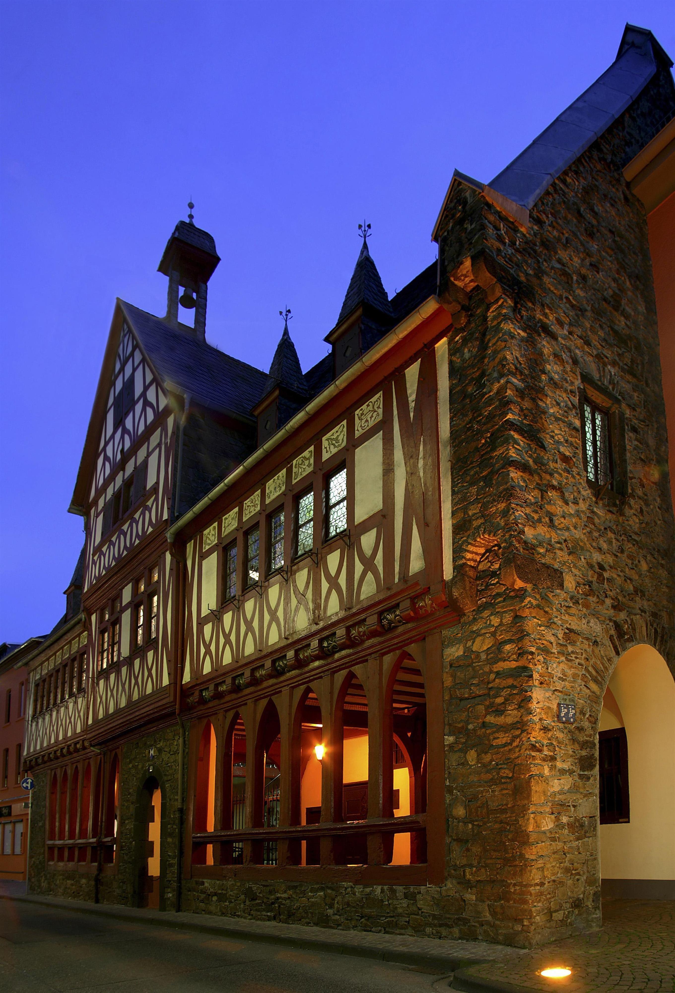 The significant and eventful history of the town of Oberlahnstein is still evident in the Old Town Hall today. Paintings in the hall depict the election and deposition of King Wenceslaus, who ruled the Holy Roman Empire from 1378 to 1400 and was deposed in Lahnstein. On the southern gable, King Ludwig the Bavarian, who granted Oberlahnstein its city rights, and Diether of Isenburg, who lived in Lahnstein from 1461 to 1474 as Archbishop and Elector of Mainz, are each represented with their coats of arms.