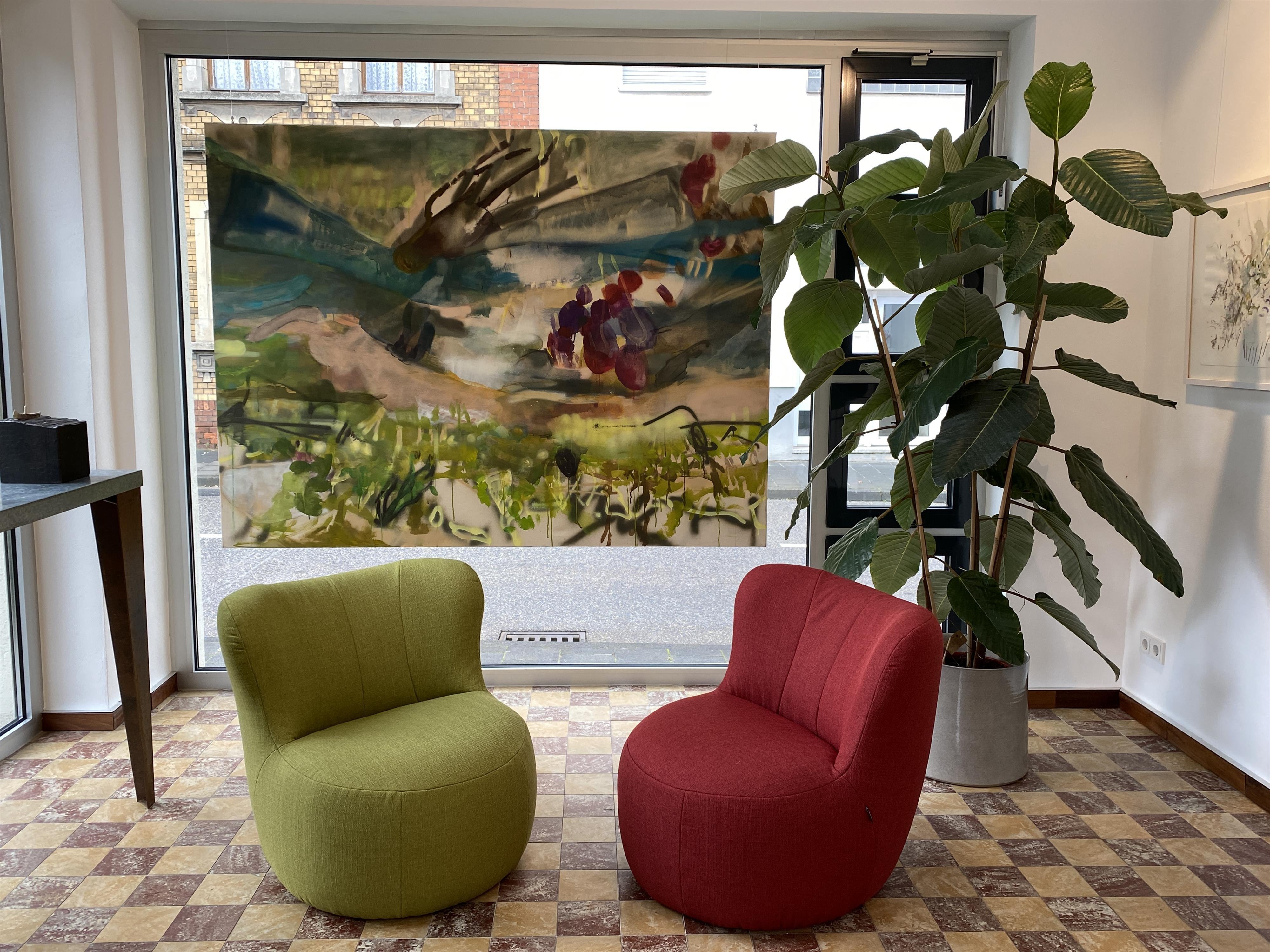 In good weather, one can linger in the garden on one of the beautiful spots or enjoy a tea on the colorful chairs in the exhibition room, which is always brewed on Fridays.