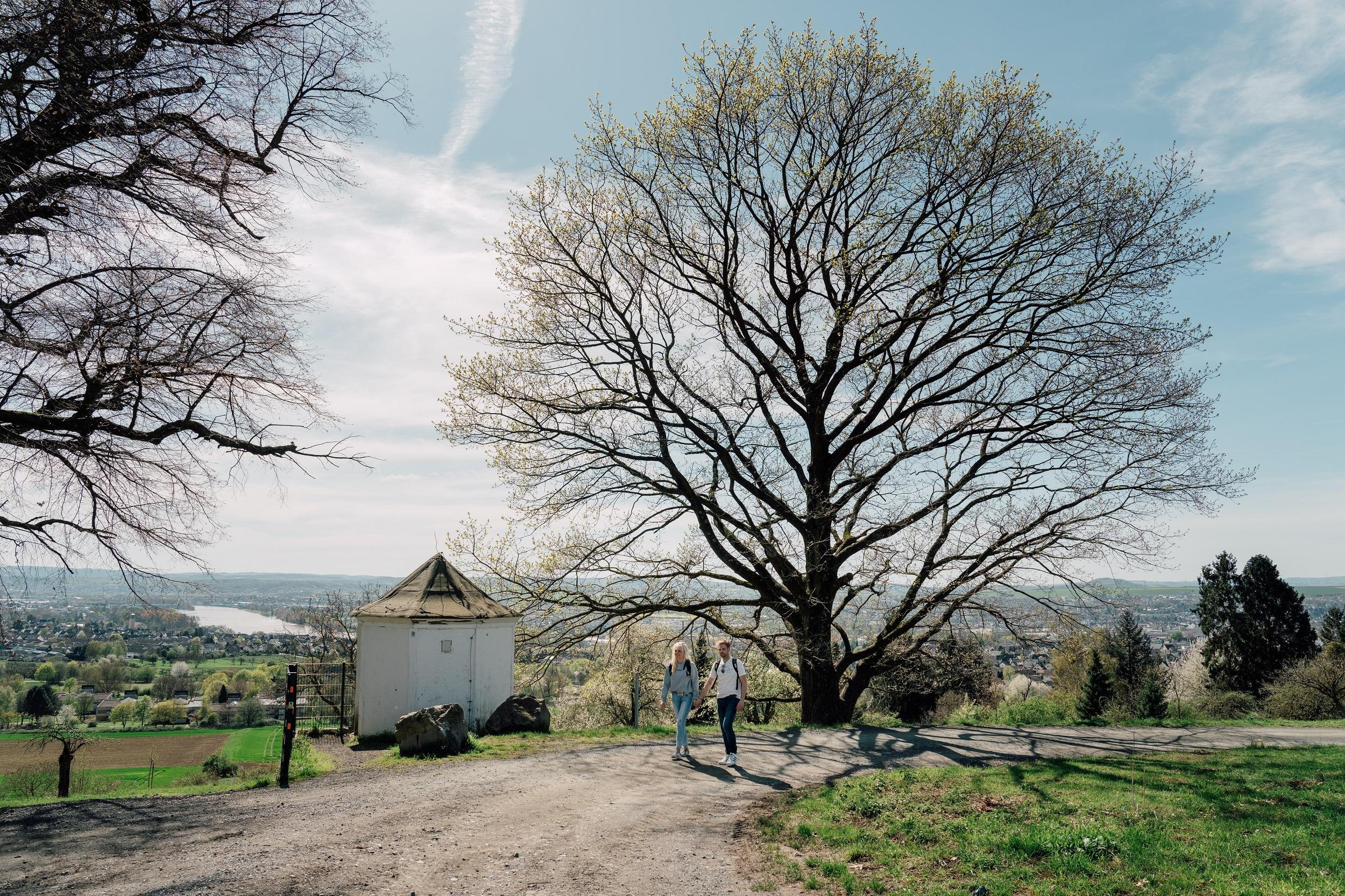 A dreamlike view can be found on the Rheinschubert trail at Lindenbäumchen. The old lime tree gives the place, with its hiking shelter, its name.