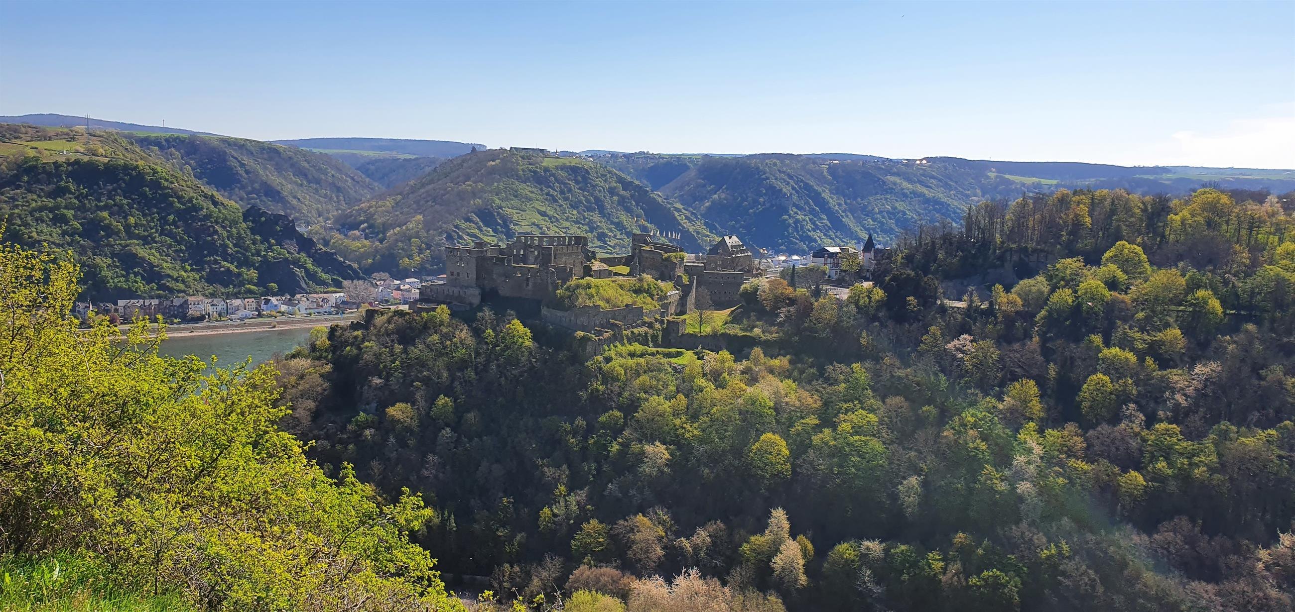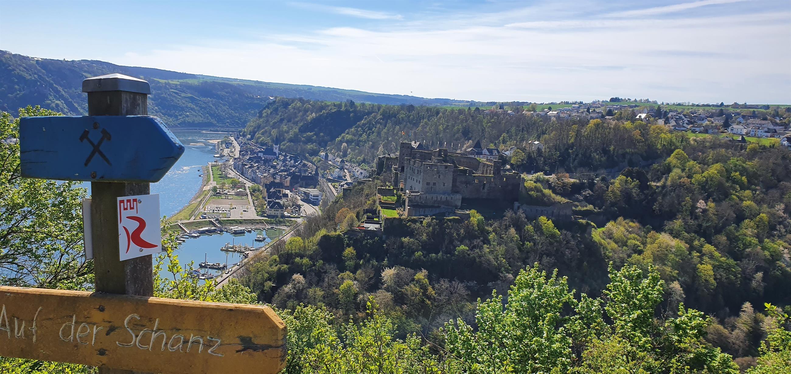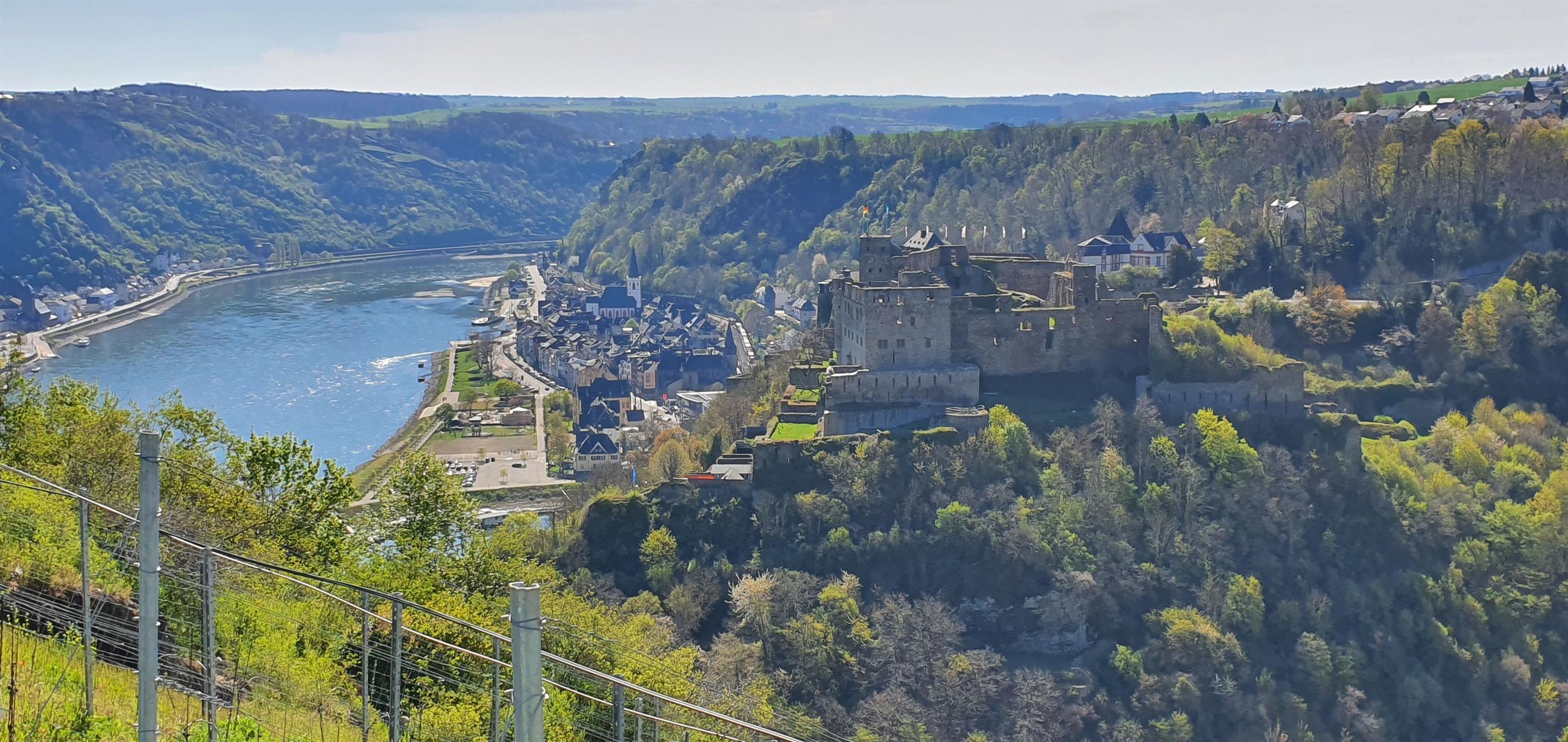 Viewpoint "Rheinfelsblick" opposite the Rheingoldbad in Werlau, with a great view of the castle and the Middle Rhine Valley.