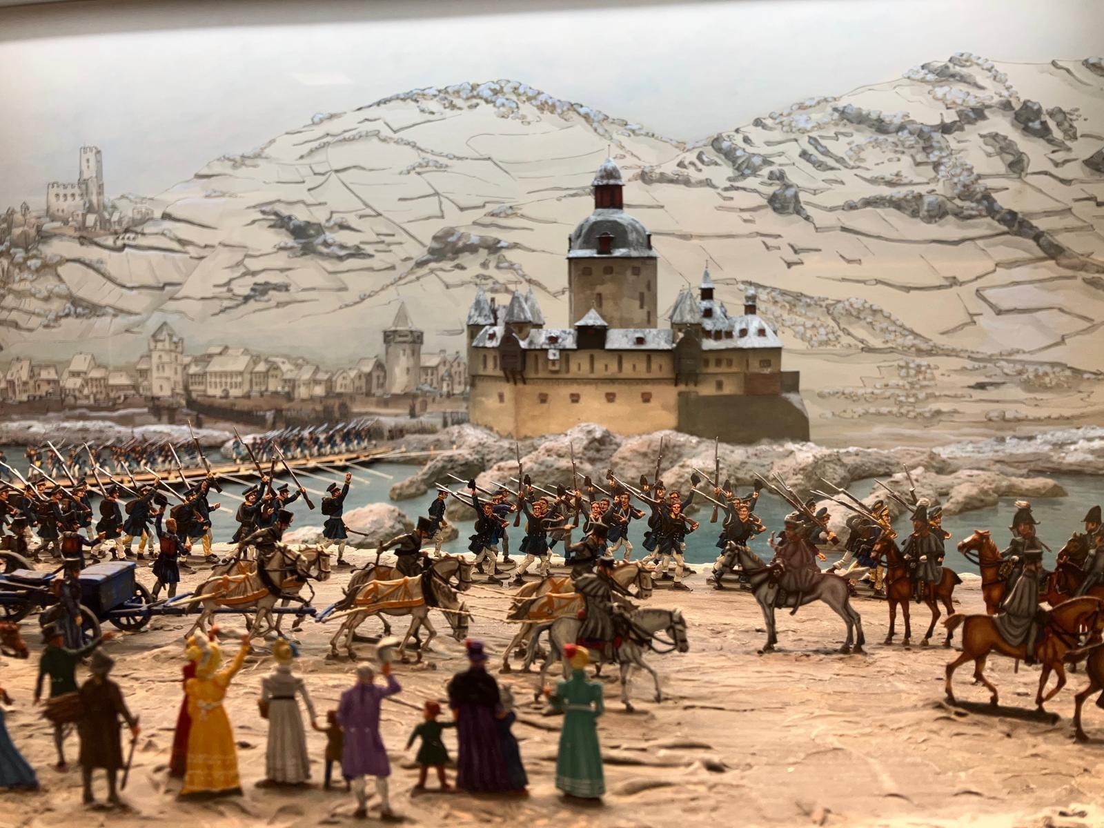 This theme is exhaustively treated with contemporary memorabilia, images, and display boards. A large tin figure diorama “Blücher's Rhine Crossing at Kaub” brings this historical event particularly close to the visitor. Additionally, there are other noteworthy dioramas.