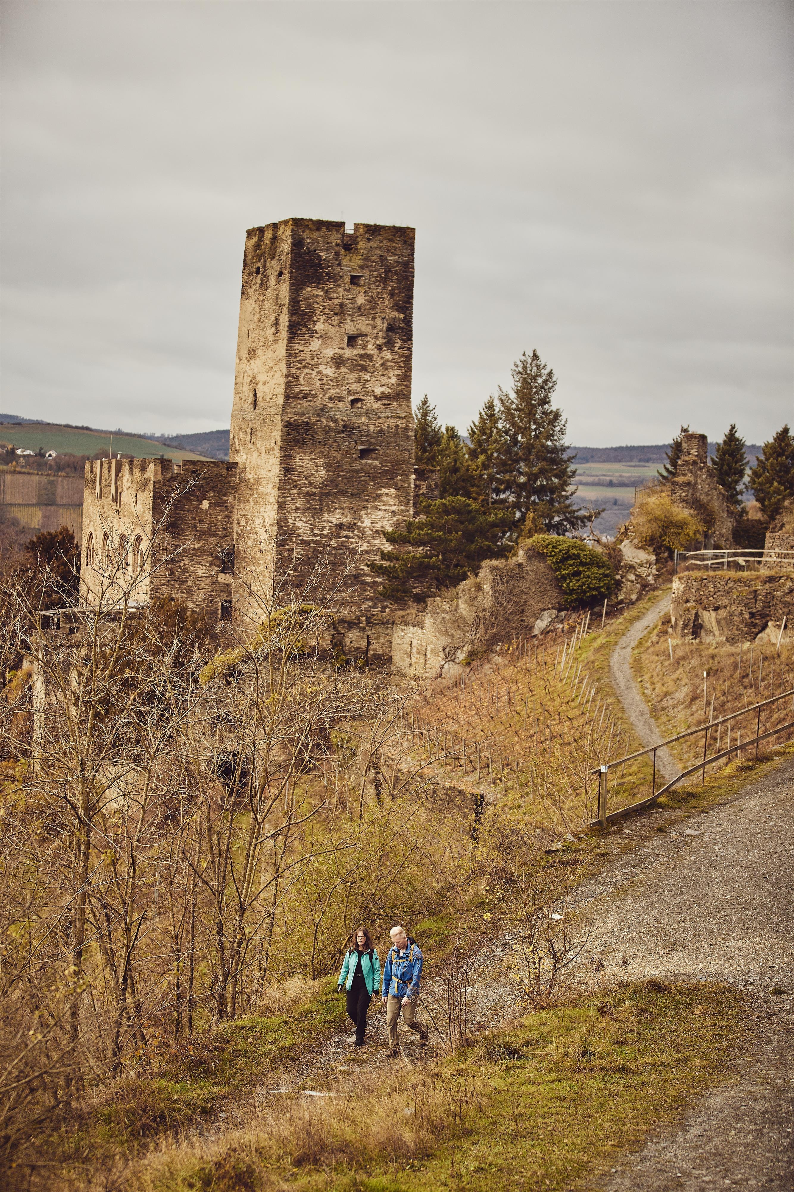The Gutenfels Castle in Kaub is considered a prime example of Staufer period castle construction and shapes the local landscape. The complex was built in 1222 by the Lords of Falkenstein-Münzenberg and served, along with the Pfalzgrafenstein Castle, to secure the Rhine customs in the area. The customs office from the 16th century has also been preserved in the town of Kaub. In 1504, the town and castle withstood a weeks-long siege by the troops of Landgrave Wilhelm of Hesse. Presumably, it was only after that that the name “Gutenfels” became common for the castle.