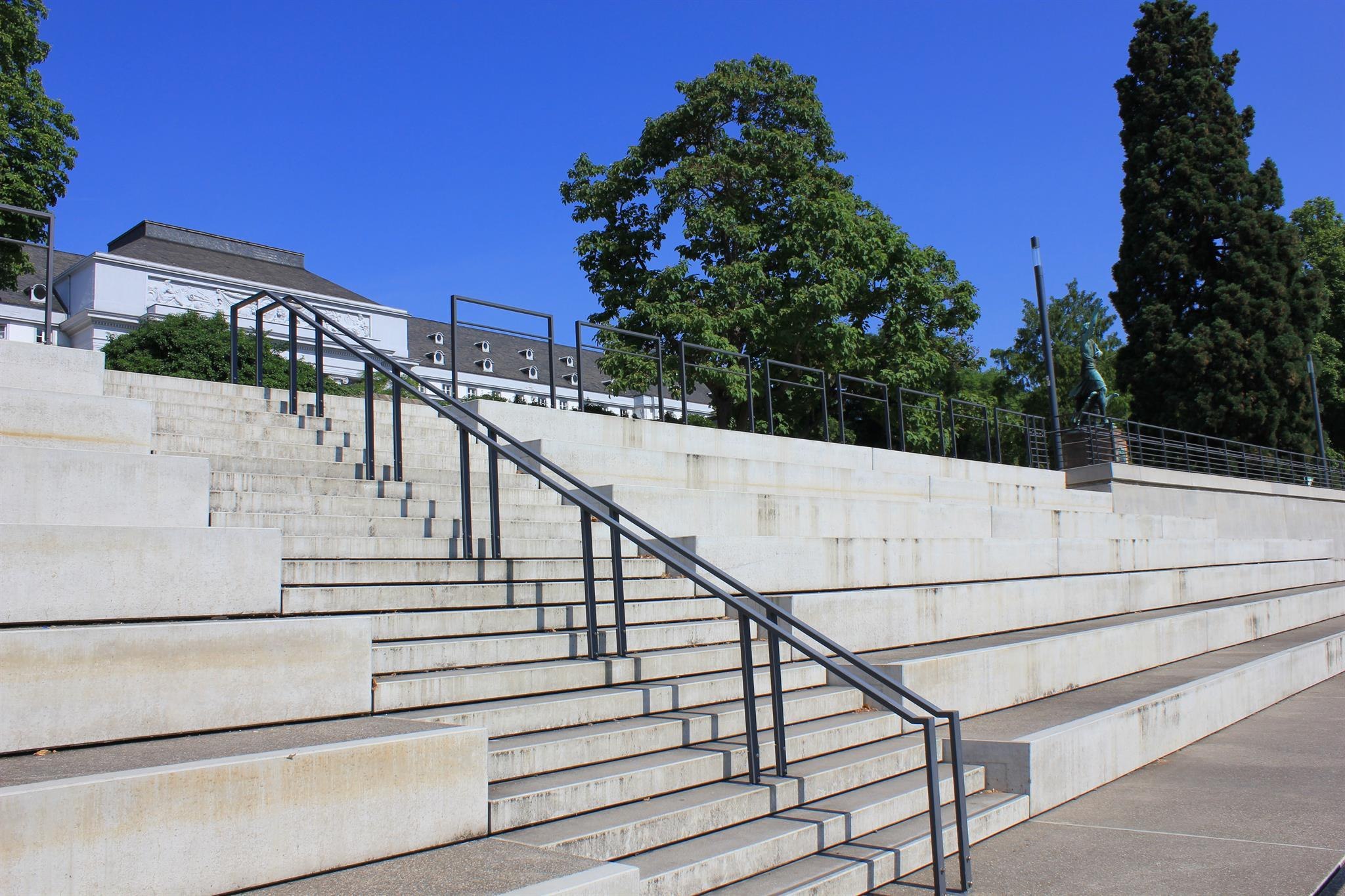 The large flight of steps along the Rhine was built in 2010 as part of the preparations for the Federal Garden Show 201