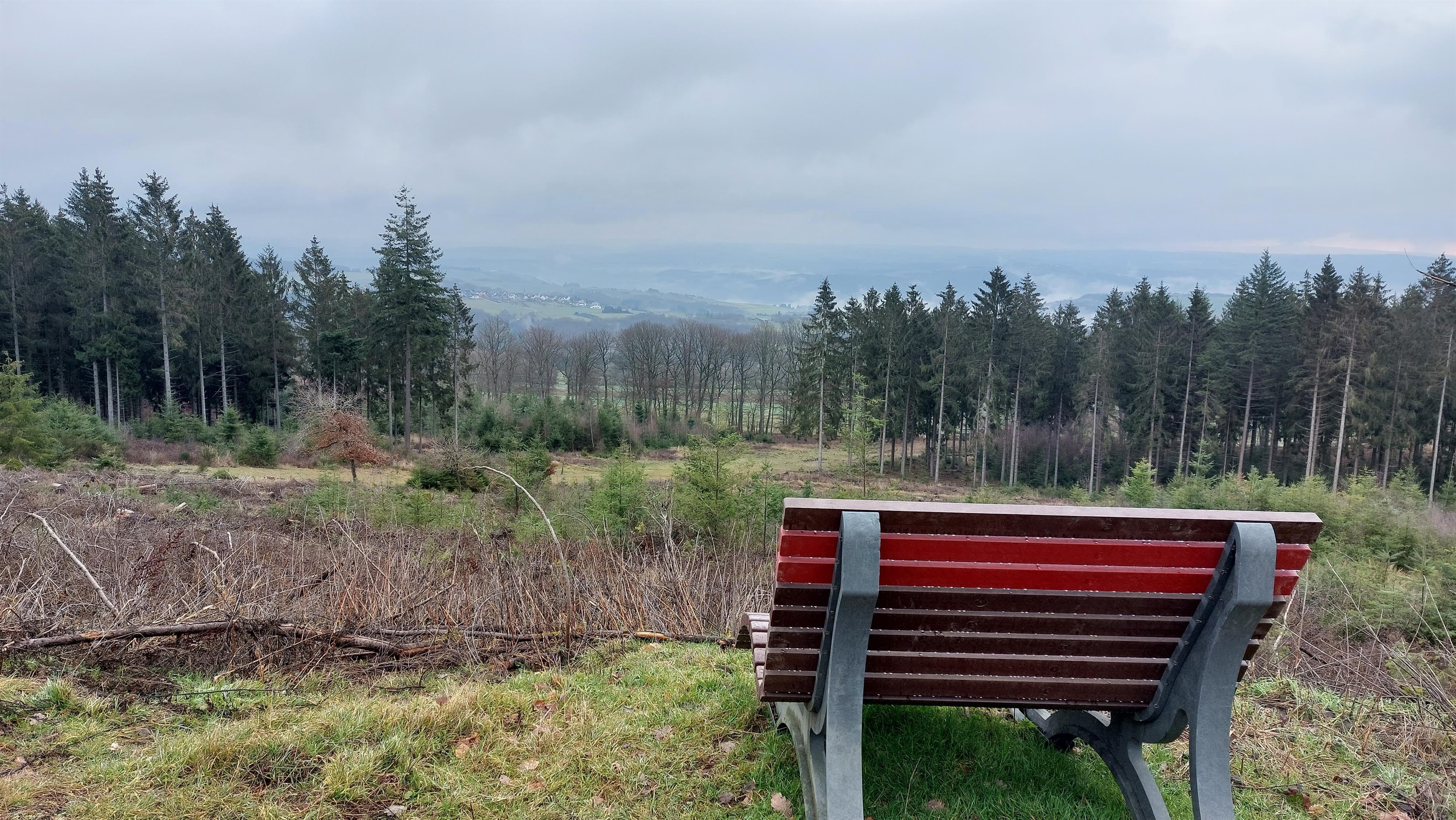 Sunbathing bench with a fantastic view of Damscheid, the Middle Rhine Valley and up to the Taunus Heights. Located at the dream loop "Kuckucksnack".