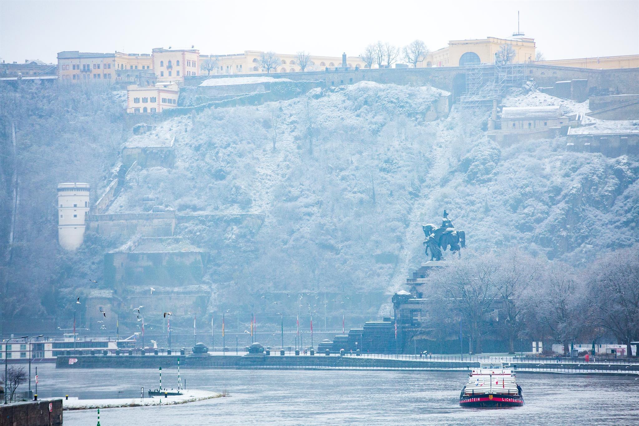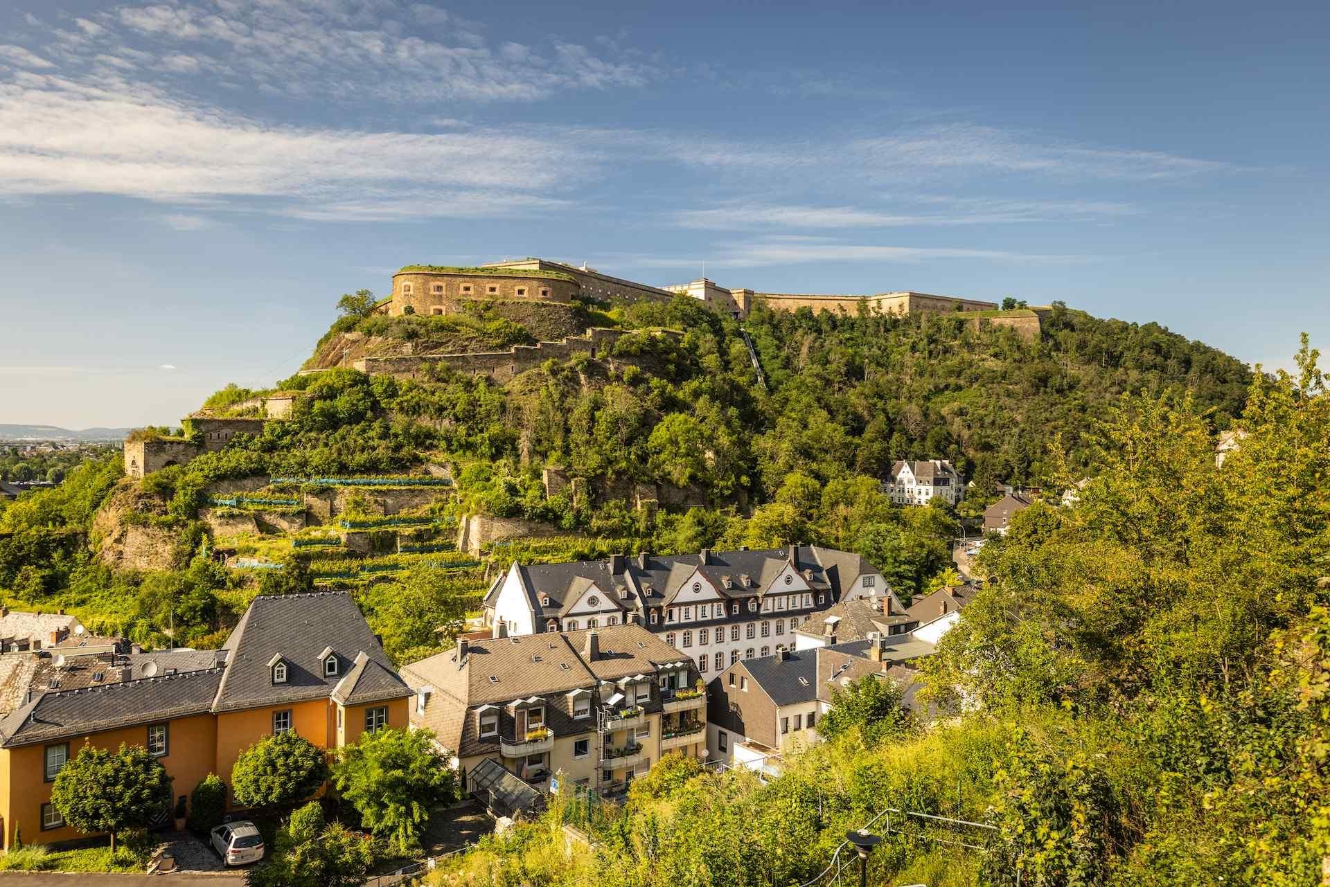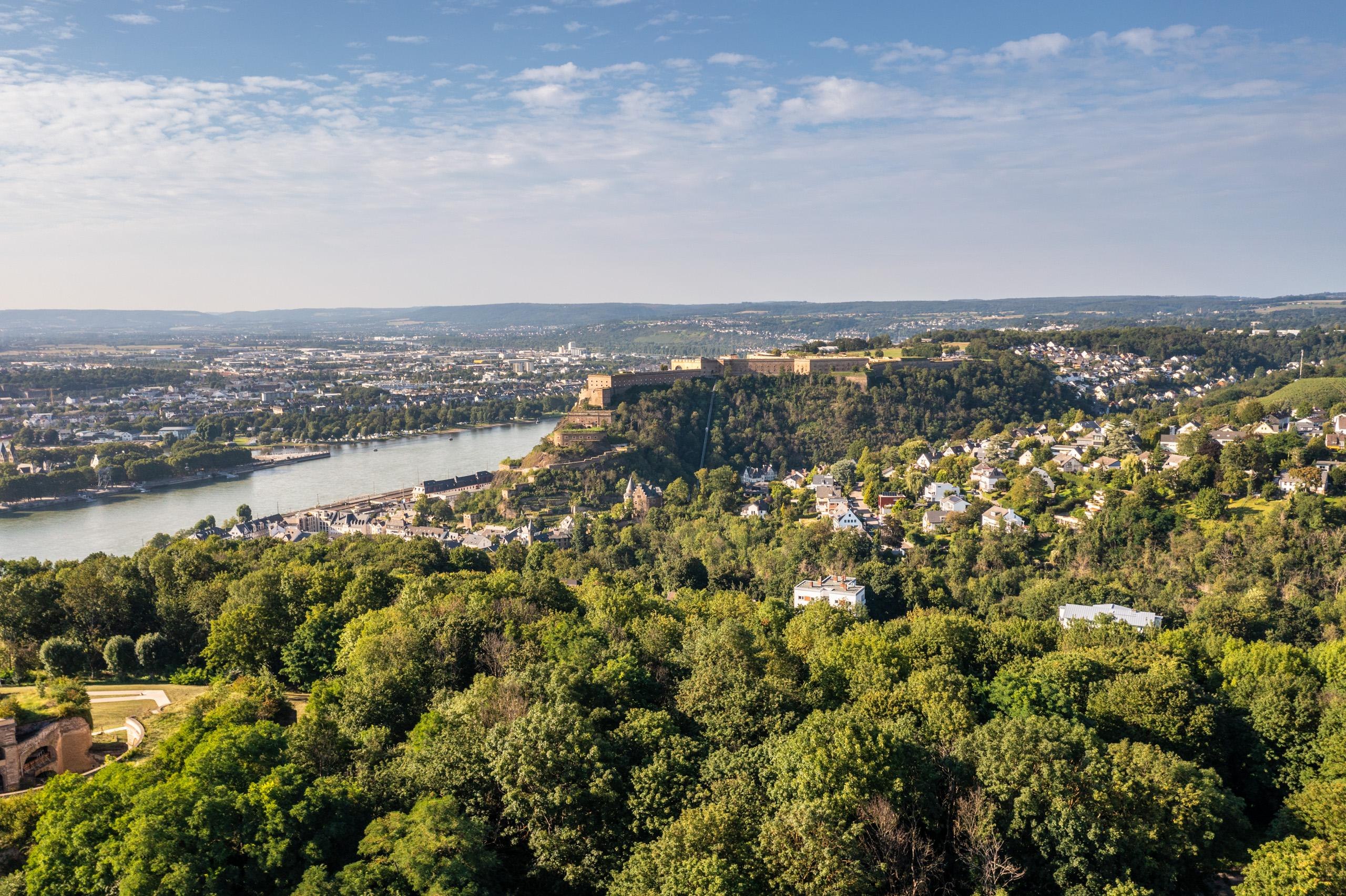 Today, in addition to the Koblenz State Museum with its diverse exhibitions (e.g. on the history of technology and archaeology of the state, on the history of the fortress with over 20 exciting stations, multimedia productions and much more), the fortress also houses the Army Memorial and the Koblenz Youth Hostel. The Conradine Ehrenbert had a castle built around the year 1000, whose name "Ehrenbertstein" became "Ehrenbreitstein" in the course of time. In the 11th century, the castle became the property of Archbishop Poppo of Trier, whose successor enlarged the complex. In the 12th century, Helfenstein Castle was added to the castle hill, the seat of the later counts. In the 15th century, under Archbishop Richard von Greiffenclau, the castle was expanded into a fortress protected against artillery. (Tip: Visit the impressive "Vogel Greif" cannon, the largest in Europe in its time, which still reminds us of this century). During the Thirty Years' War, the castle saw a flurry of changes of ownership. In 1797, French troops laid siege to the fortress, but were only able to force a surrender by starvation in 1799. In 1801 they had the fortress blown up. In 1815, after the Congress of Vienna transferred the Rhenish territories of Kurtrier to the Kingdom of Prussia, King Frederick William III ordered the expansion of Koblenz into a fortress town, creating one of the largest fortifications in Europe. As a highlight, experience the way to Ehrenbreitstein Fortress with the Koblenz cable car. Float over the Rhine and enjoy the fantastic view over the German Corner, Rhine and Moselle before gliding over the impressive fortress walls that nestle against the rock. Plan enough time for your stay. You will certainly want to enjoy the extensive fortress grounds, the various exhibitions, the fortress tours or even a visit to the restaurant at your leisure.