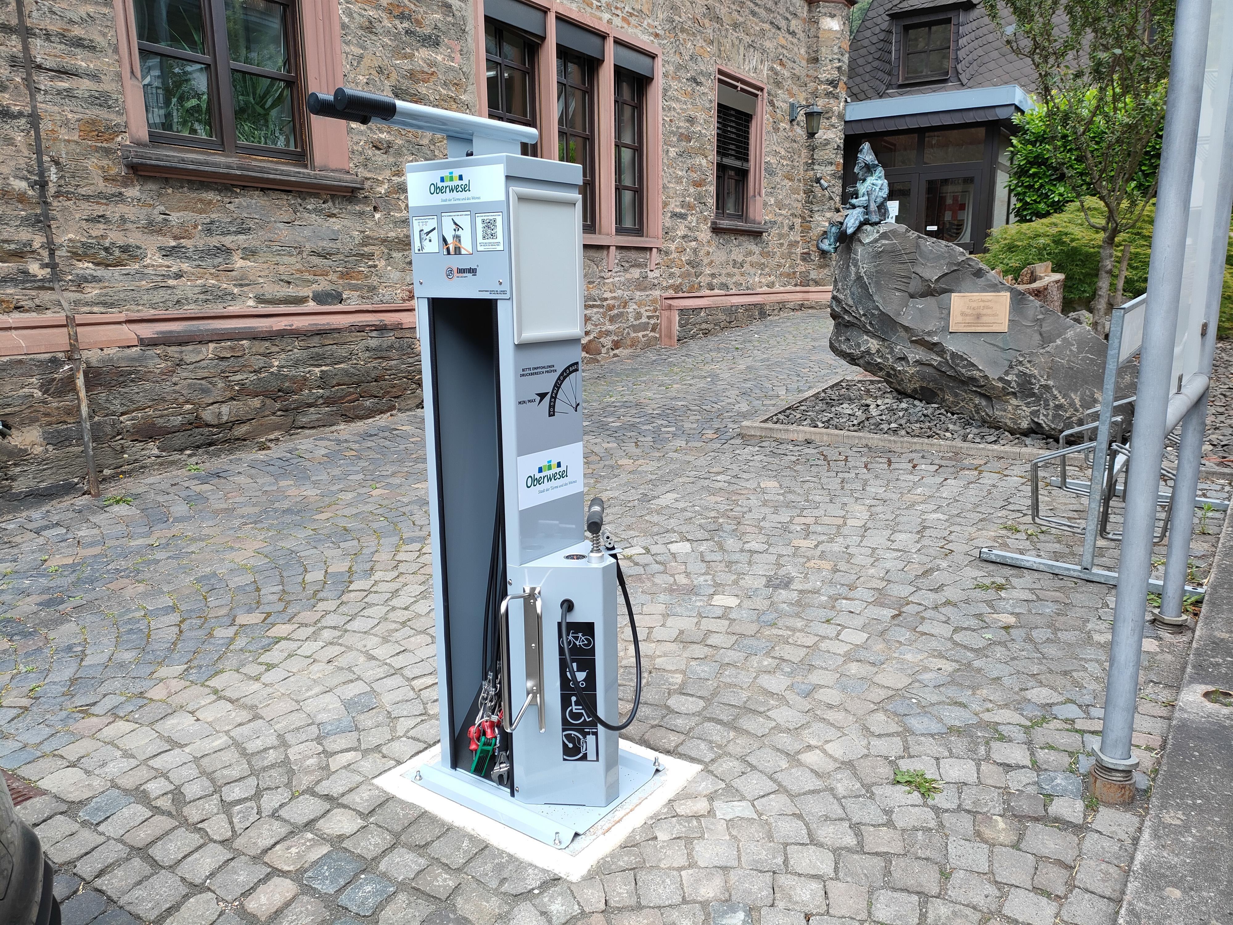 As a special service for cyclists, the town of Oberwesel offers a bicycle repair station. Centrally located next to the town hall in Oberwesel and close to the Rhine cycle path, minor repairs can be carried out easily and free of charge. Various air pumps, screwdrivers and other tools are available at the practical column.
