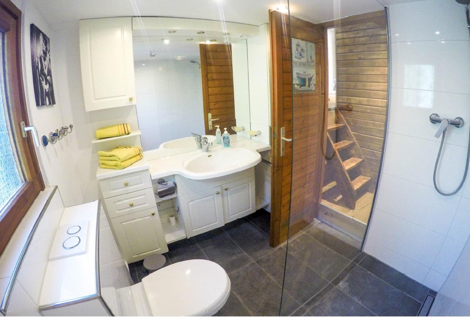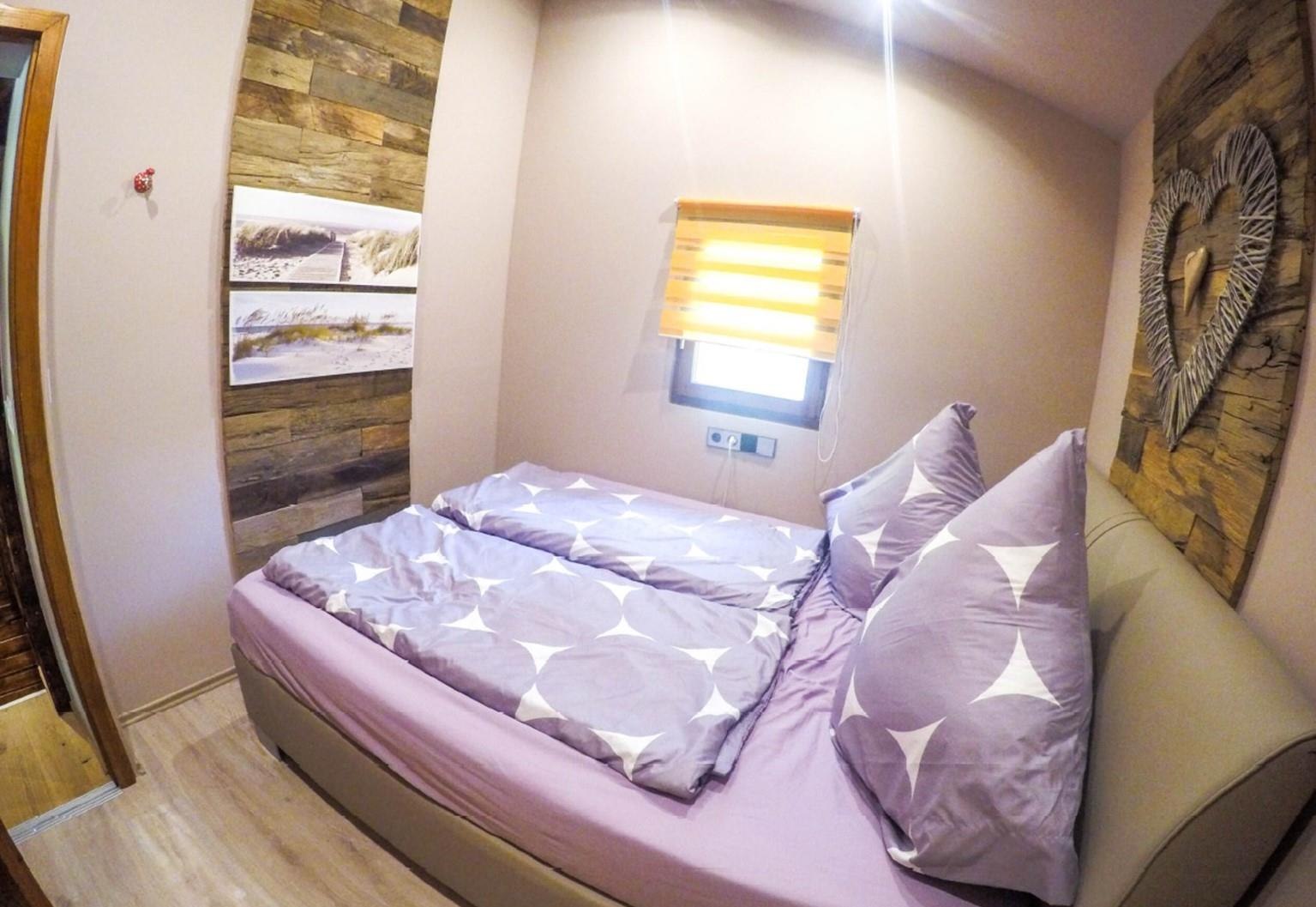 Note: The house is not wheelchair accessible. The style of the log cabin is reminiscent of a hunting lodge, and to access the bathroom or the single beds, there are steep stairs, designed like a ship.