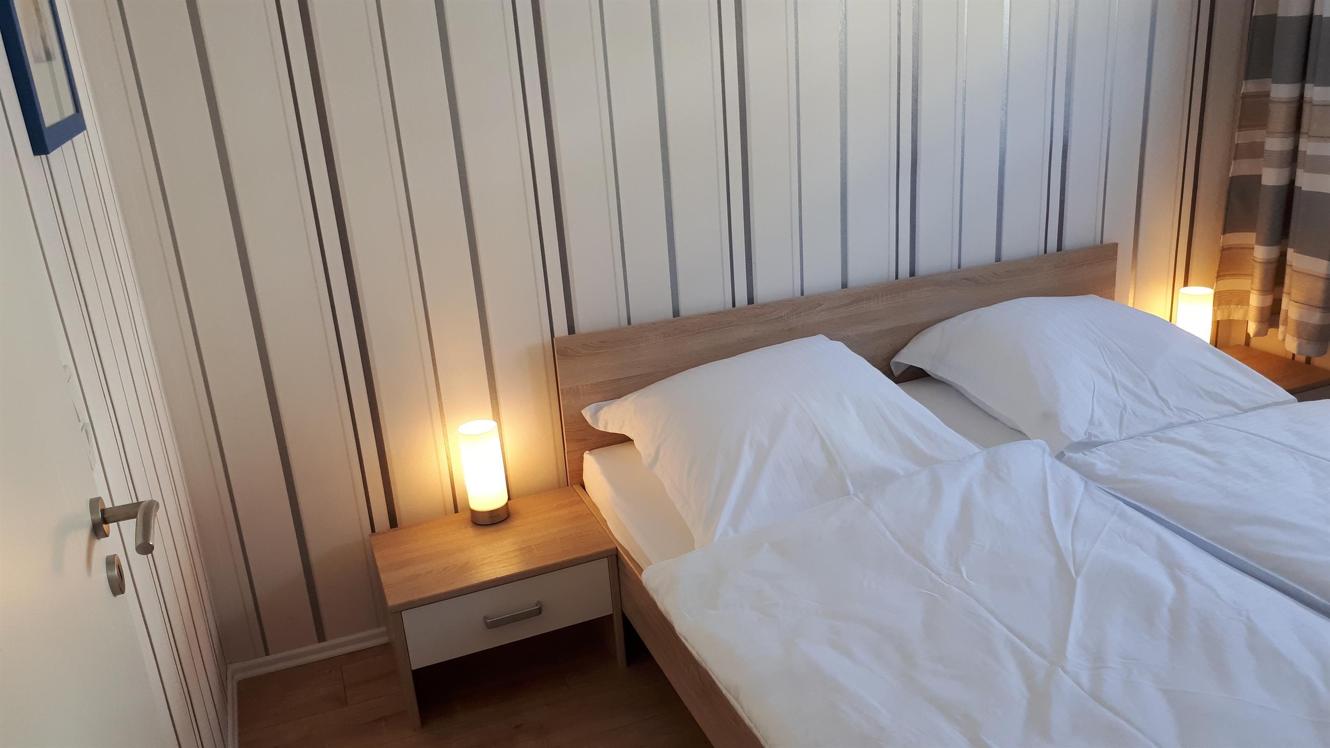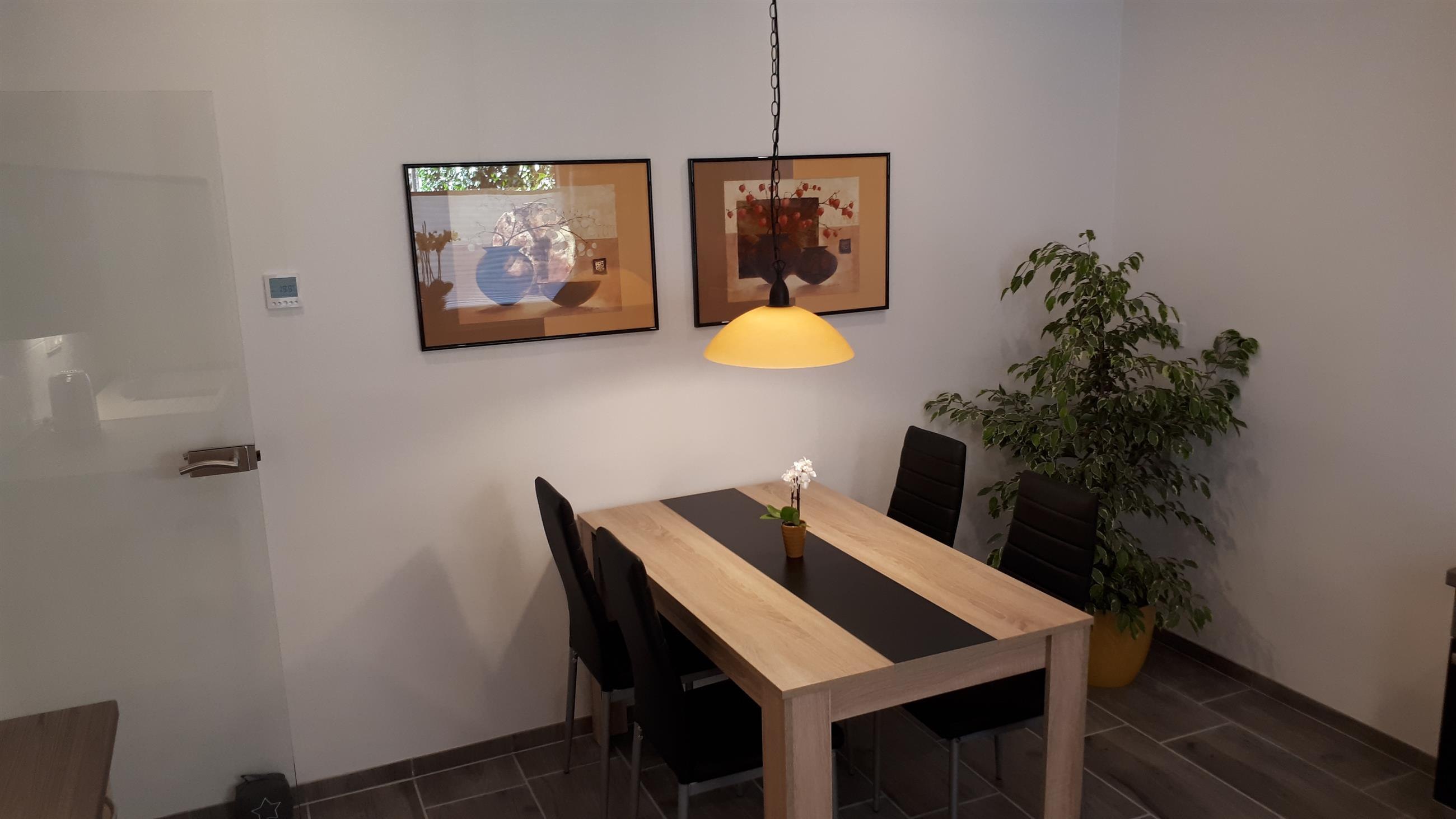 Our new, modernly furnished holiday apartment (approx. 50 sqm) is located directly on the ground floor and accommodates two people. Parking is available in front of the house. The apartment was completely renovated and furnished in 2020. It features a large kitchen with a dishwasher and dining area, a cozy bathroom with a shower, a modern bedroom, and an inviting living room with a comfortable sofa and a large flat-screen TV. Bicycles can be securely stored indoors. Nearby, there are restaurants and shops for daily needs.