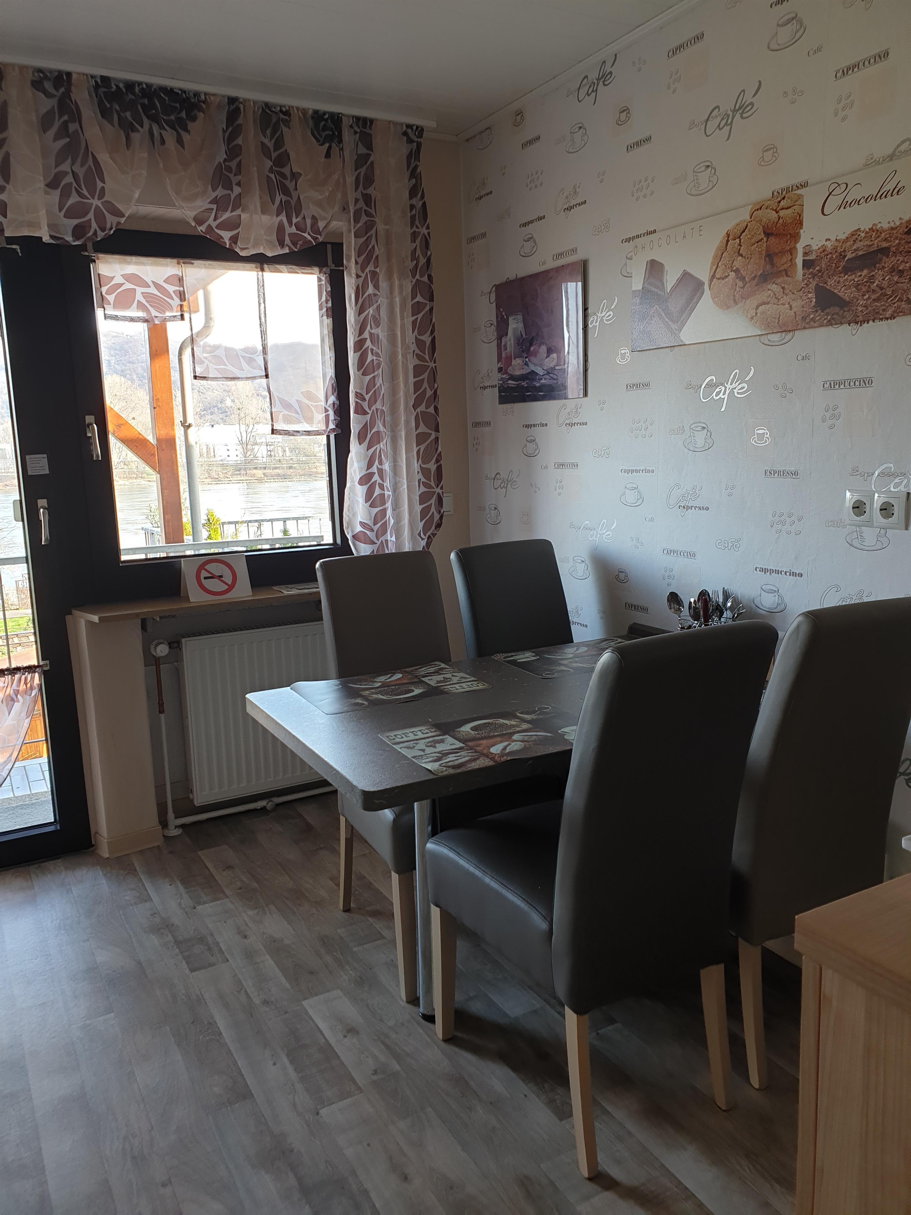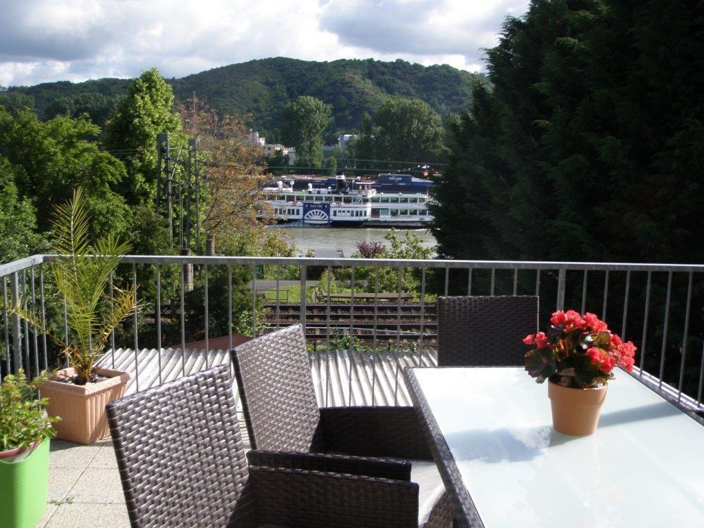 Beautiful, spacious, and cozy vacation apartment, centrally located in the UNESCO World Heritage Upper Middle Rhine Valley, right by the Rhine with a large Rhine terrace and high-quality furnishings. Enjoy the direct view of the Rhine from the spacious Rhine terrace or the shared garden, equipped with seating and sun loungers. The apartment is located on the ground floor of our house, is 98 m² in size, and is divided into a generous living room with dining area, kitchen with access to the balcony, two bedrooms, and a bathroom. It is suitable for four adults or two adults and children. The apartment is not barrier-free! The small town of Rhens offers bakeries, restaurants, and shopping opportunities. Numerous hiking and cycling paths start in the immediate vicinity of the vacation apartment. You can also reach a boat dock within a 10-minute walk.