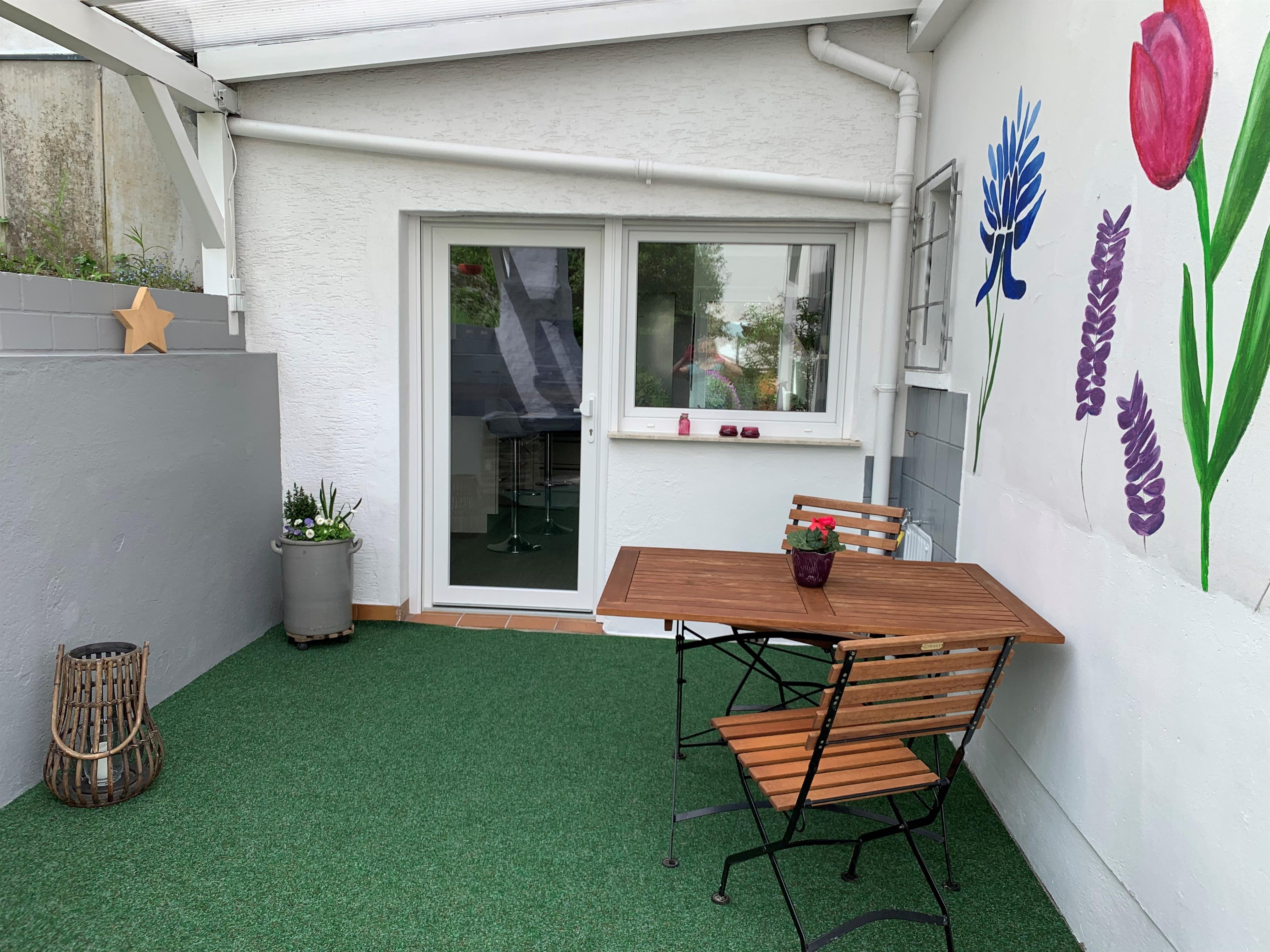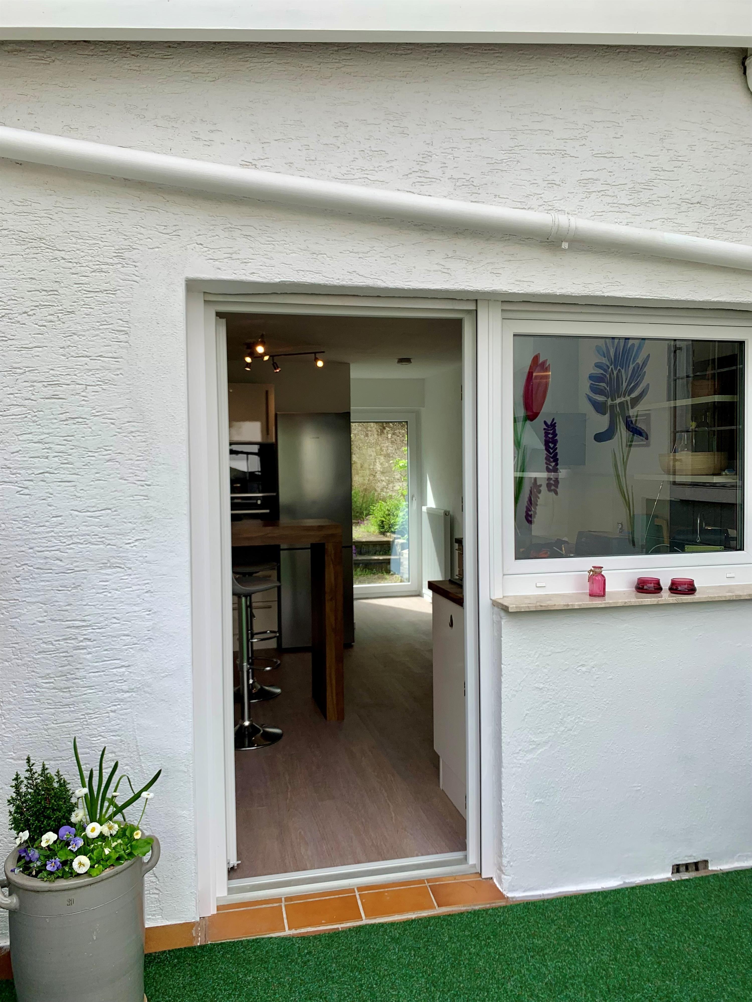 The holiday apartment is on the ground floor and has a sunny, covered terrace.
