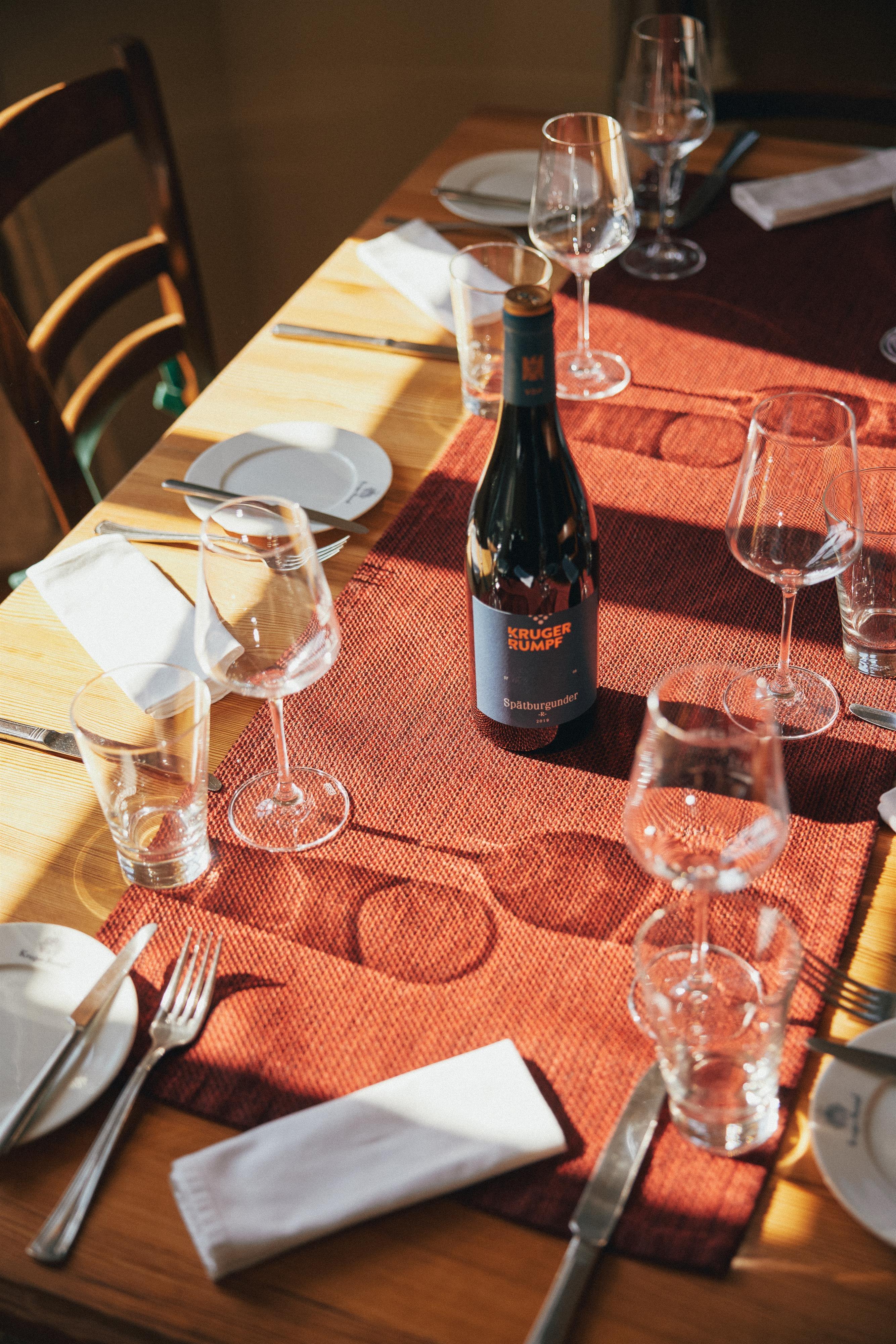 There are overnight accommodations directly opposite our winery and wine bar. Ideal if you don't want to drive home after a wine tasting, an event in our winery or a delicious meal in our wine bar. We offer 2 guest rooms and a holiday apartment, which we are also happy to rent out as guest rooms. Look forward to a relaxing stay with us and take the opportunity to explore the beautiful surroundings. A walk through the vineyards and along the banks of the Nahe, a stroll through Bingen and the parks of the former state horticultural show, a romantic trip on the ferry across the Rhine... what could be nicer than a pleasant start to the day. Wine bar We combine the cozy atmosphere of our family-run wine bar in the winery with fine, upscale cuisine. Our regional dishes and local dishes made from fresh ingredients harmonize with our wines. We do not claim to be a star restaurant, but we do want to do justice to gourmets and connoisseurs. “Der Feinschmecker” counts our wine bar among “the 300 best inns in the country”. winery Viticulture has been a tradition in our family since 1708. A tradition that we lovingly maintain in our manor house, built in 1830, and in the vineyards. We have valued and respected nature for generations because it is where we draw the basis for our daily work. The natural cultivation in the vineyard and the natural vinification give our wines a distinctive character. Our family-run winery is one of the best wine-growing businesses in Germany: The Association of German Prädikat Wineries (VDP) accepted us as a member of the Nahe wine region in 1992. Producing wines of the highest quality has been our goal for generations. VDP