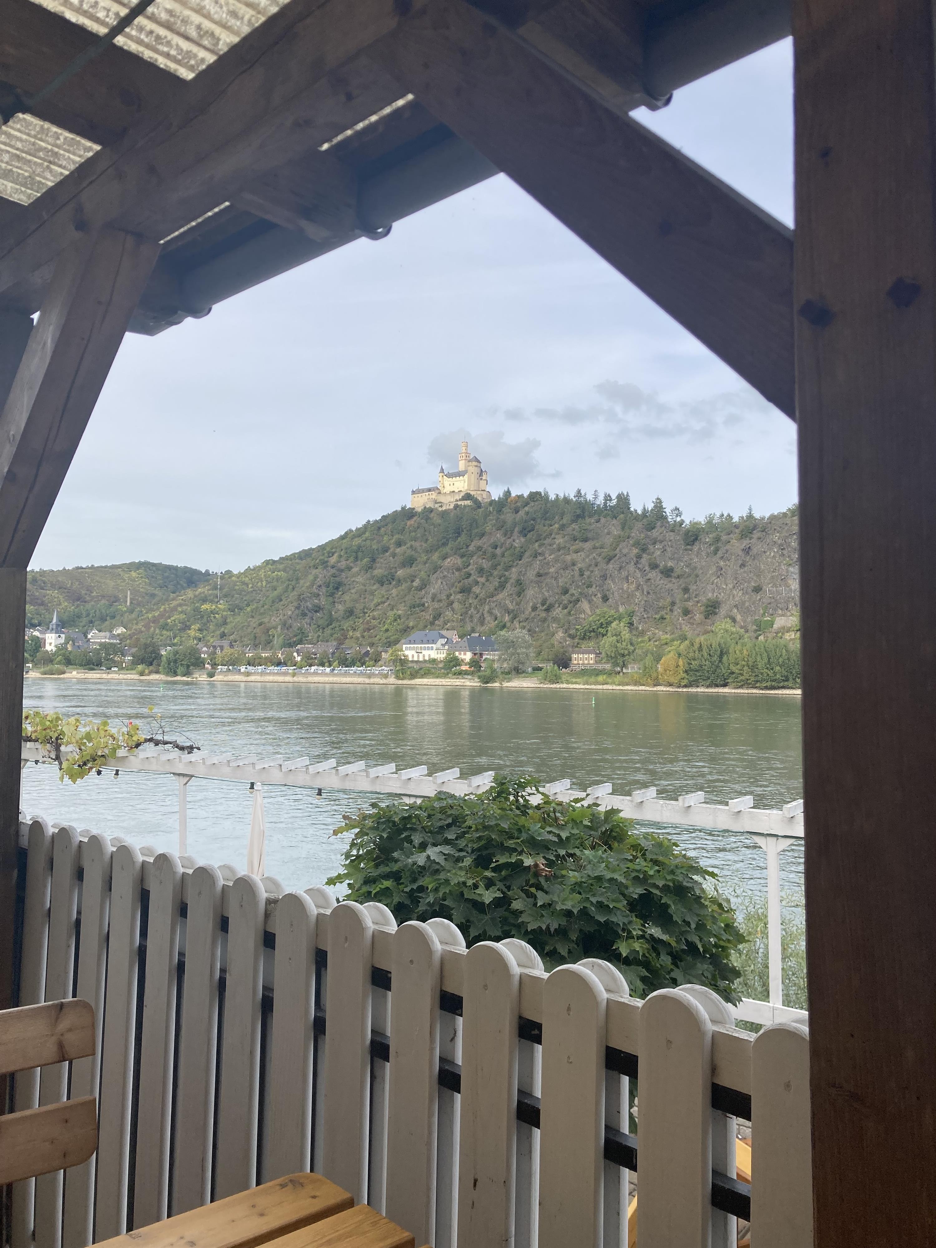 We offer you a unique setting: Our restaurant is located directly on the romantic Rhine with a view of the unique Marksburg Castle! The landscape along the Rhine, whose section from Bingen/Rüdesheim to Koblenz is a UNESCO World Heritage Site, is characterized by an incomparable cultural charm. The multitude of castles, palaces and other medieval buildings fascinates the visitors of our region every year anew. The Marksburg Castle, which you can see from our restaurant, is one of the most famous and most visited sights and is considered the best preserved fortress on the Rhine. You can enjoy this unique ambience not only in our restaurant, but also in our beer garden in good weather. In addition to the special location, we will spoil you with delicious food and a wide selection of drinks, so that you can feel completely comfortable during your stay in our restaurant. We are happy to additionally offer you the possibility to use our hall as a venue for your celebration. Here you can get more information. We are looking forward to your visit!