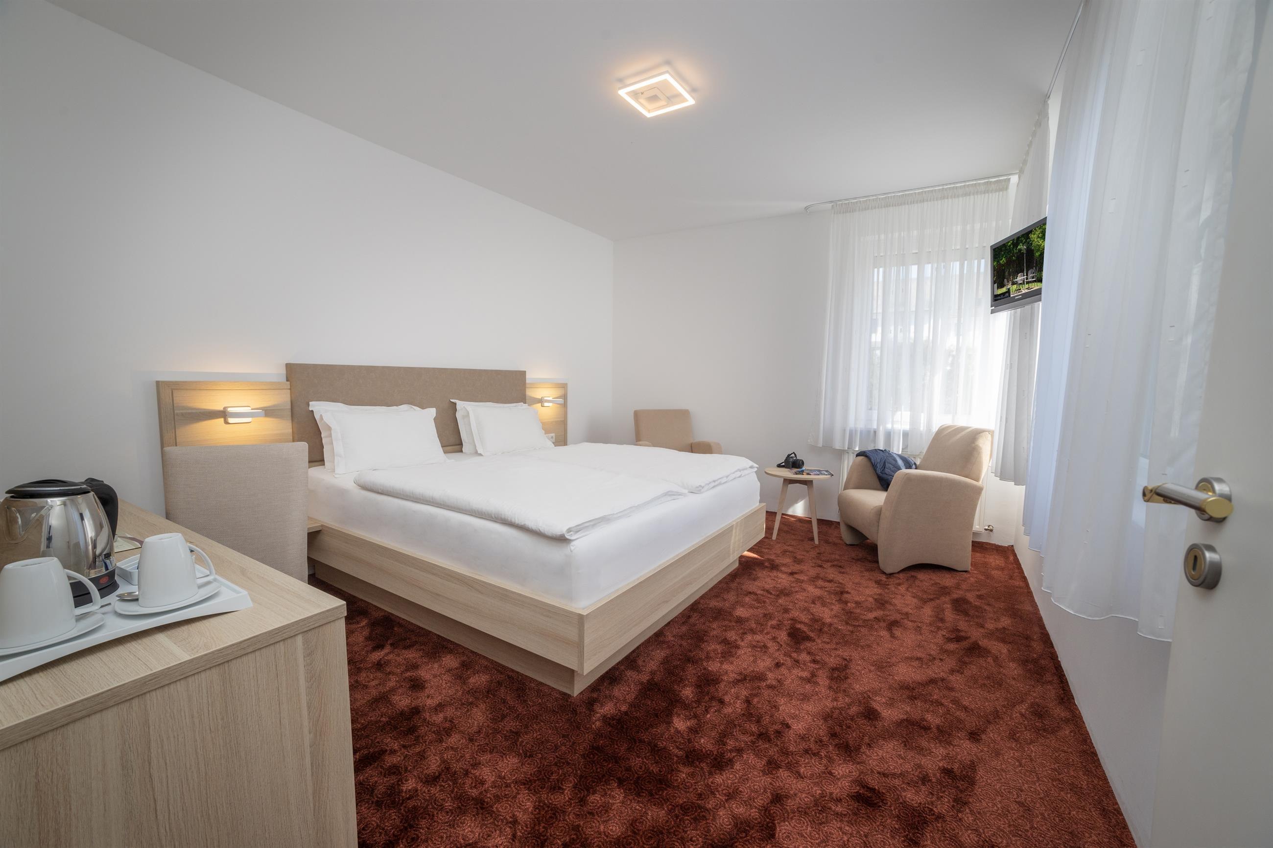 The hotel has around 28 elegantly and classically furnished rooms that are spacious and create a pleasant atmosphere. Amenities include free Wi-Fi, air conditioning, hairdryer, safe, coffee and tea station, and some rooms offer garden or city views. Our hotel is equipped for guests with hearing impairments.