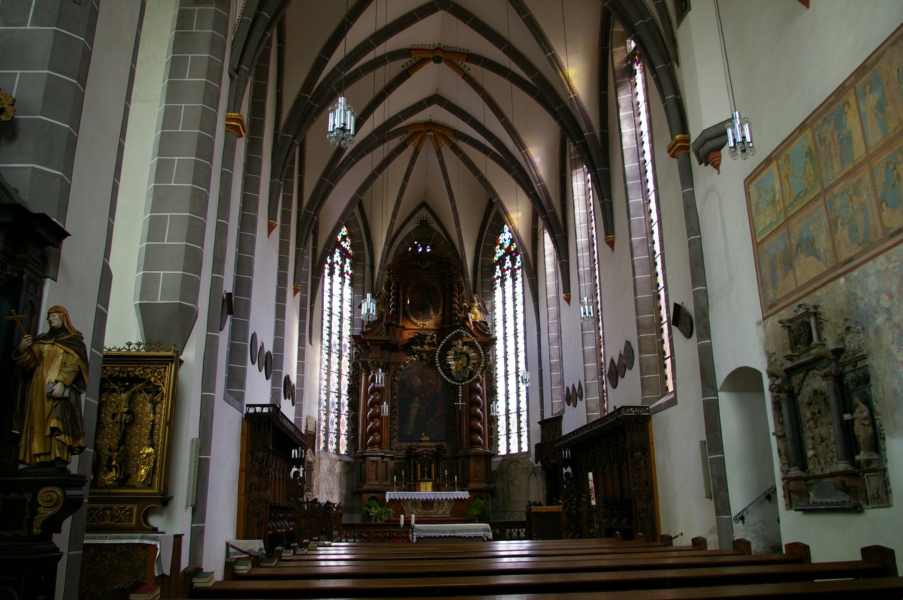 The church of the former Carmelite monastry in Boppard is another of the Middle Rhine´s major 14th century religious architectural monuments. After Cologne (1249) and Würzburg (1250), Boppard was the third oldest of the Camelite Order´s foundations in Germany. Apart from its interesting architectural structure, the church´s carved, late Gothic choir stalls, the stone pulpit from 1460 and an elegant threeseater from 1470/80 are particularly worth seeing.