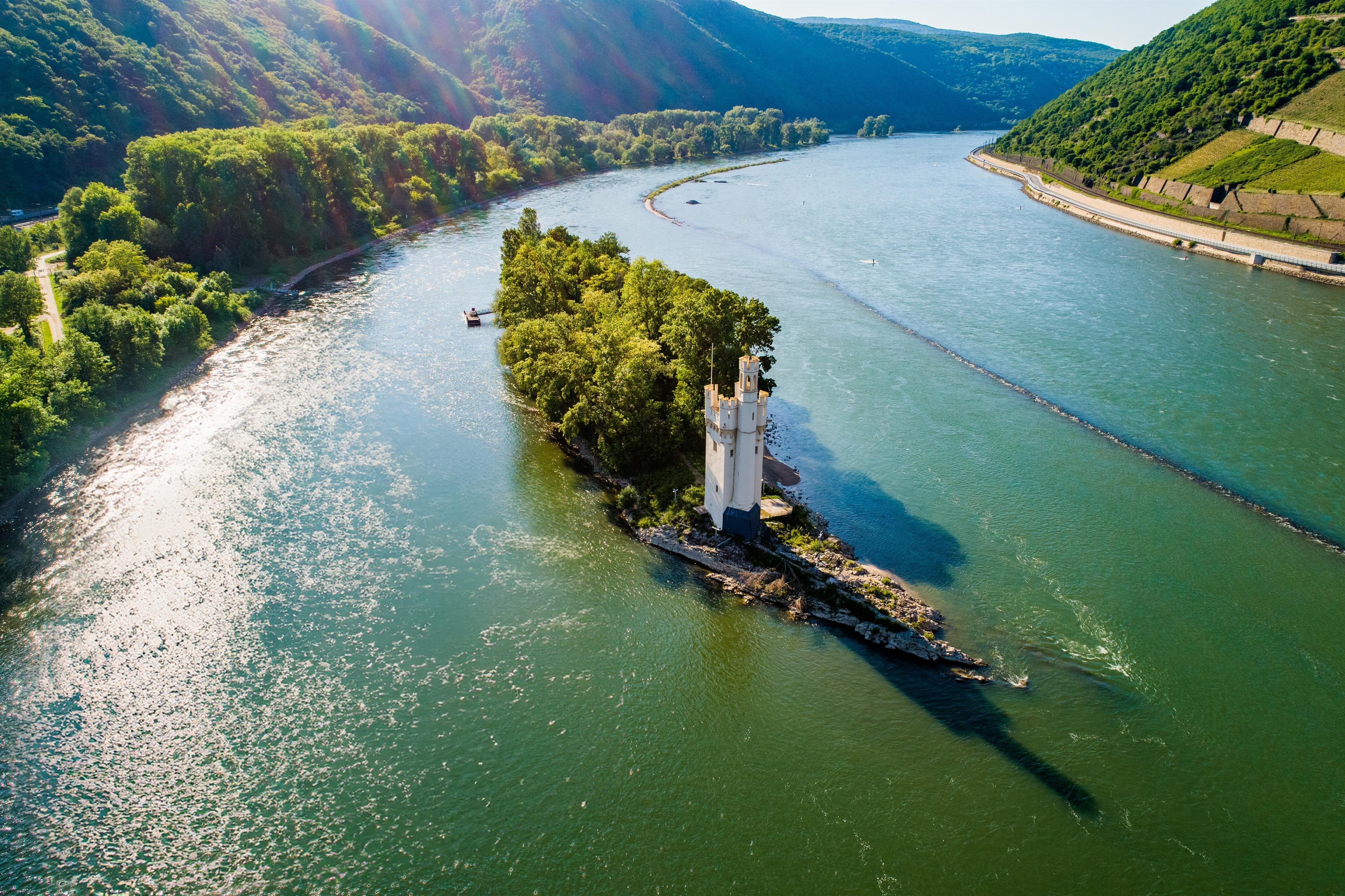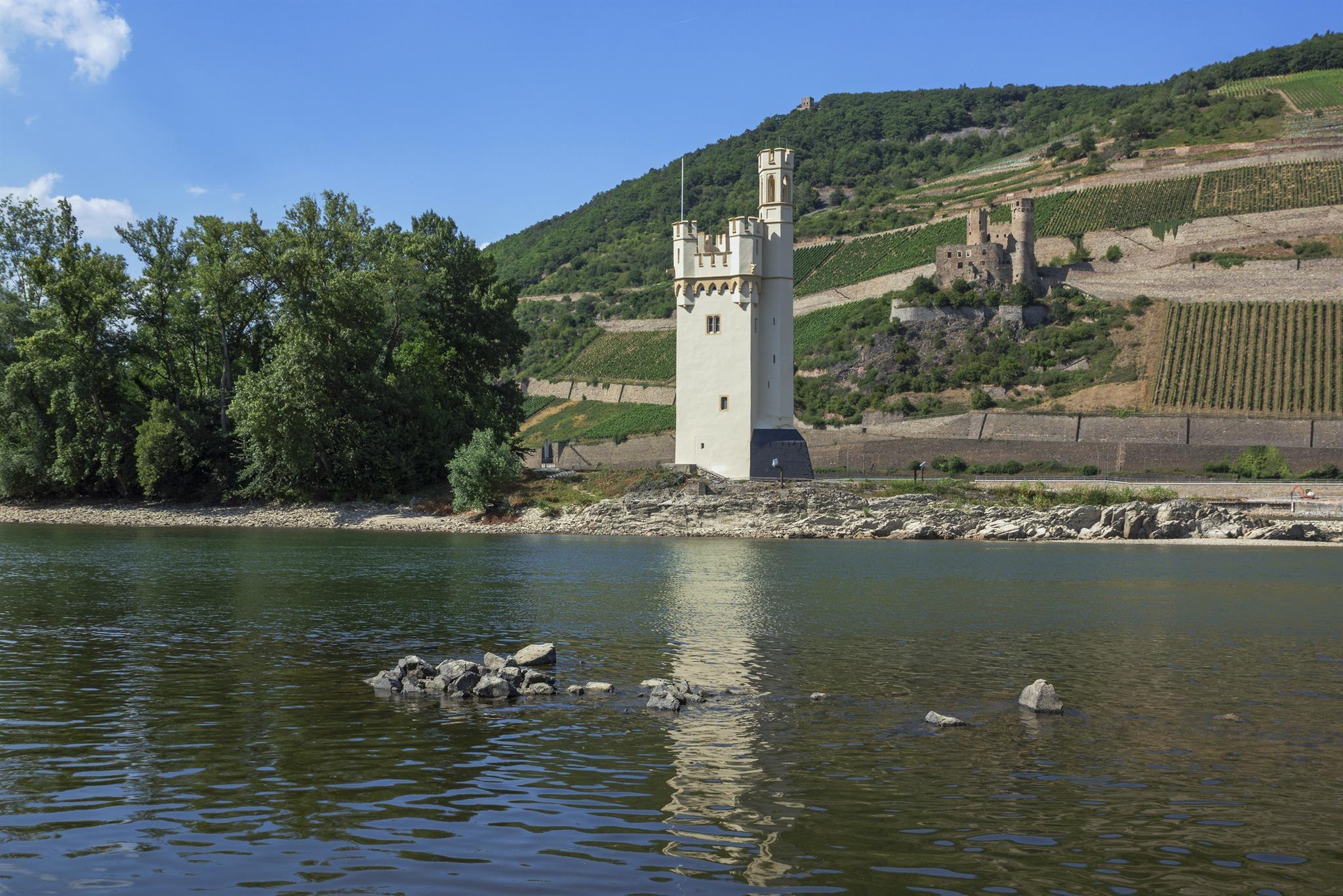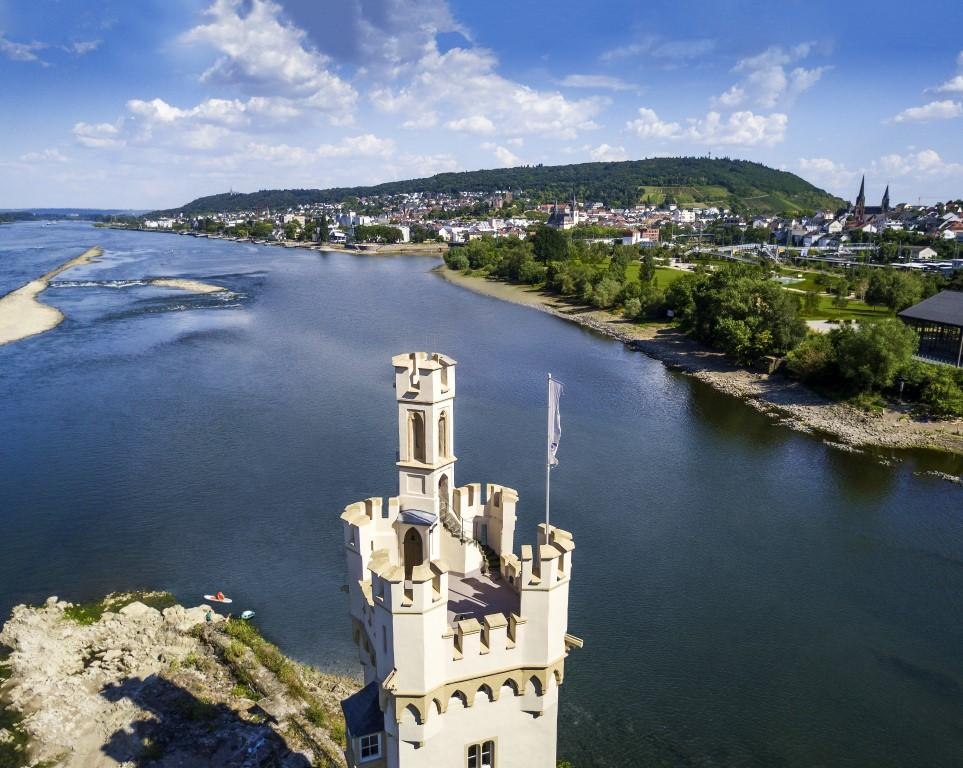 Mäuseturm (Mouse Tower) The Mouse Tower in Binger Loch is located on an inaccessible island and is, next to Pfalzgrafenstein Castle, the only defence tower and watch tower in the middle of the Rhine. Together with Ehrenfels Castle, the Tower forms an ensemble of customs buildings. According to legend, its builder, the Archbishop of Mainz, Hatto I, is said to have denied the poor access to his granaries, burned them in the barn and scorned them as “corn mice” - whereupon he was eaten alive by thousands of mice. The Mouse Tower was indeed constructed by the Archbishops of Mainz, however only between 1298 and 1371. Today’s building in Neo-Gothic style stems from the 19th century. The former grounds of the Landesgartenschau (Federal Garden Show) with a view on the Mouse Tower transformed the Rhine bank to a cultural bank - backdrop, meeting place, playground, open-air stage, park, museum, gallery and site for wine-tasting, all in one. Mäuseturm 55411 Bingen Tel. 06721 - 184205-206 www.bingen.de