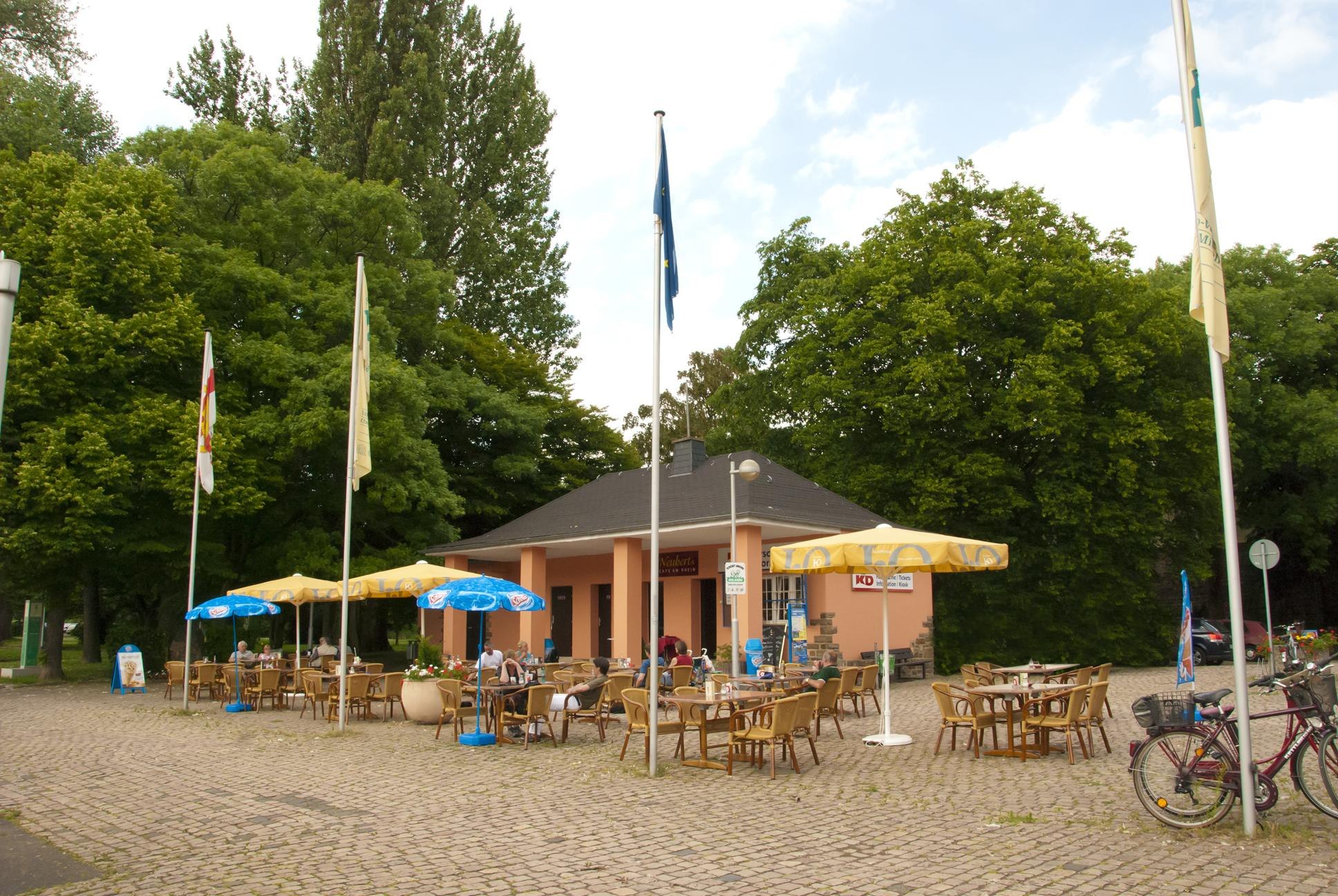 Located directly on the banks of the Rhine, Neuberts Café am Rhein is found amidst the Oberlahnstein Rhine parks. Enjoy a rich selection of wines, drinks, coffee specialties, fresh cakes, pastries, and snacks while overlooking the Rhine and Schloss Stolzenfels.