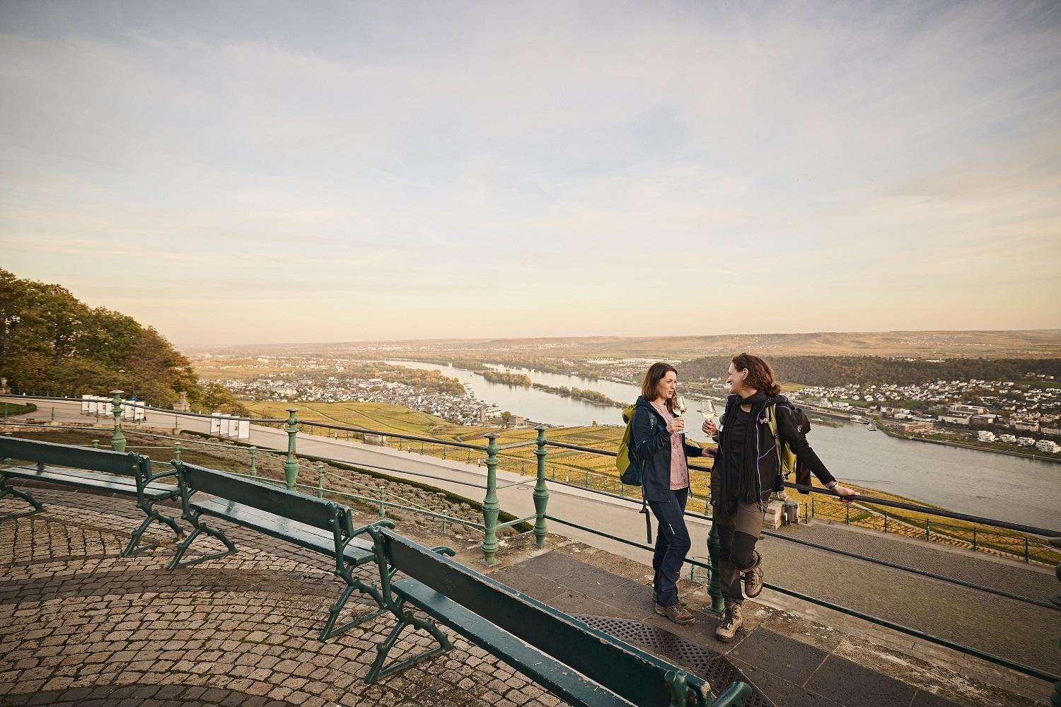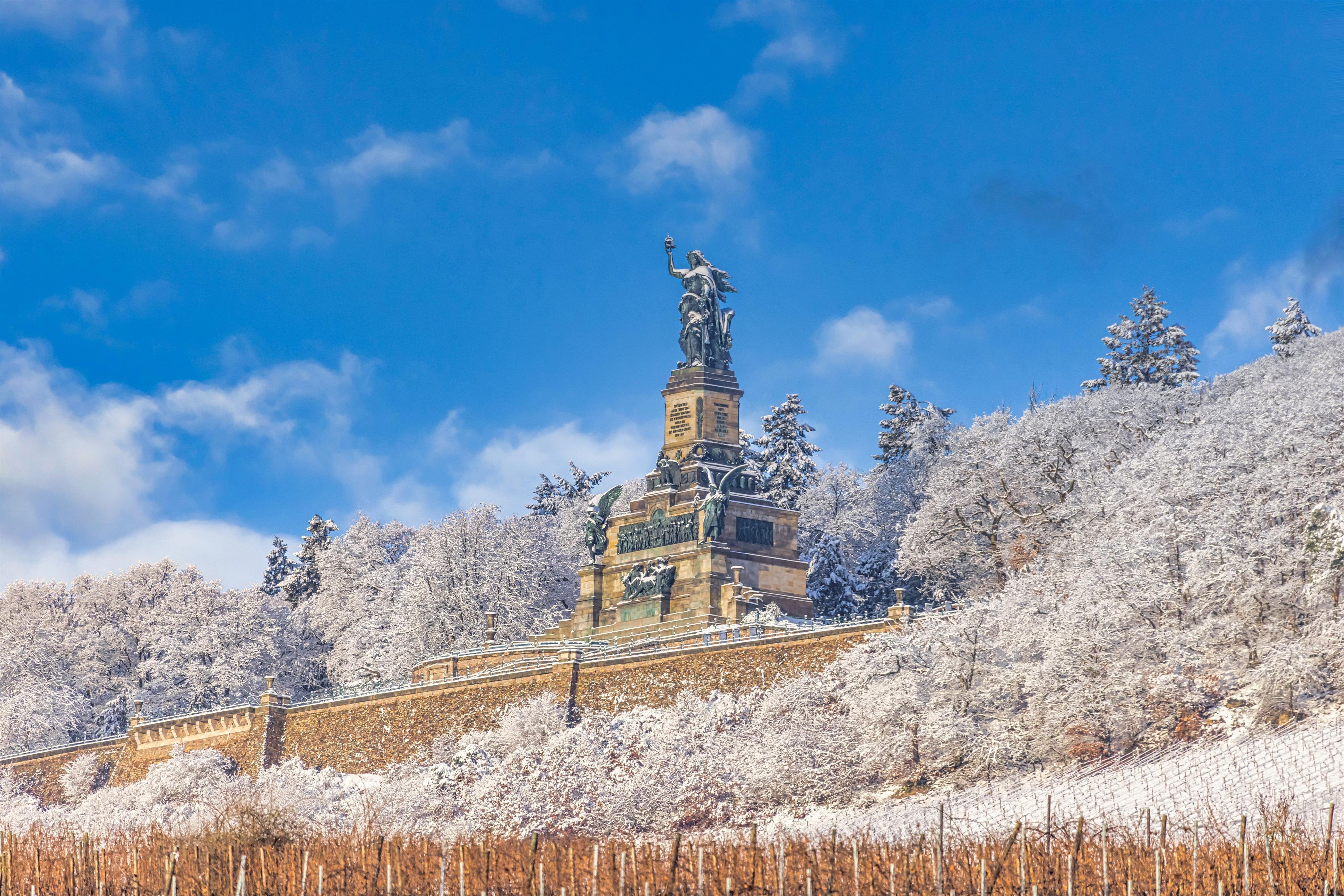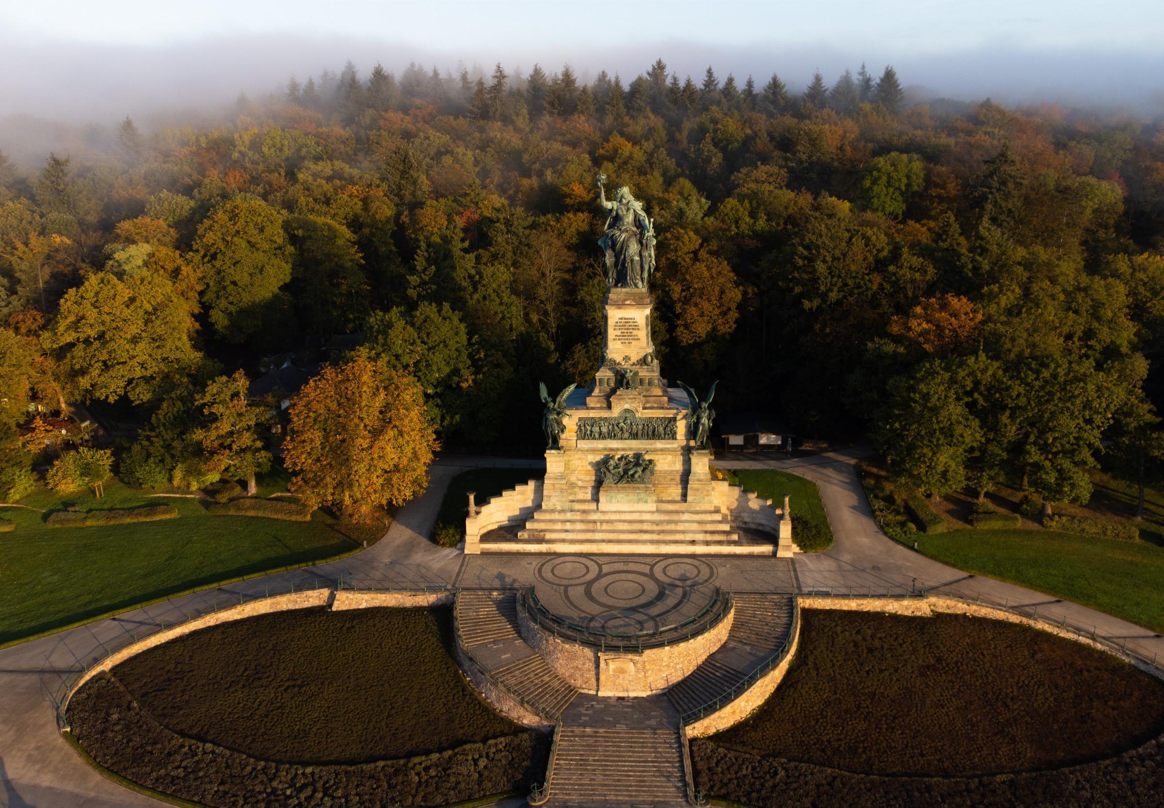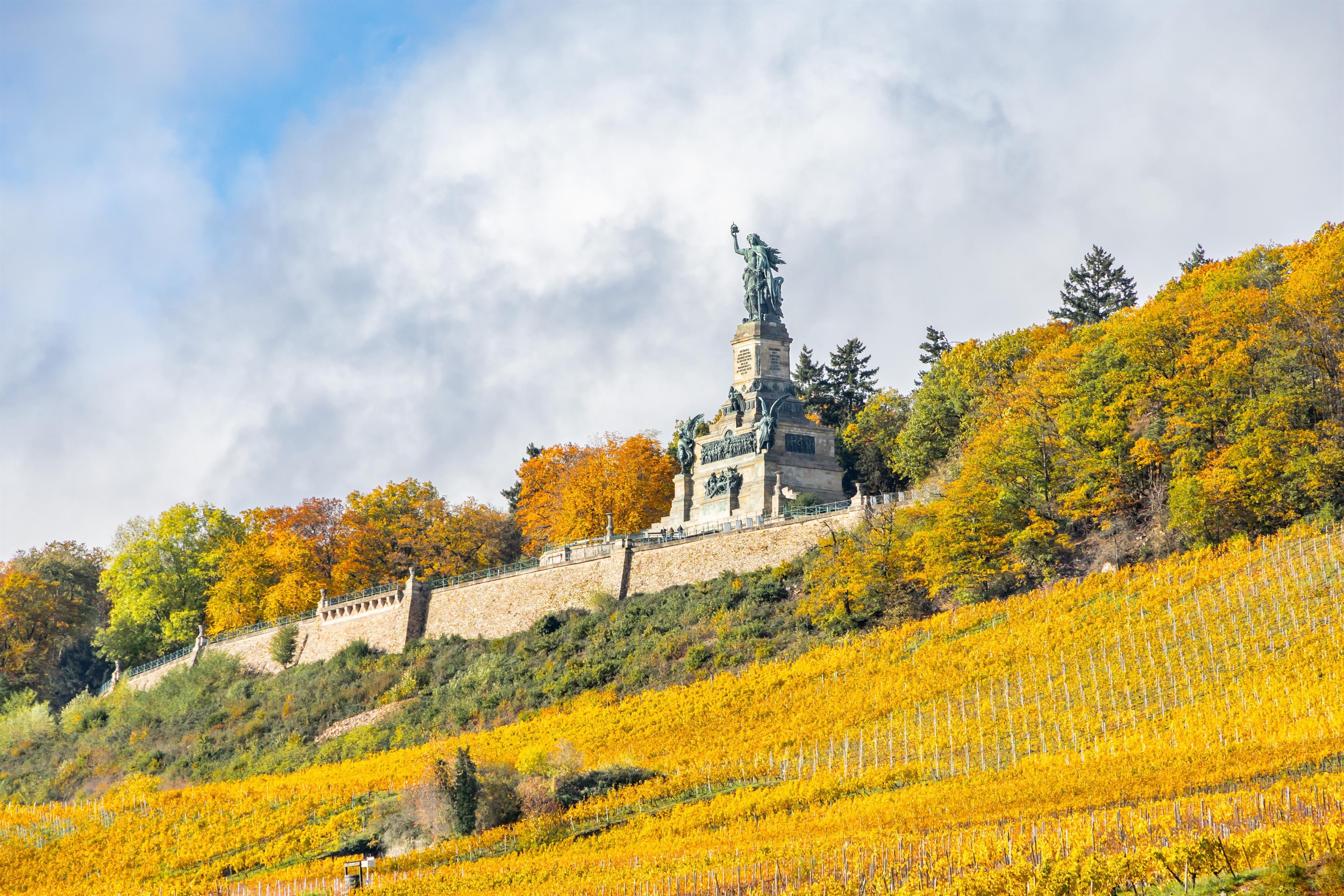 The Niederwalddenkmal, built between 1877 and 1883 according to plans by the Dresdner Johann Schilling, measures 38 meters. The construction and its dimensions are still impressive today, even though the reason for its construction – the foundation of the German Empire after the victory in the Franco-Prussian War of 1870/71 – is obviously outdated in a united Europe. The monument is topped by the 12-meter-high figure of Germania, complete with an imperial crown and the imperial sword. It is easily accessible by a cable car or chairlift from Rüdesheim am Rhein and Assmannshausen. The panoramic view extending far into the Rhine Valley provides a spectacular backdrop for selfies.