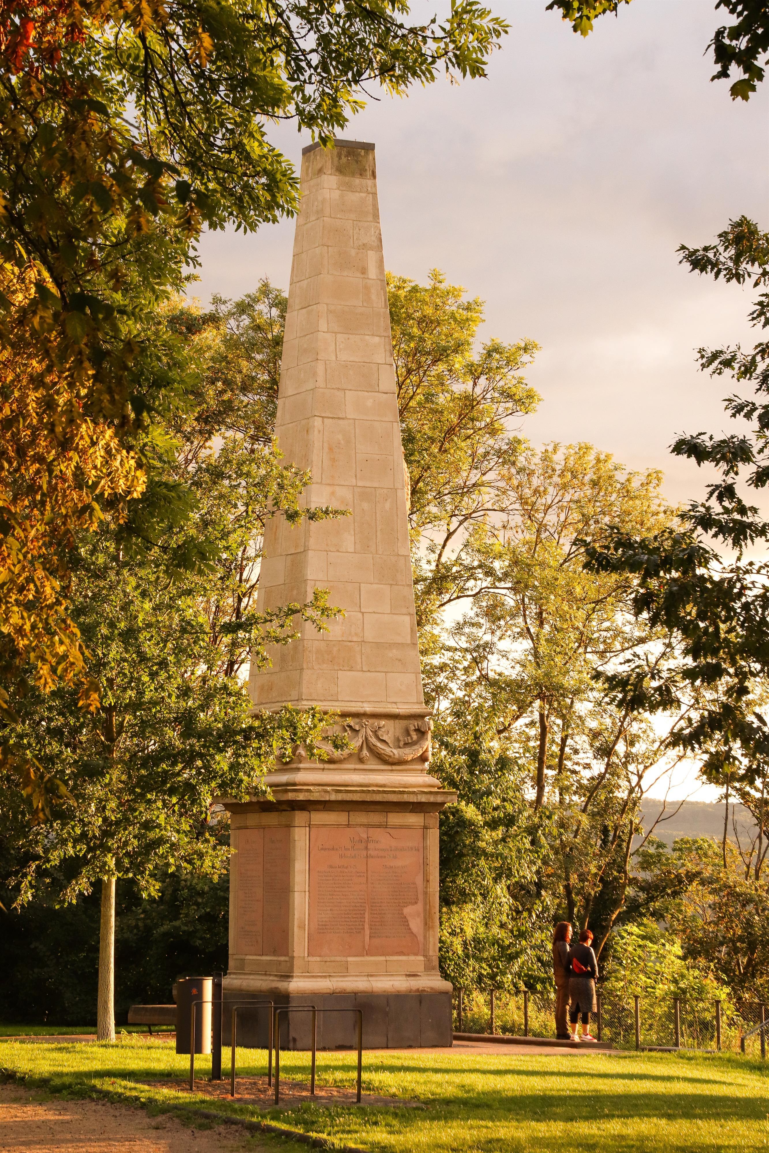 The obelisk, visible from afar on the left and right sides of the Rhine, was built 200 metres away from Fort Asterstein. The inscription on the base, carved in sandstone, reads: "To the comrades who fell gloriously for King and Fatherland in the campaign of 1866, erected in honourable memory by the officers of the Royal Prussian VIII Army Corps". VIII Army Corps". Today, the area near the cemetery is part of a new fortress park around Fort Asterstein and a great vantage point with a unique view of Koblenz.