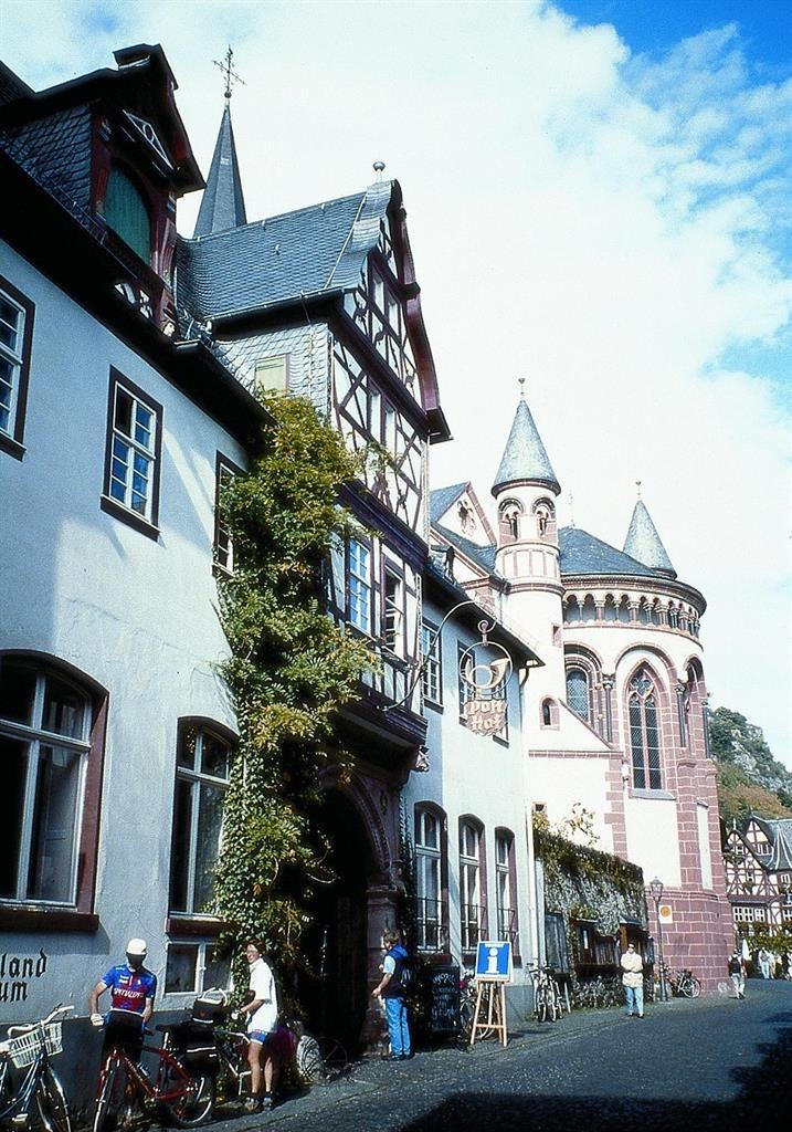 The building, now known as the Posthof, was built in the 16th century. The Posthof is made up of different parts of the building. The elongated street side is striking, which is divided by two oriels and a mighty gate passage. Through this passageway one gets to the inner courtyard, which is surrounded by several parts of the building. Through the former remise, which today accommodates a restaurant, one gets to the Winand tower. This tower was built by Winand Ort, a church owner born in 1371 in Steeg. Winand Ort (also known as Winand von Steeg) was parish priest in Bacharach from 1421 to 1438. It is also thanks to him that the Werner Chapel was completed after decades of construction work had been halted. Particularly noteworthy in the Winand Tower are the 15th-century wall paintings inside the tower, which are still clearly visible today. Equally remarkable is the wooden spiral staircase mounted in an open corner of the building. After the Posthof had been temporarily owned by the Electoral Palatinate, the building's postal history began in 1724 with the establishment of a Thurn- und Taxis postal administration. The Bacharach post office was still located here until 1987. Life was already pulsating in the Posthof, the heart of Bacharach, in the 19th century. The European aristocracy had a rendezvous here.