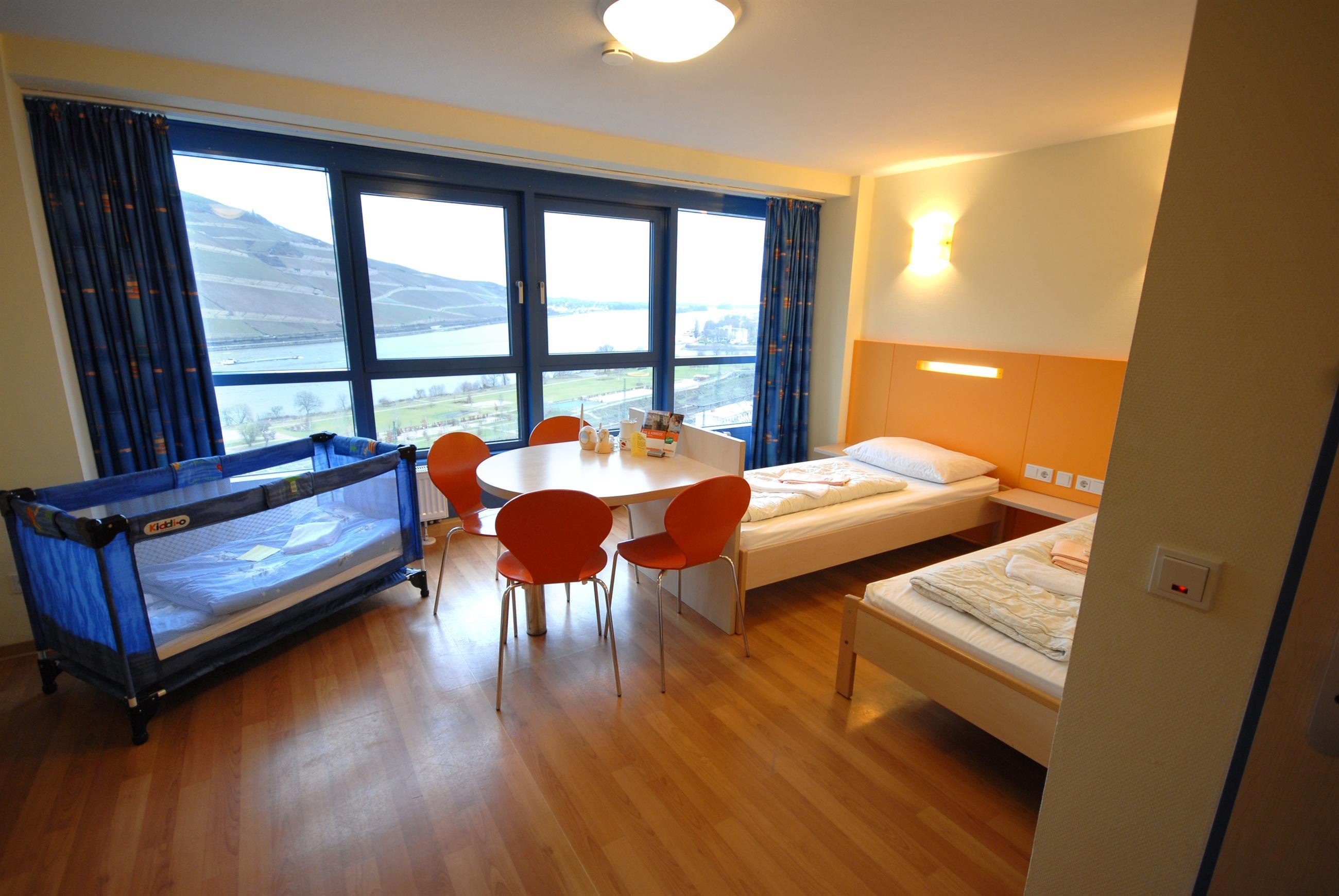 The modern Rhine-Nahe Youth Hostel Bingen with a magnificent view of the Rhine Valley is conveniently located near the recreational area and local recreation area "Park am Mäuseturm." In the heart of the UNESCO World Heritage Site Upper Middle Rhine Valley lies the city of Bingen with the Klopp Castle and the famous landmark, the Mäuseturm.
