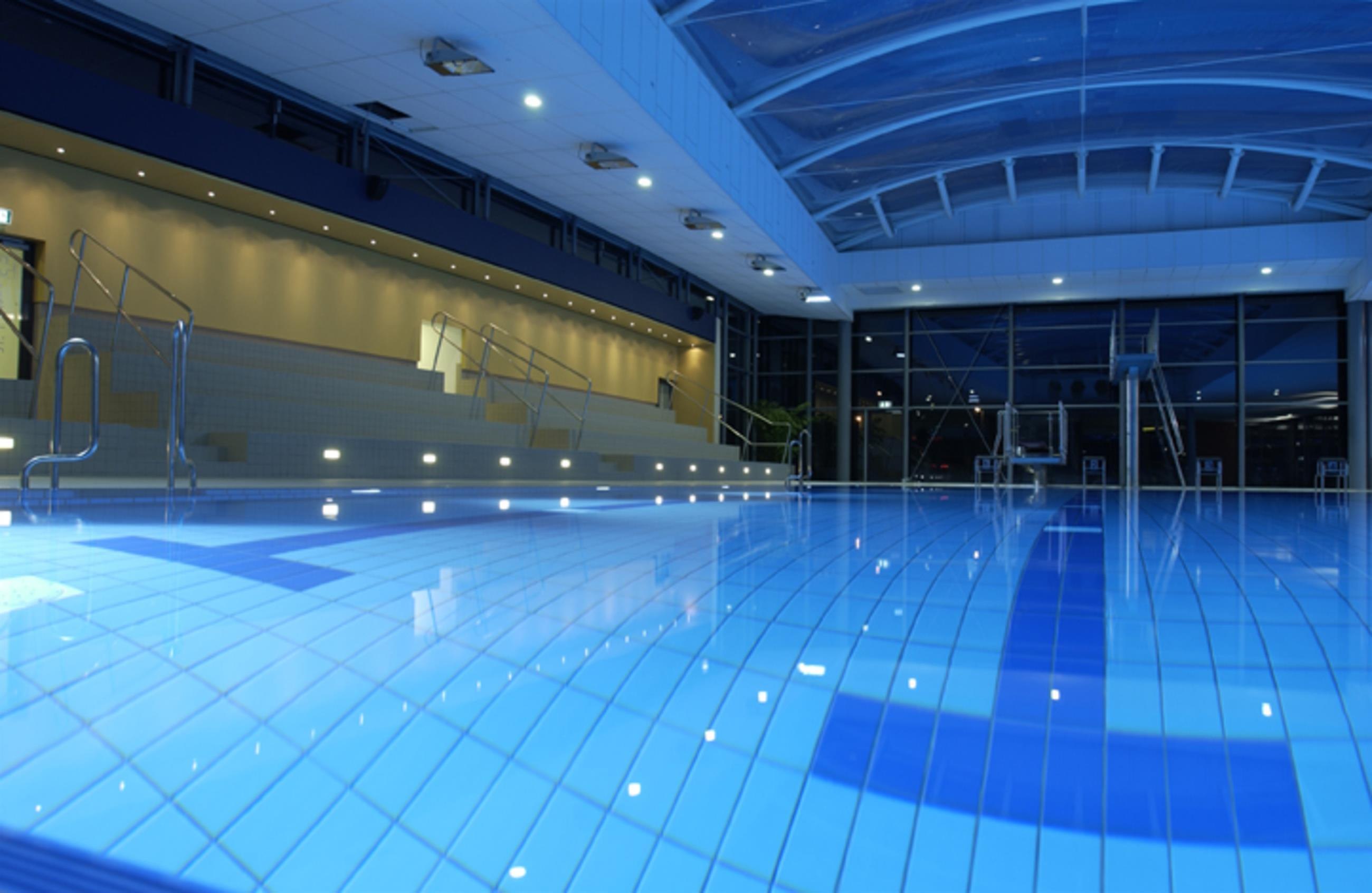 The bathing facilities range from a 25-meter sports swimming pool with one-meter and three-meter diving boards, to a learning pool for beginners, right up to the adventure pool with a current channel and wave ball, a giant water slide, climbing fish, and climbing wall. The very little bathers can have fun in the paddling pool, while those seeking relaxation can unwind in the whirlpool and in the year-round sole outdoor pool.