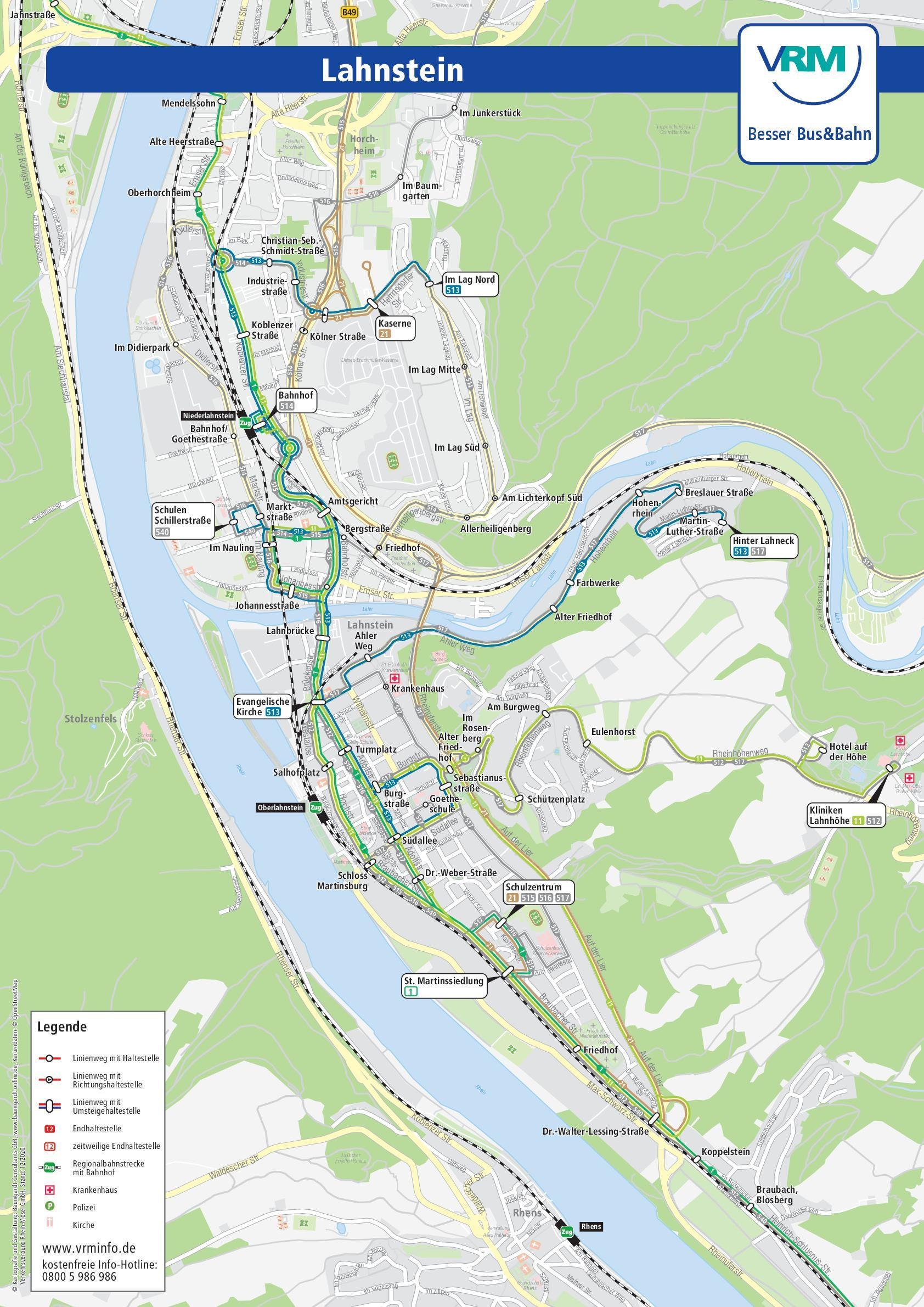 The Environmental Station in the Niederlahnstein district serves as a transfer station for the right Rhine line and the Lahn Valley Railway and as a traffic hub for public transportation in the Rhine-Mosel-Lahn area.